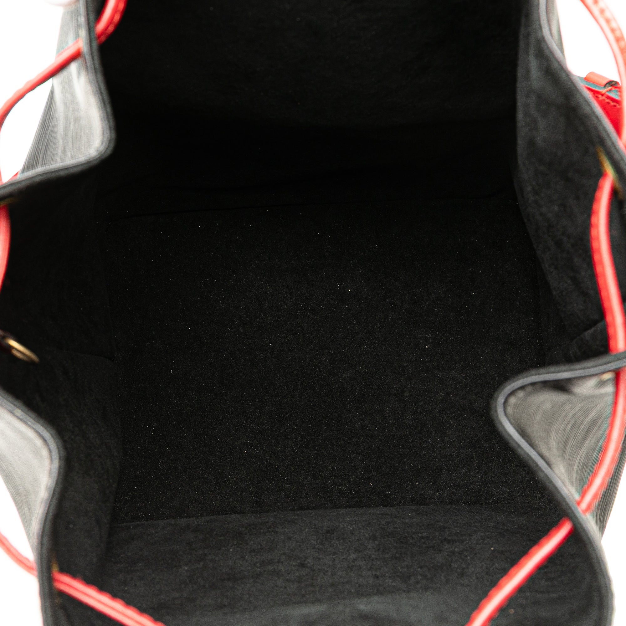 The Noe GM features a bicolor epi leather body, an adjustable leather shoulder strap, an open top with a drawstring closure, and an interior zip pocket. Inclusion: Dust bag. Retail Price: 1680.00