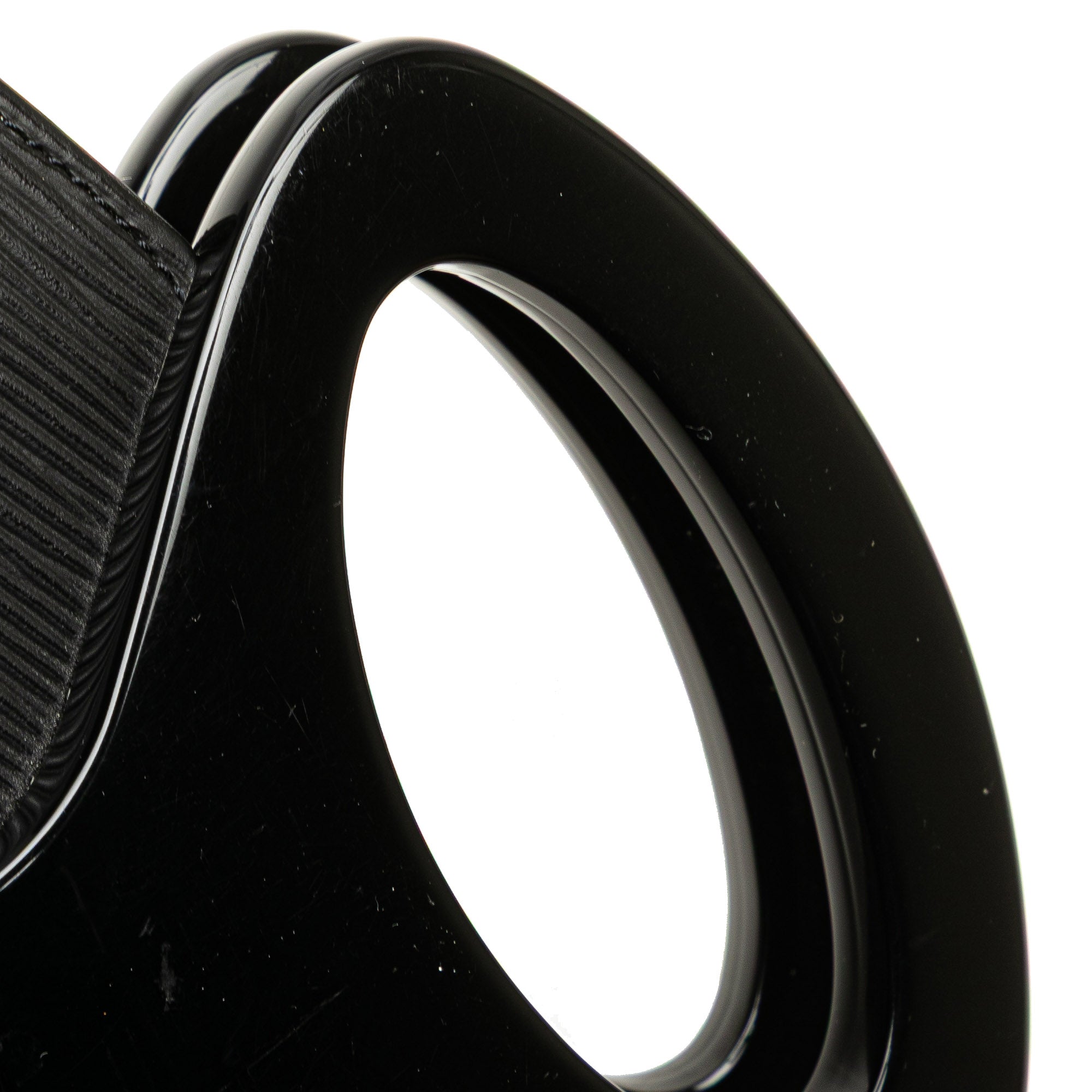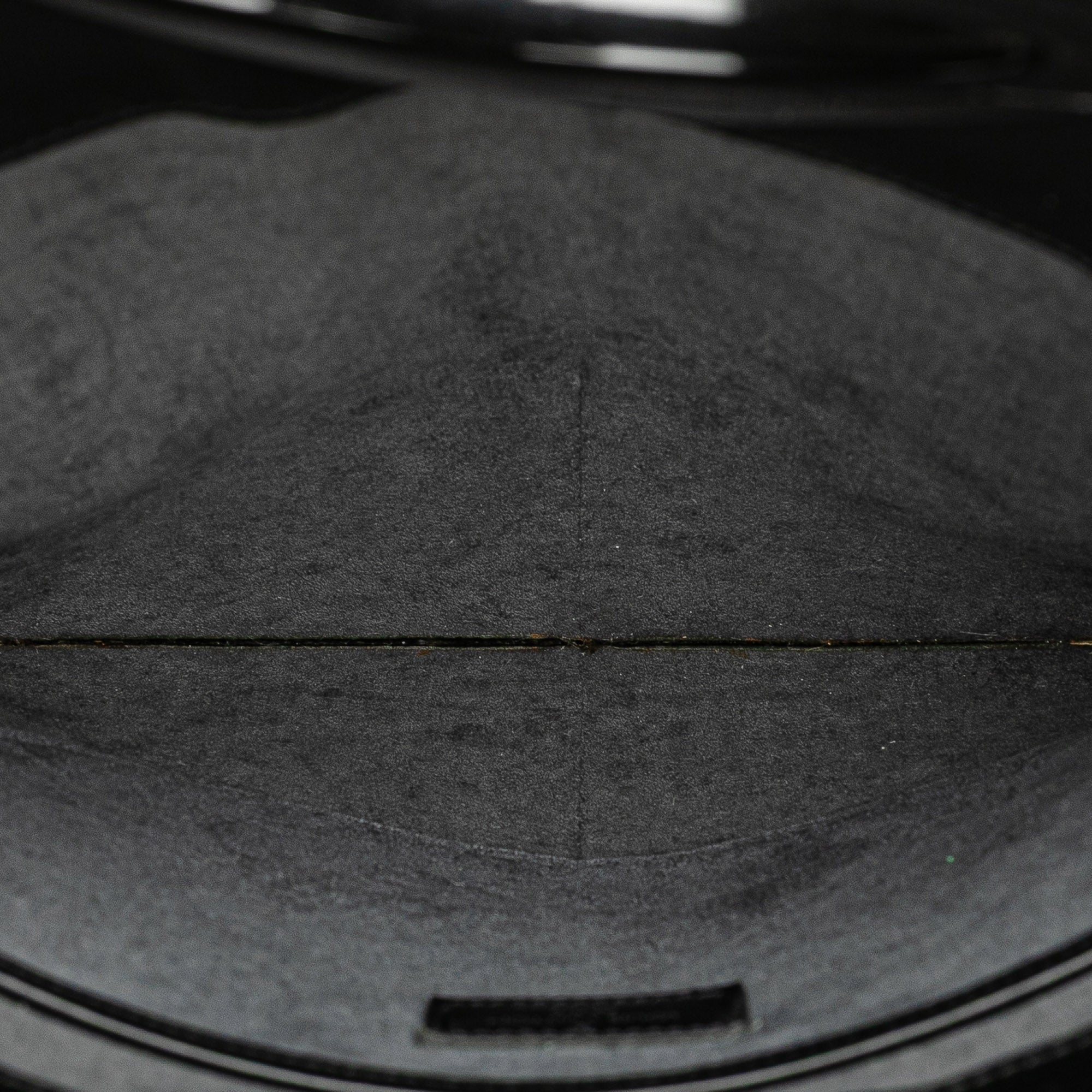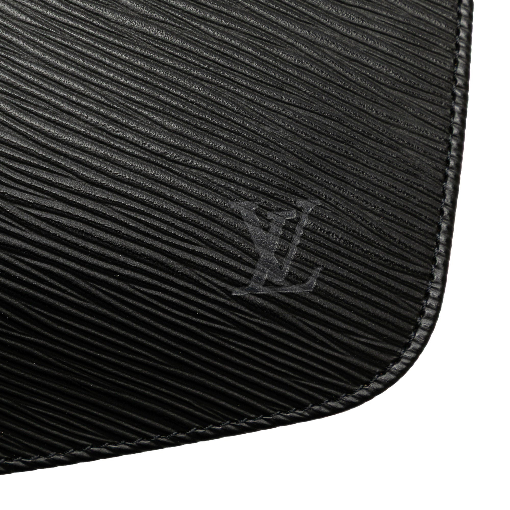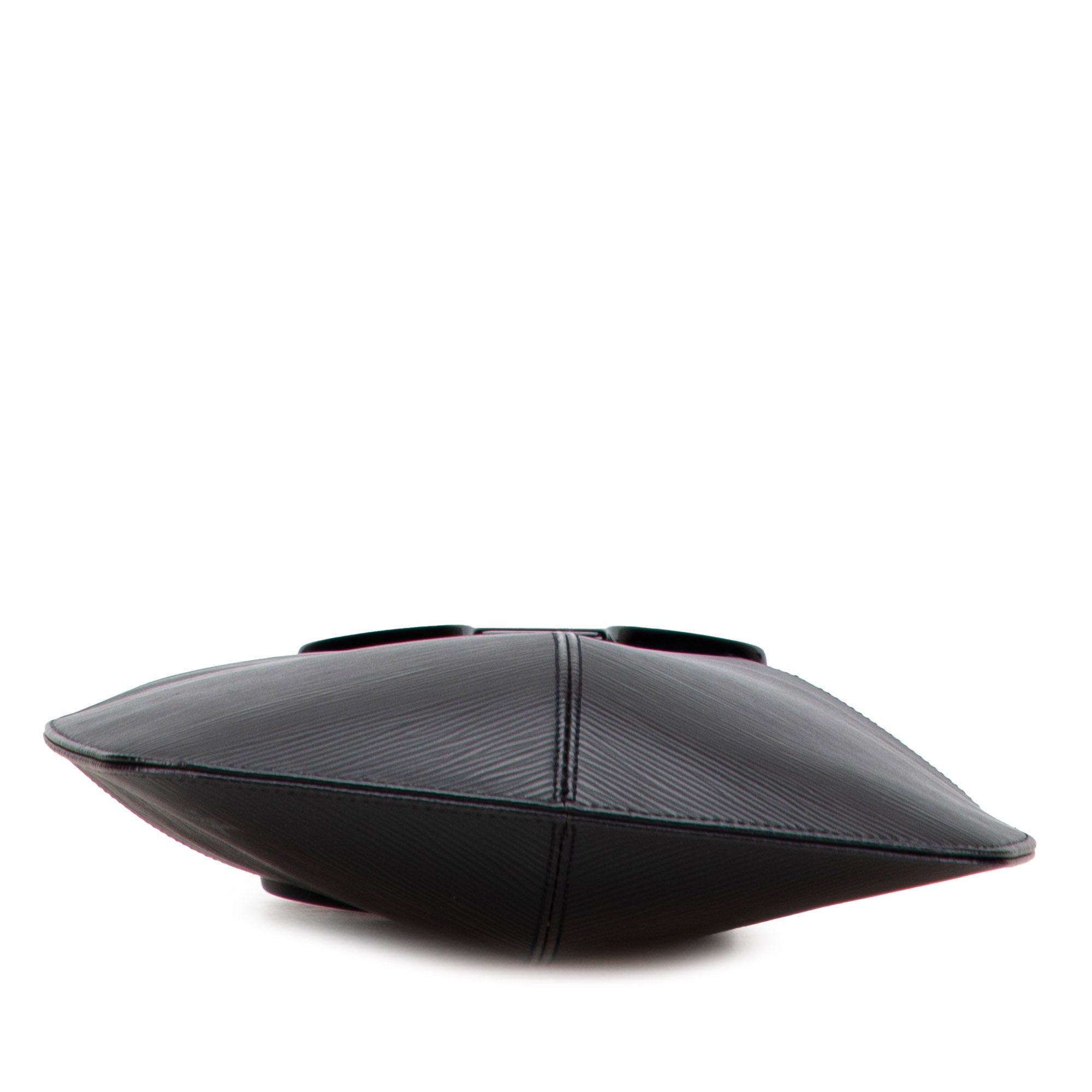 The Demi Lune features an epi leather body, structured plastic handles, an open top, and an interior slip pocket. Retail Price: 1280.00