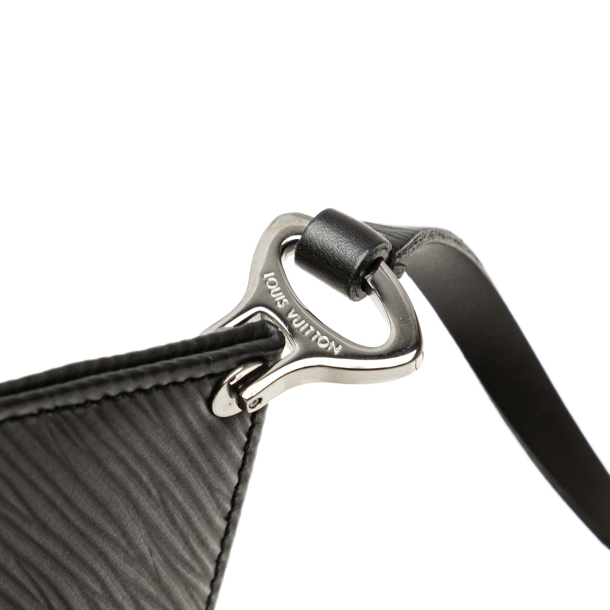 The Pochette Demi Lune features an epi leather body, a flat leather strap, and a top magnetic closure. Retail Price: 800.00