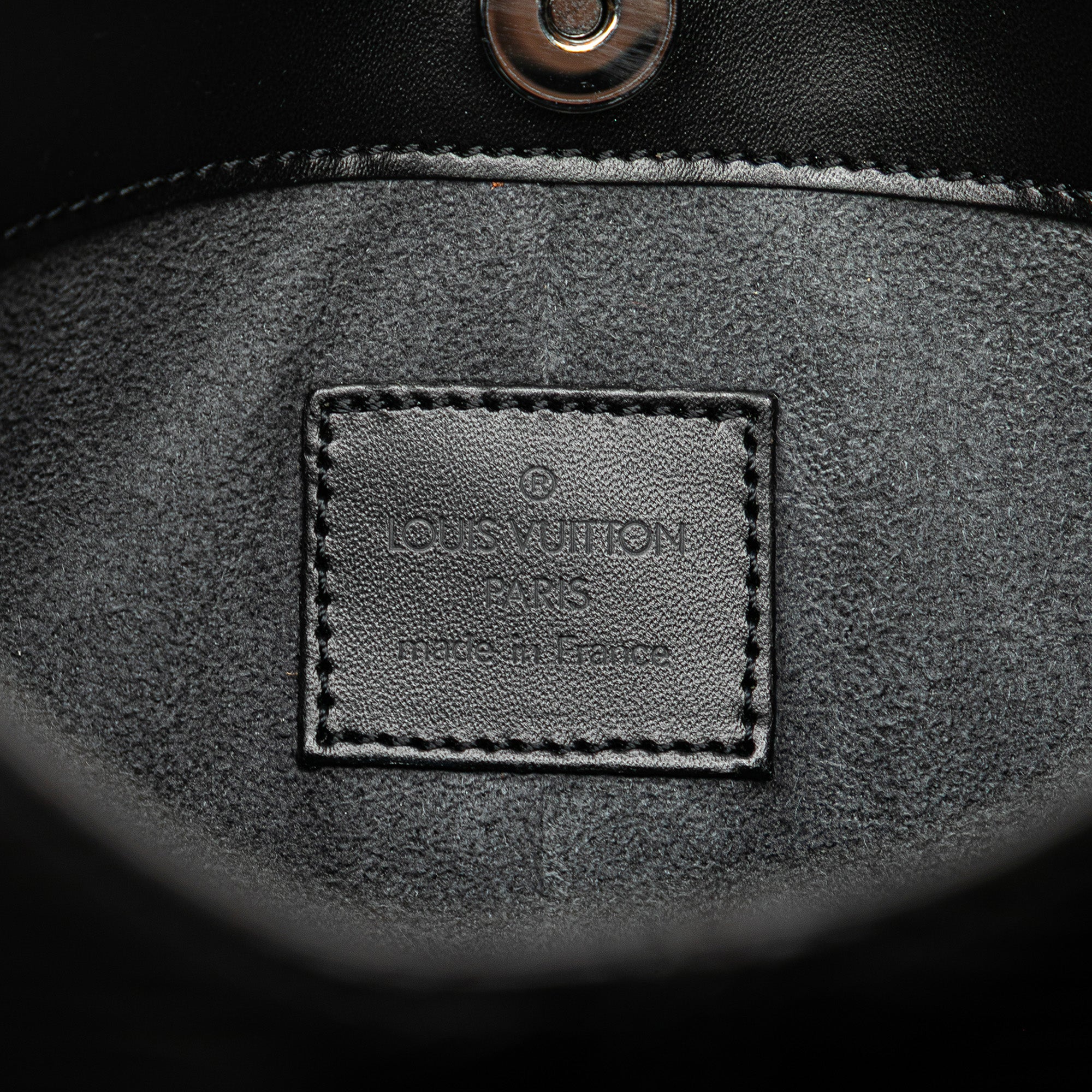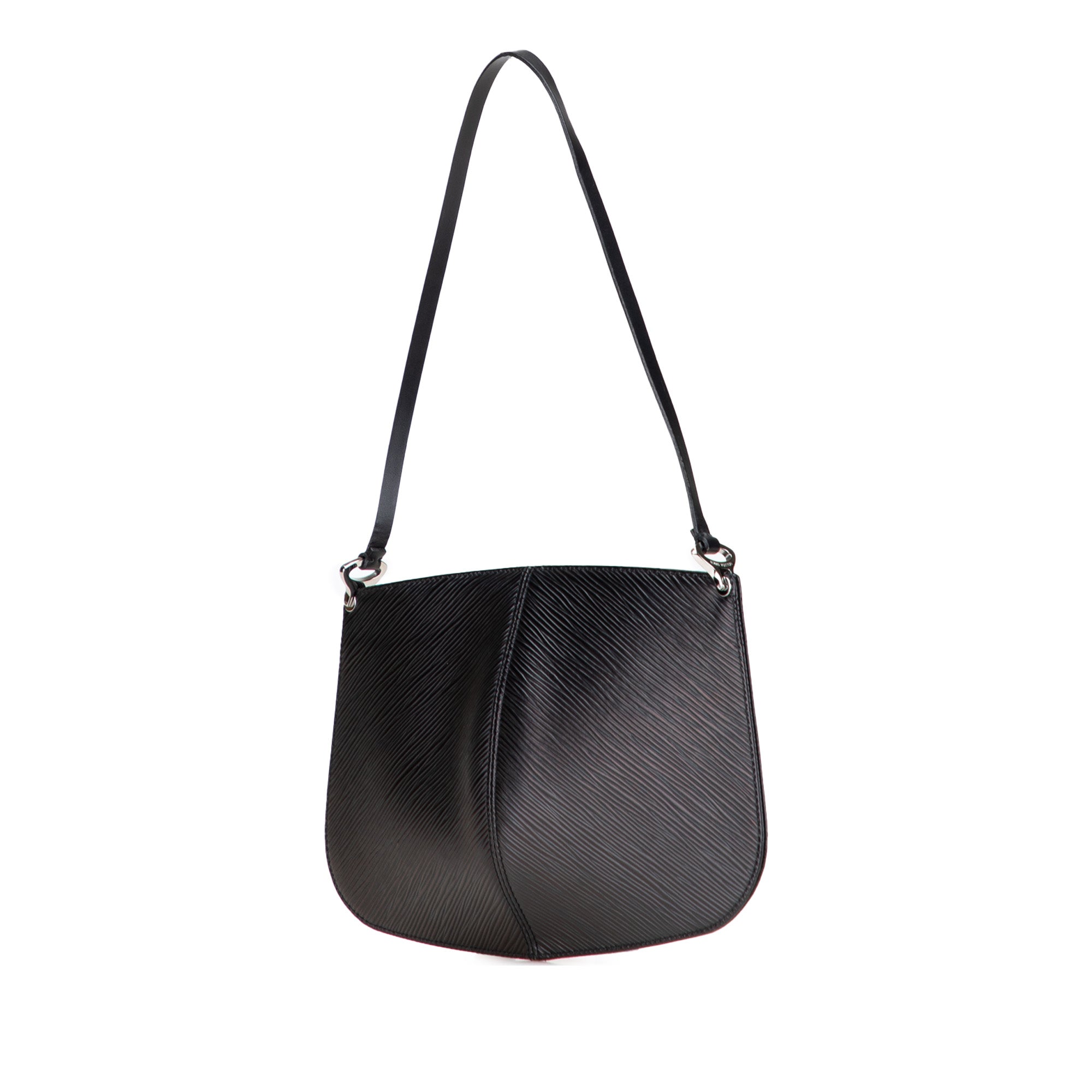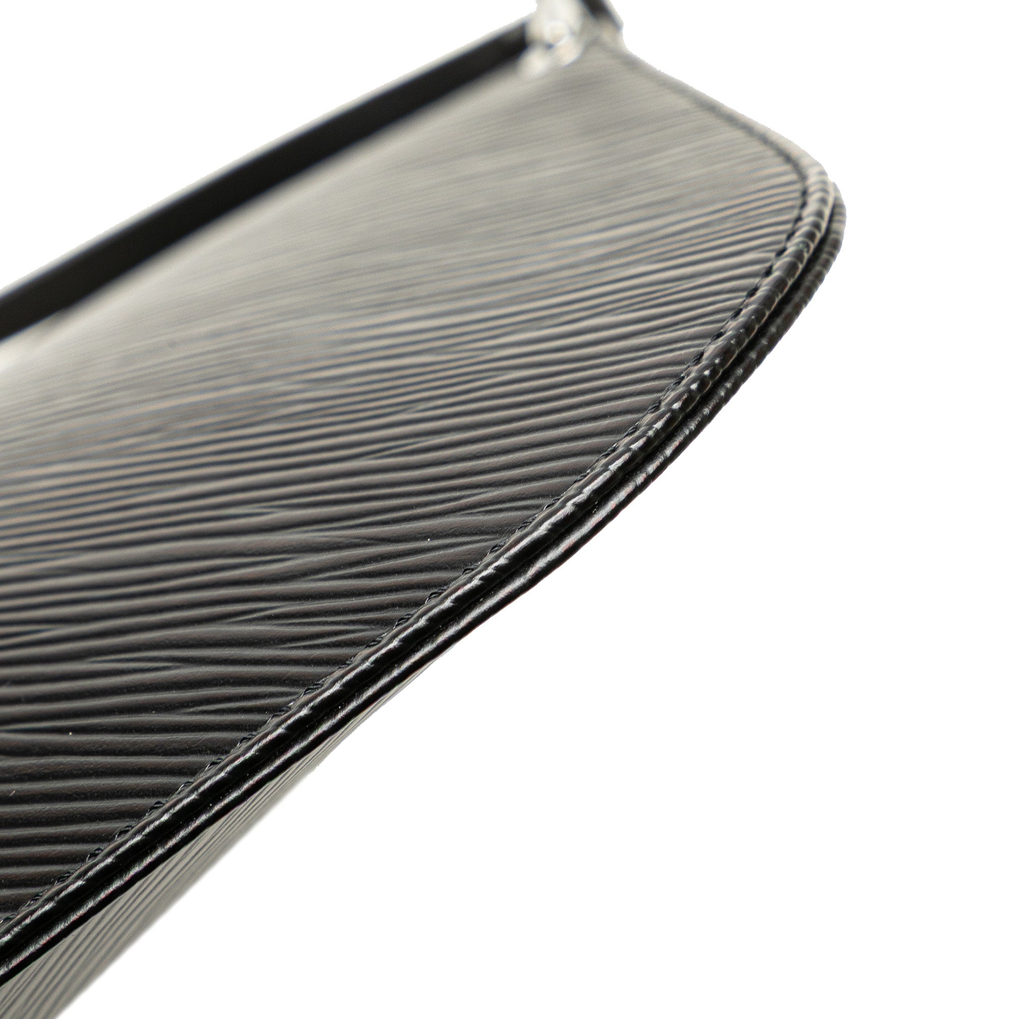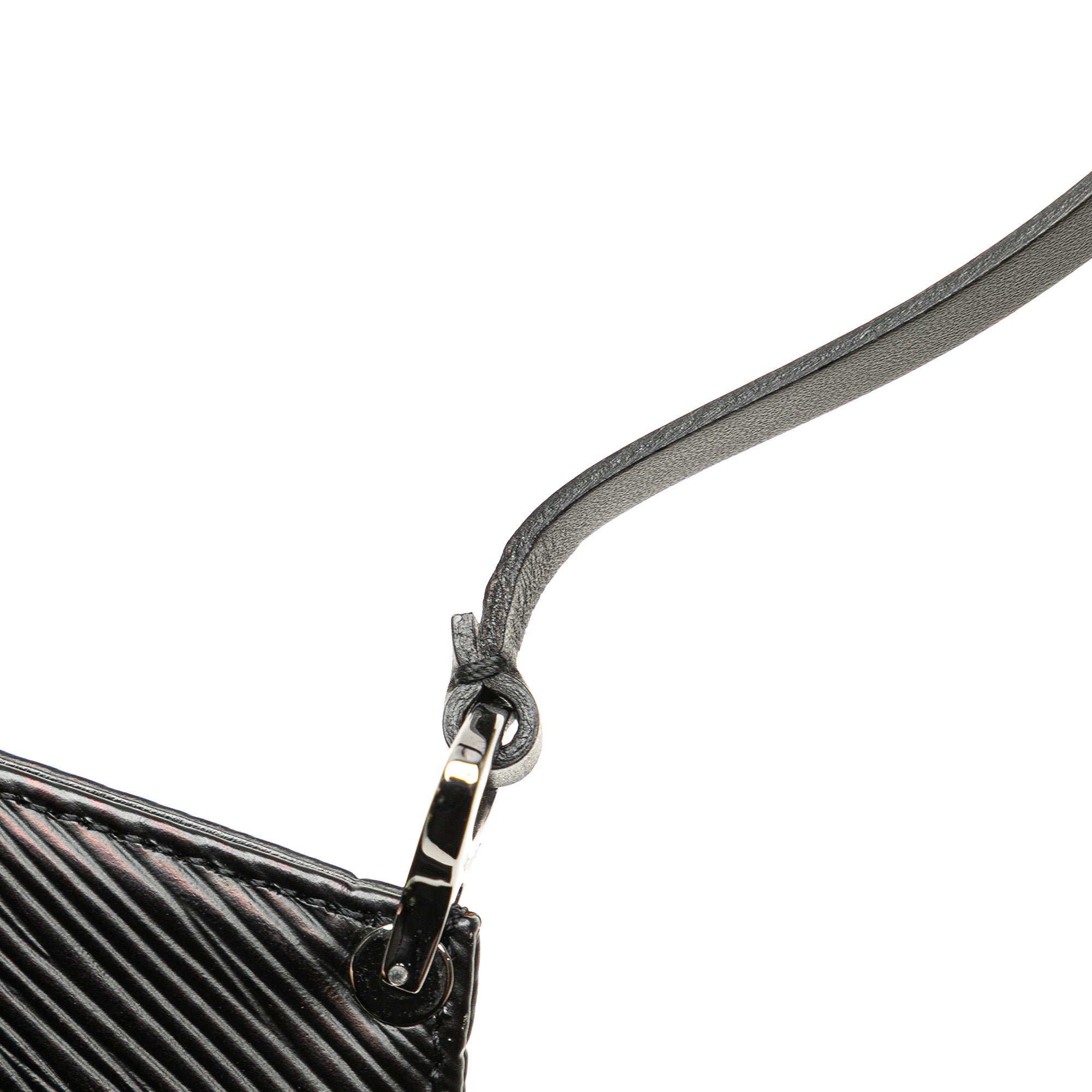 The Pochette Demi Lune features an epi leather body, a flat leather strap, and a top magnetic closure. Retail Price: 900.00
