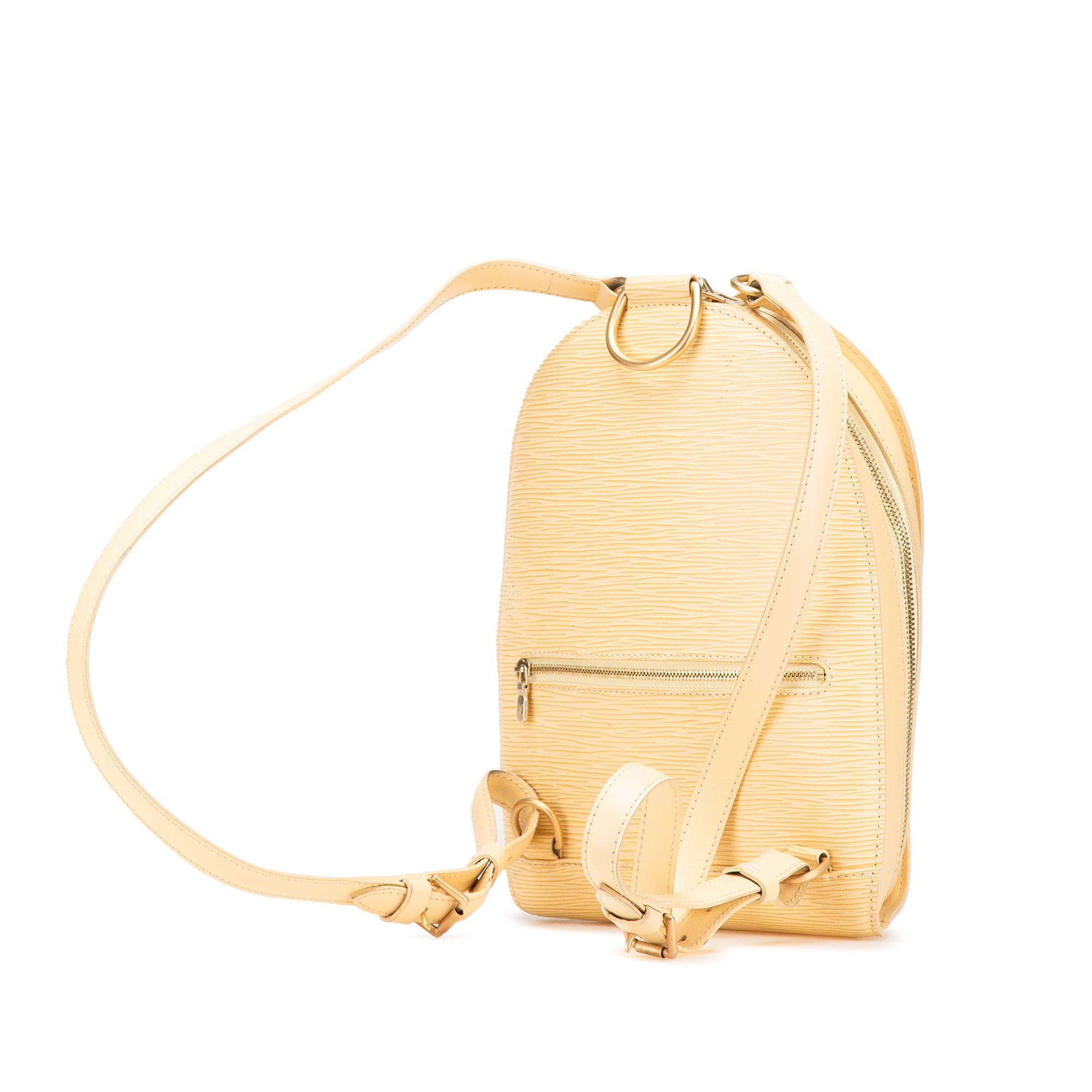 The Mabillon features an epi leather body, adjustable flat back straps, metal top handle, a zip around closure, an exterior back zip pocket, and an interior slip pocket. Retail Price: 1310.00