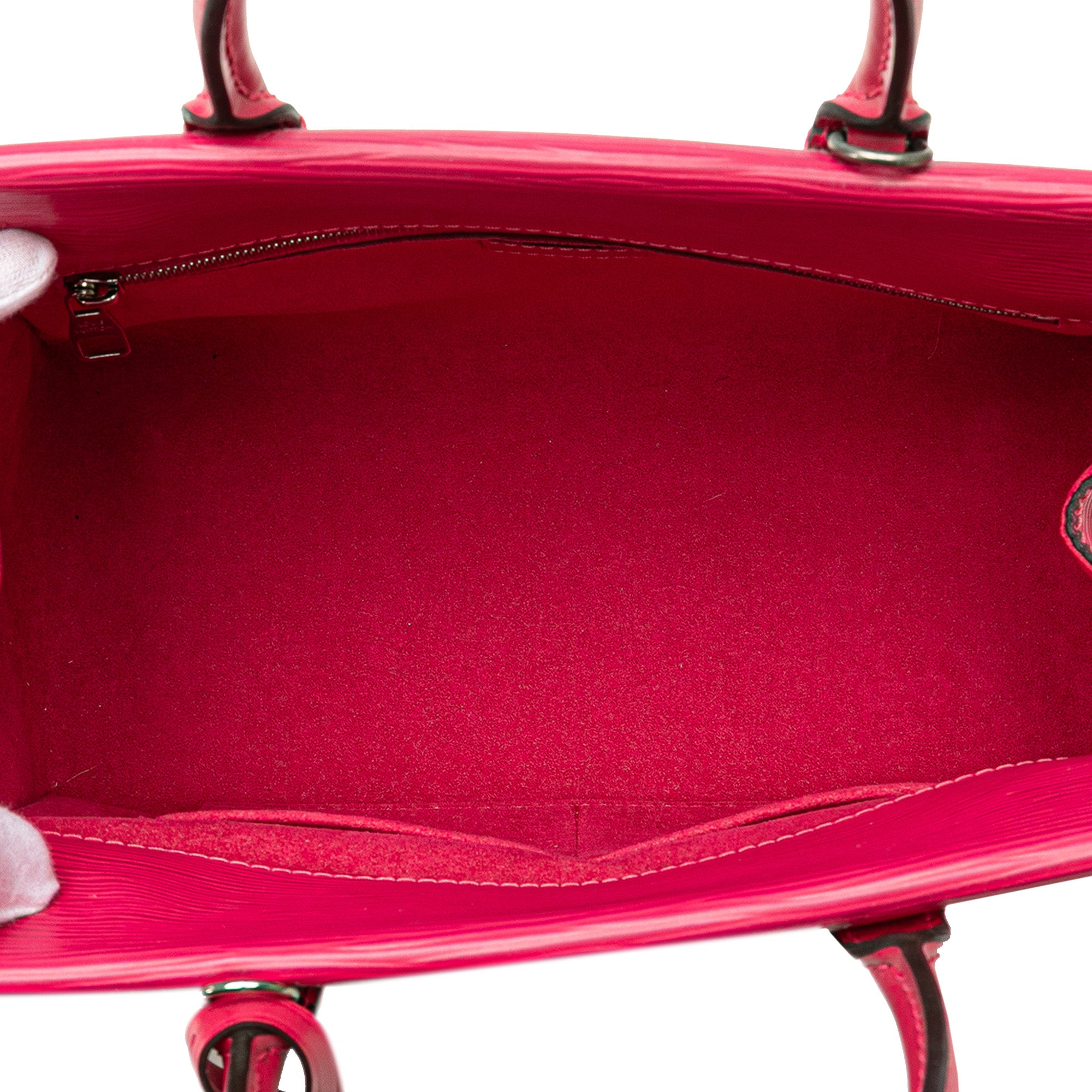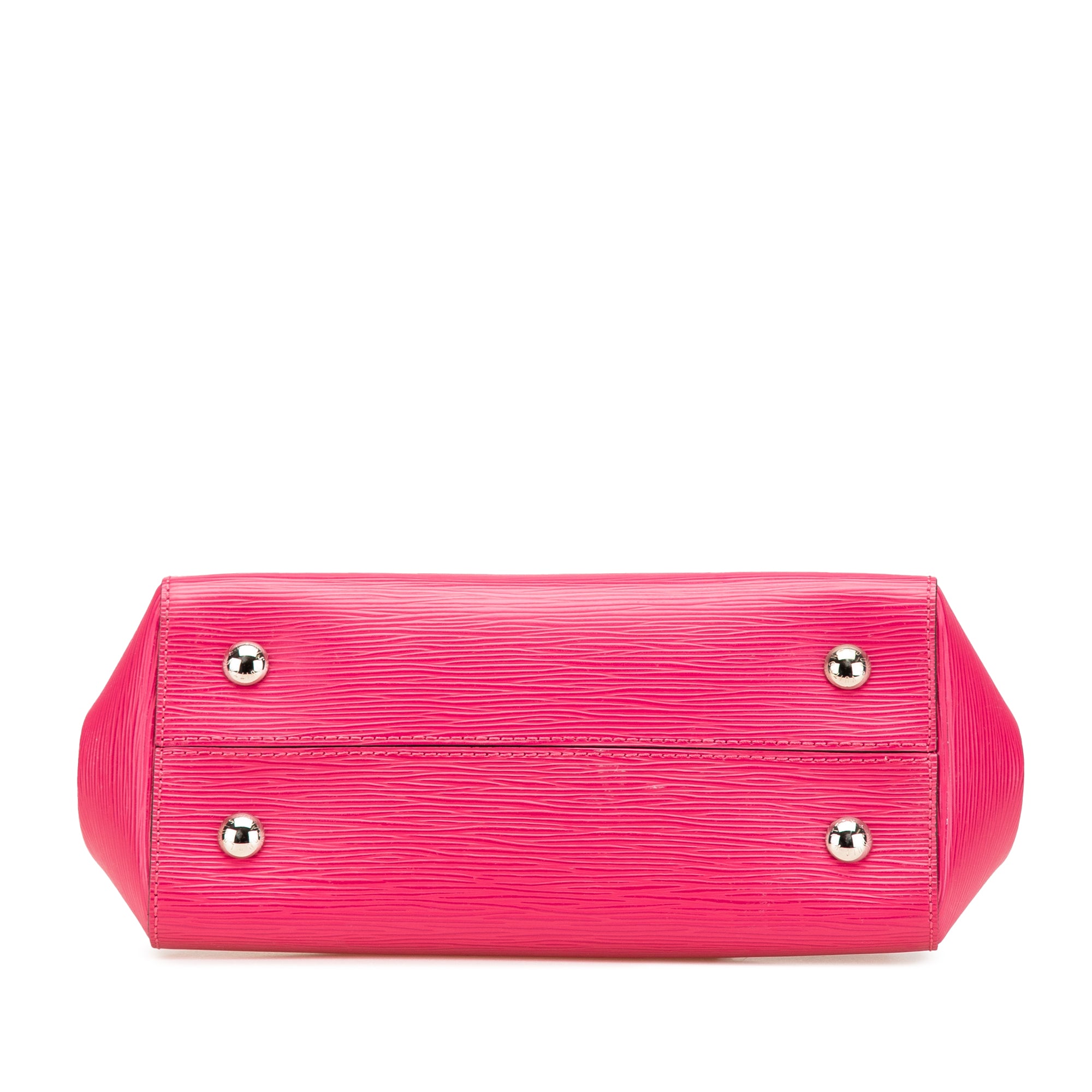 The Marly BB features an epi leather body, rolled leather handles, a detachable flat leather strap, an open top, and interior zip and slip pockets. Retail Price: 2350.00