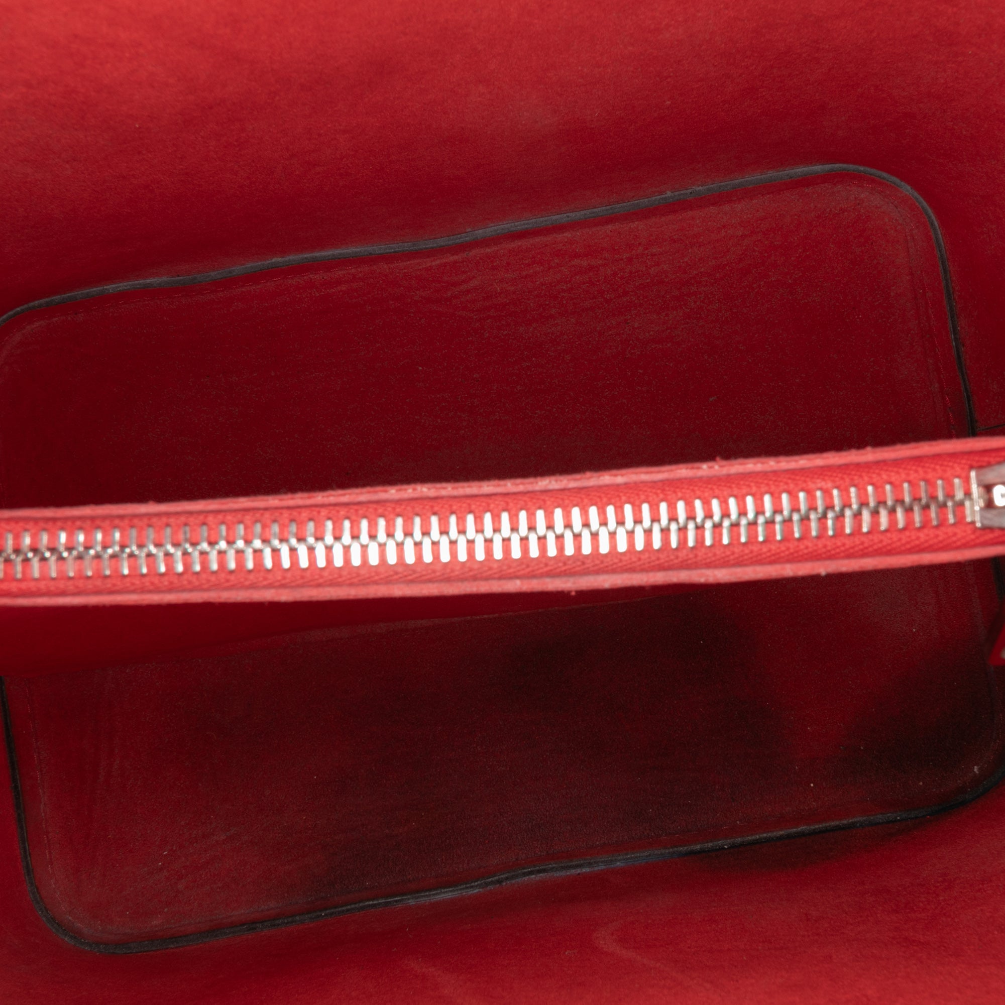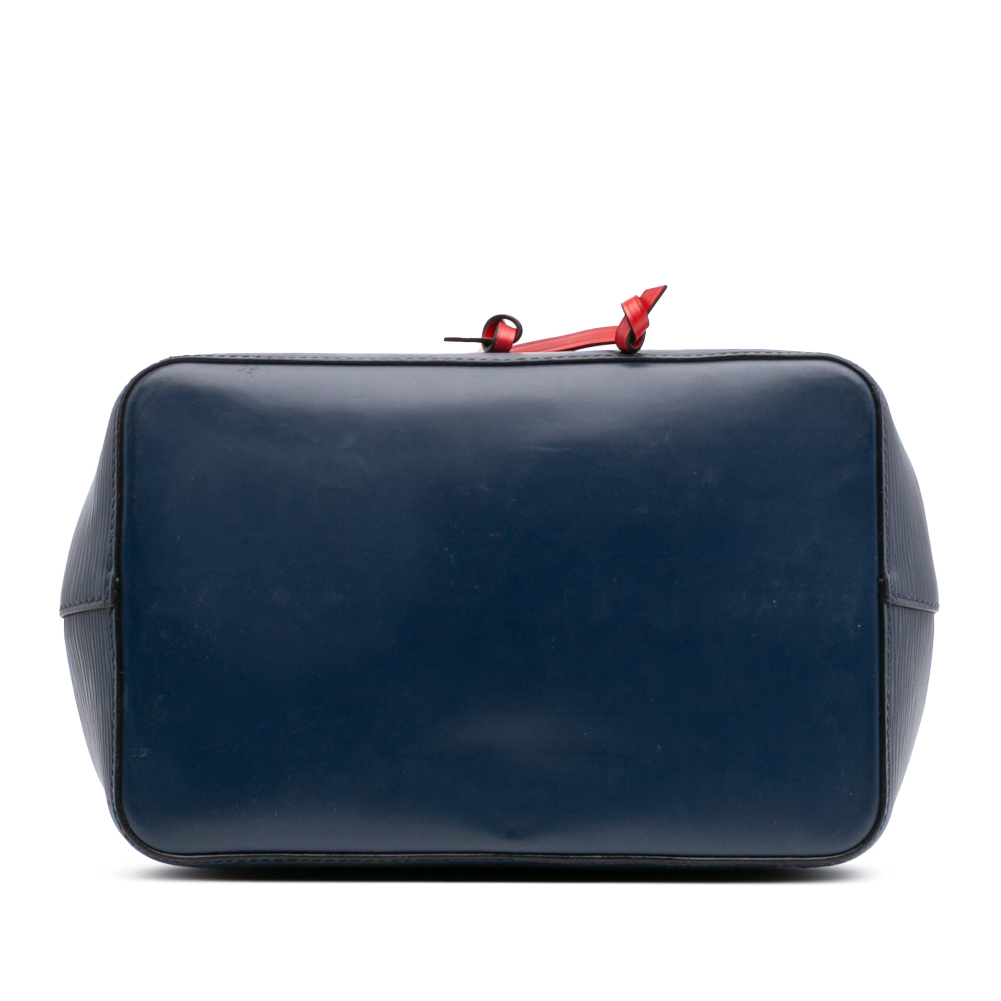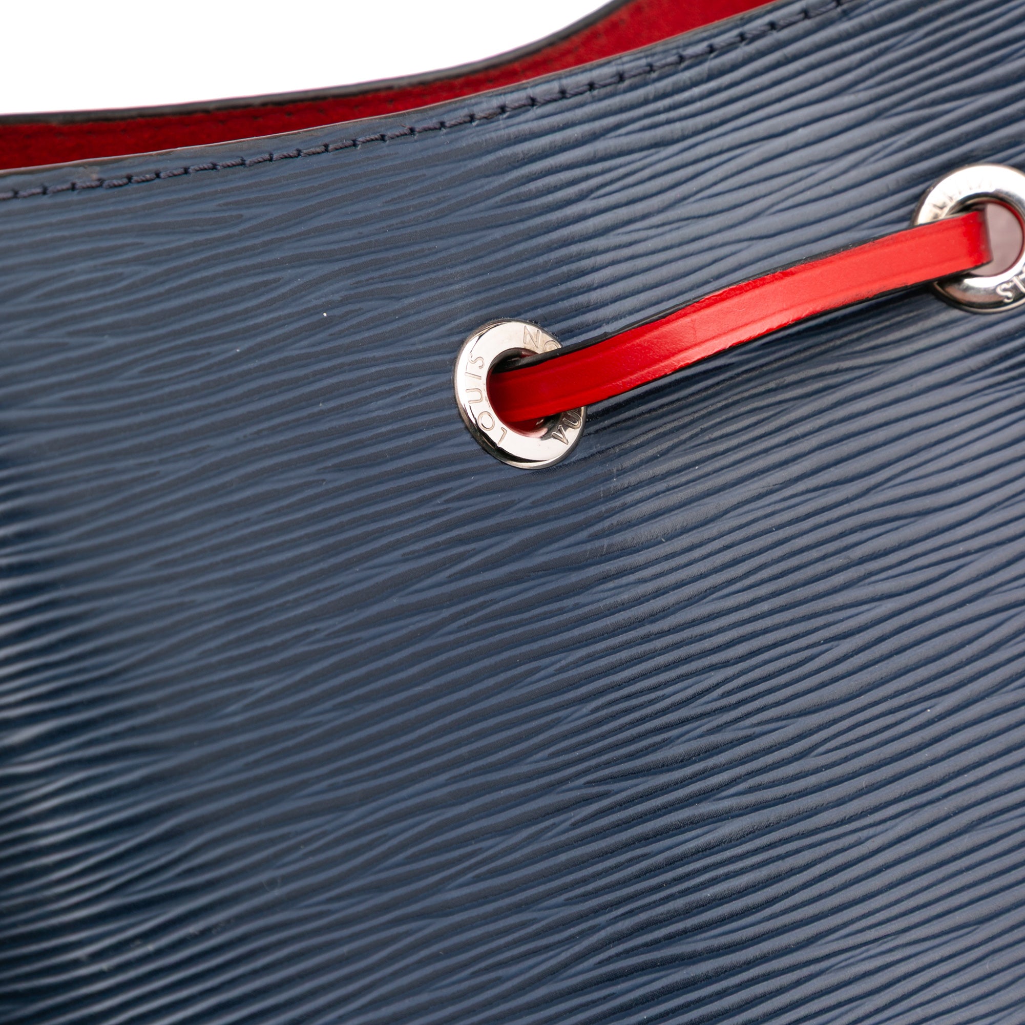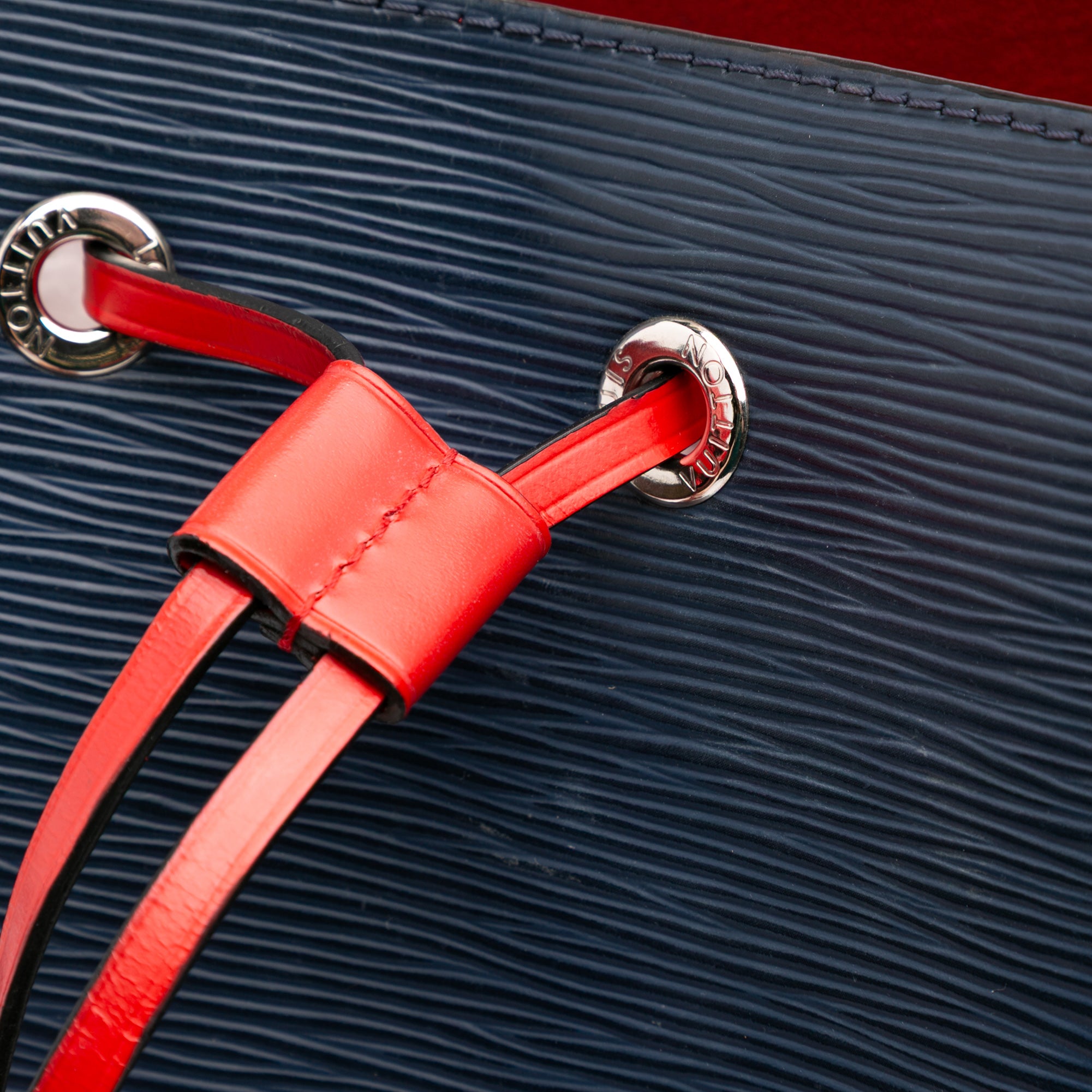 The NeoNoe MM features an epi leather body, a flat leather handle, a detachable flat leather strap, a top drawstring closure, and an interior zip compartment. Retail Price: 2570.00