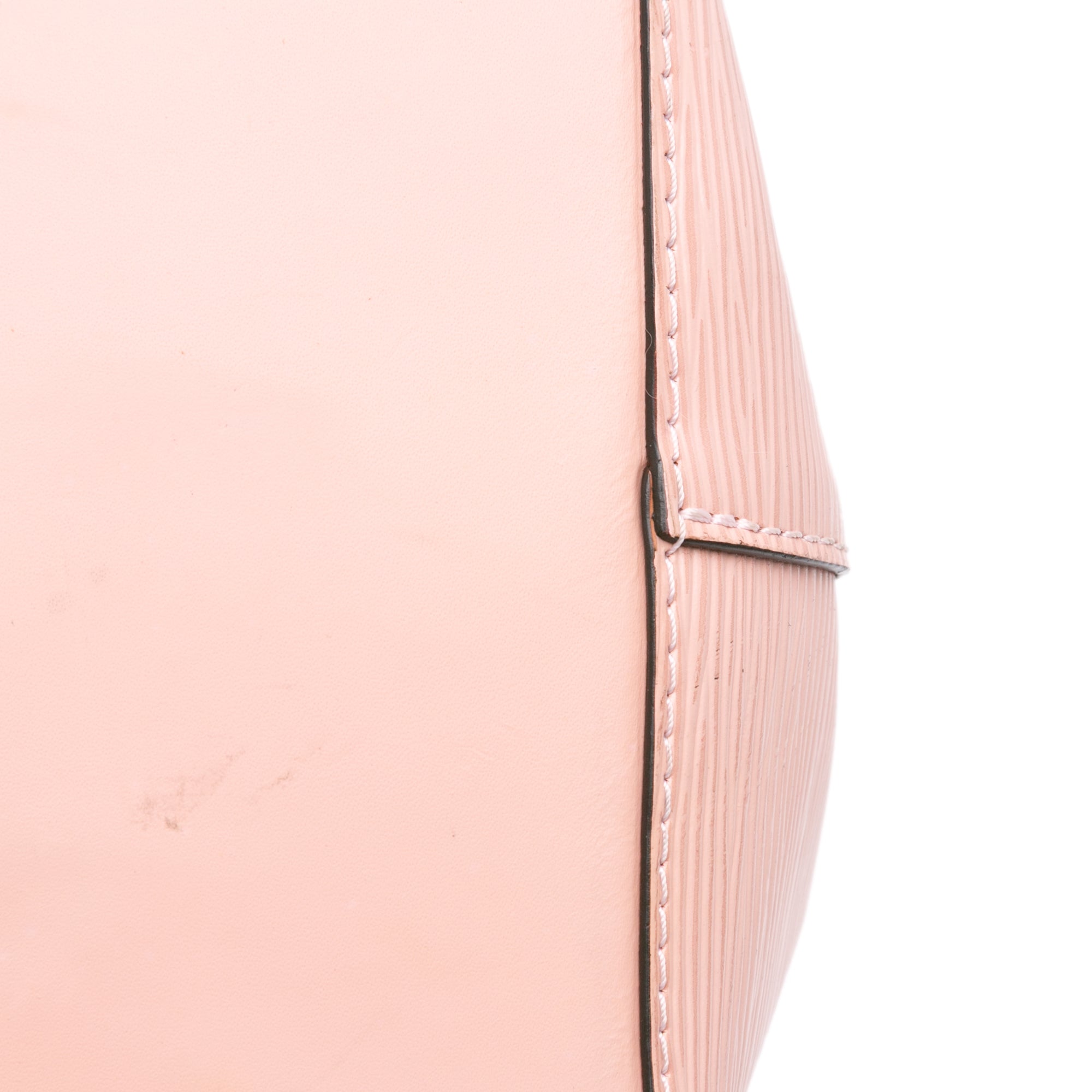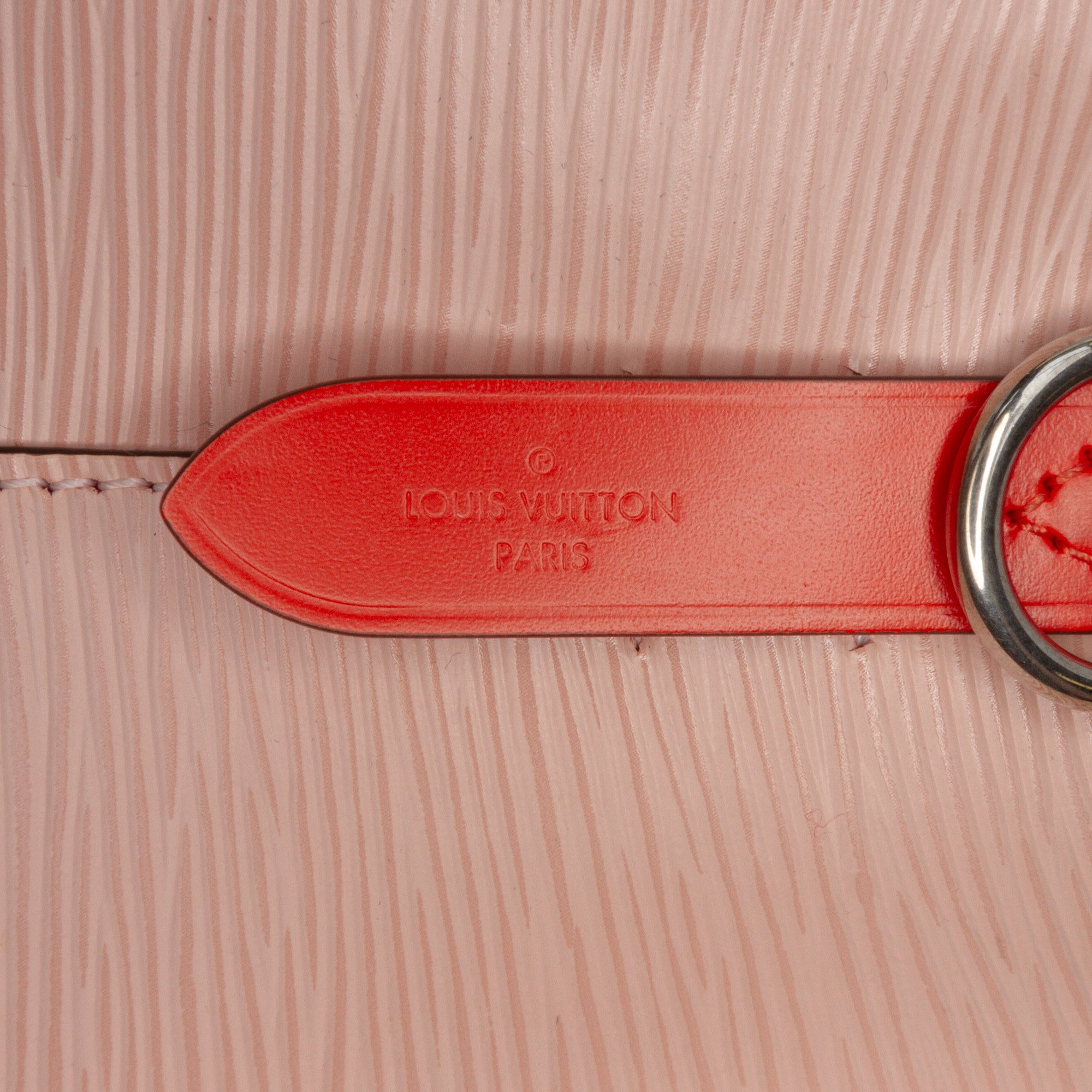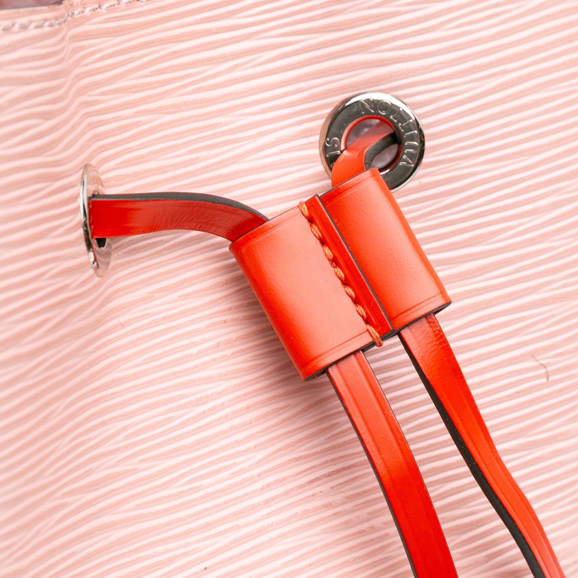 The Neonoe MM features an epi leather body, a flat leather handle, a detachable flat leather strap, a drawstring closure, and an interior zip pocket. Retail Price: 2570.00