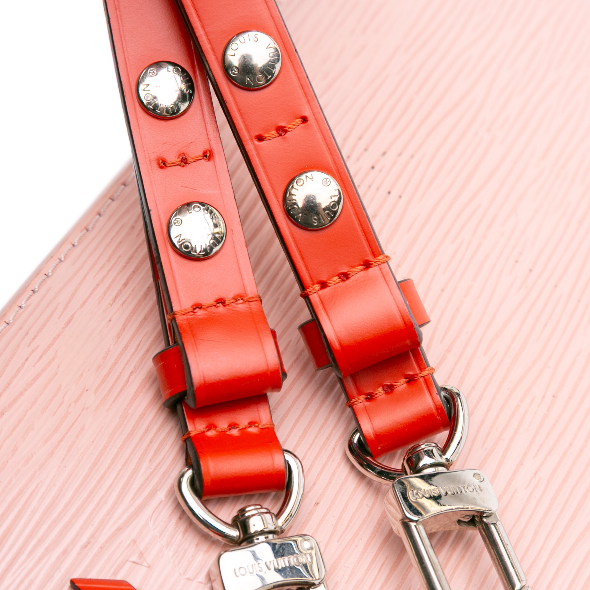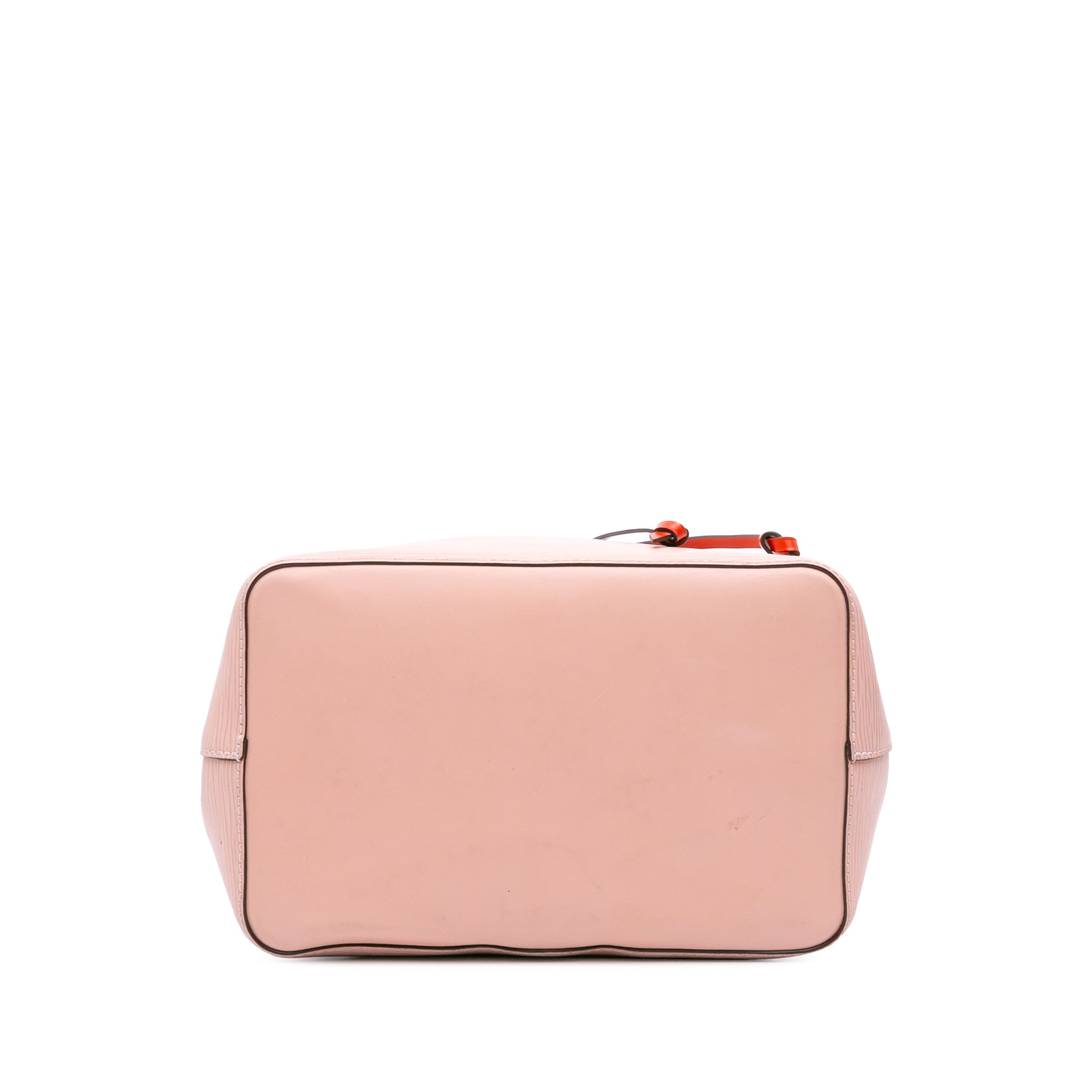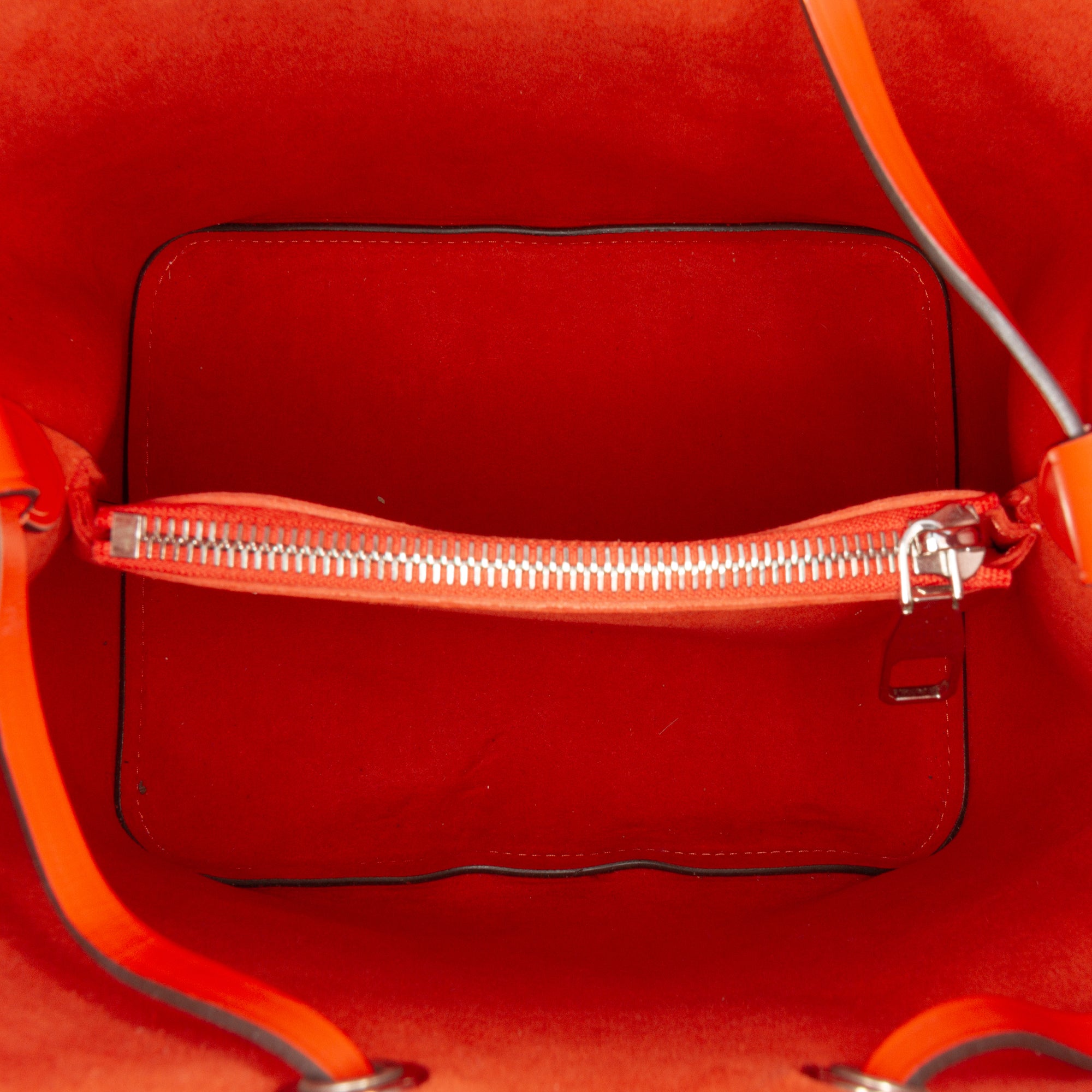 The Neonoe MM features an epi leather body, a flat leather handle, a detachable flat leather strap, a drawstring closure, and an interior zip pocket. Retail Price: 2570.00