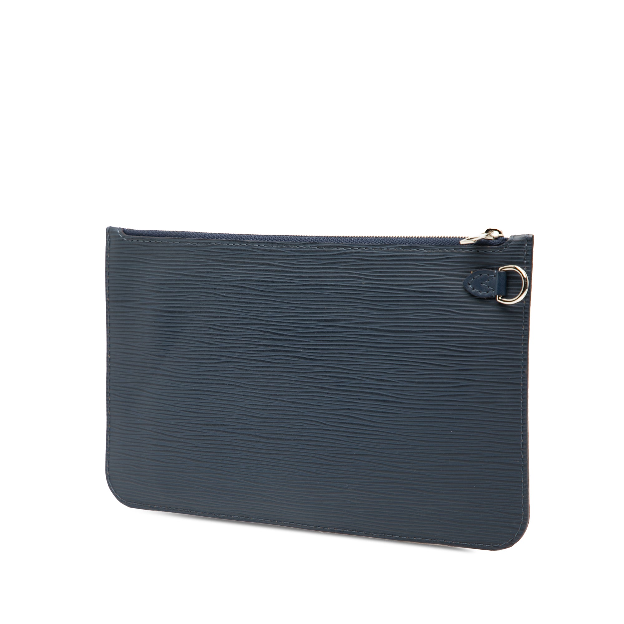 This pouch features an epi leather body, a top zip closure, and an interior slip pocket. Retail Price: 600.00