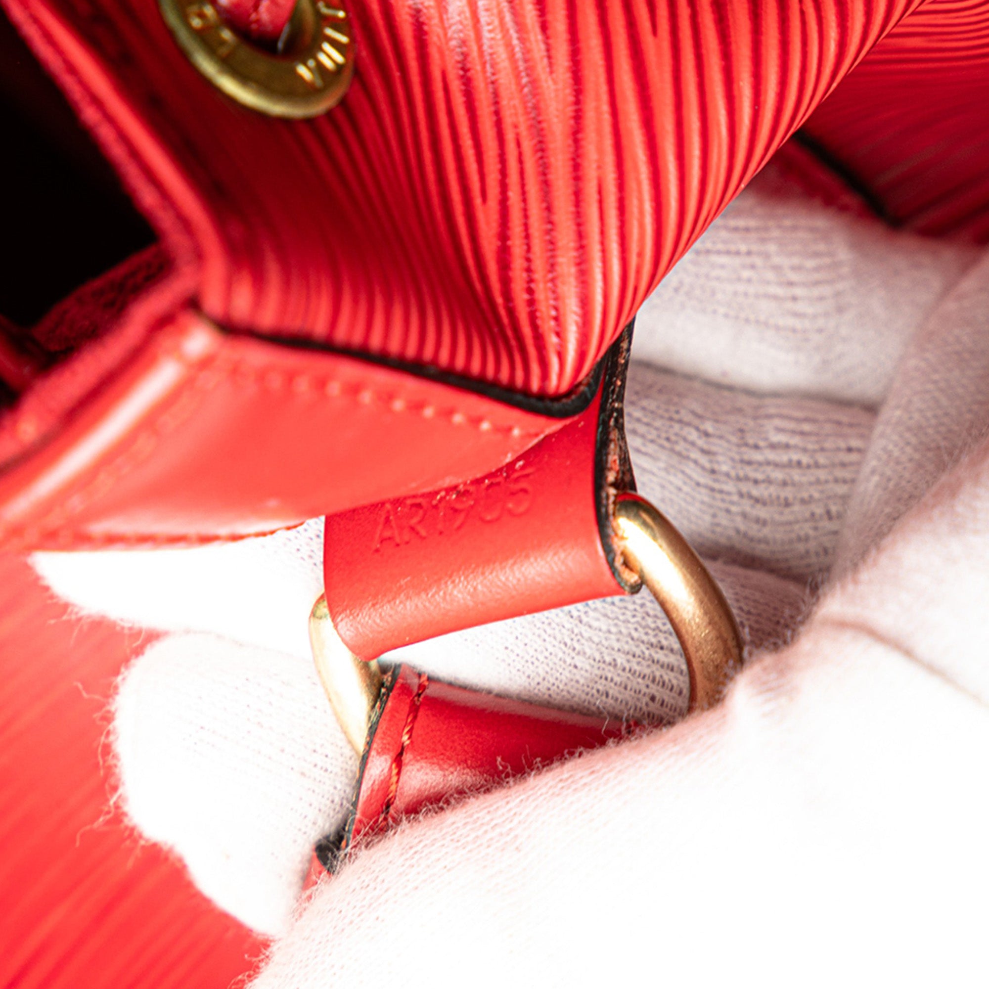 The Noe features an epi leather body, an adjustable flat shoulder strap, and a top drawstring closure. Retail Price: 1680.00