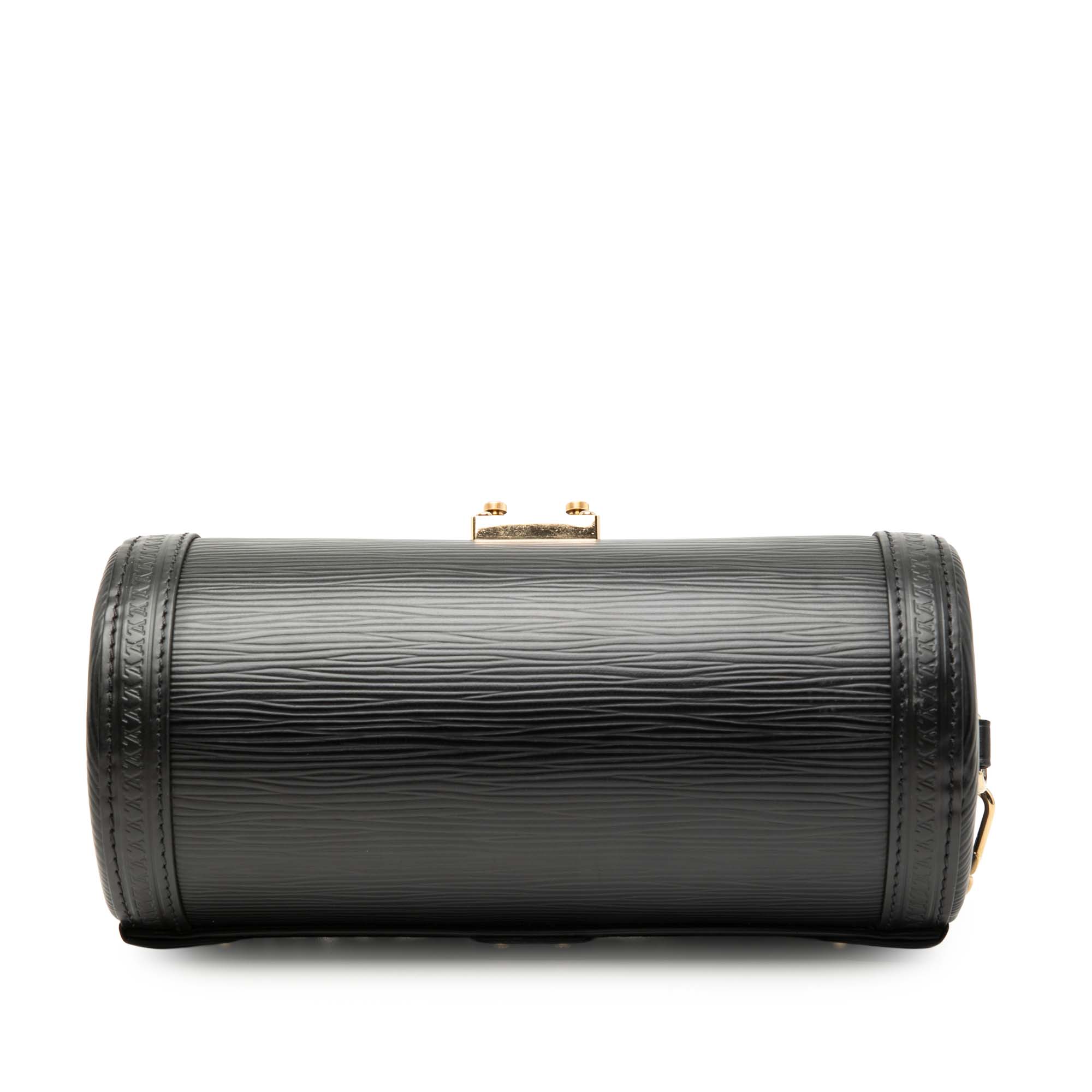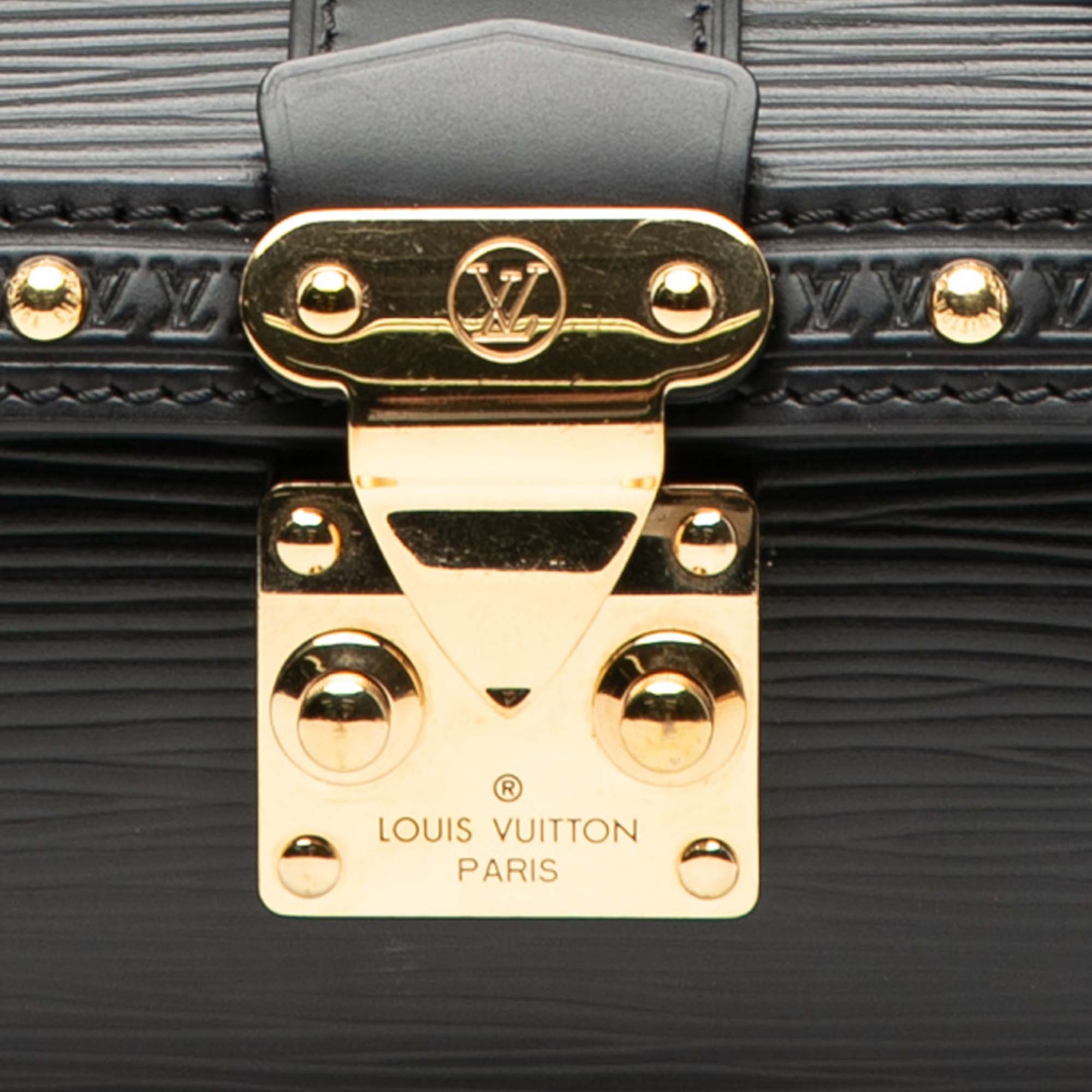 The Papillon Trunk features an epi leather body, a detachable gold-tone chain handle, a detachable flat leather strap, and a top flap with S-lock closure. Retail Price: 2630.00