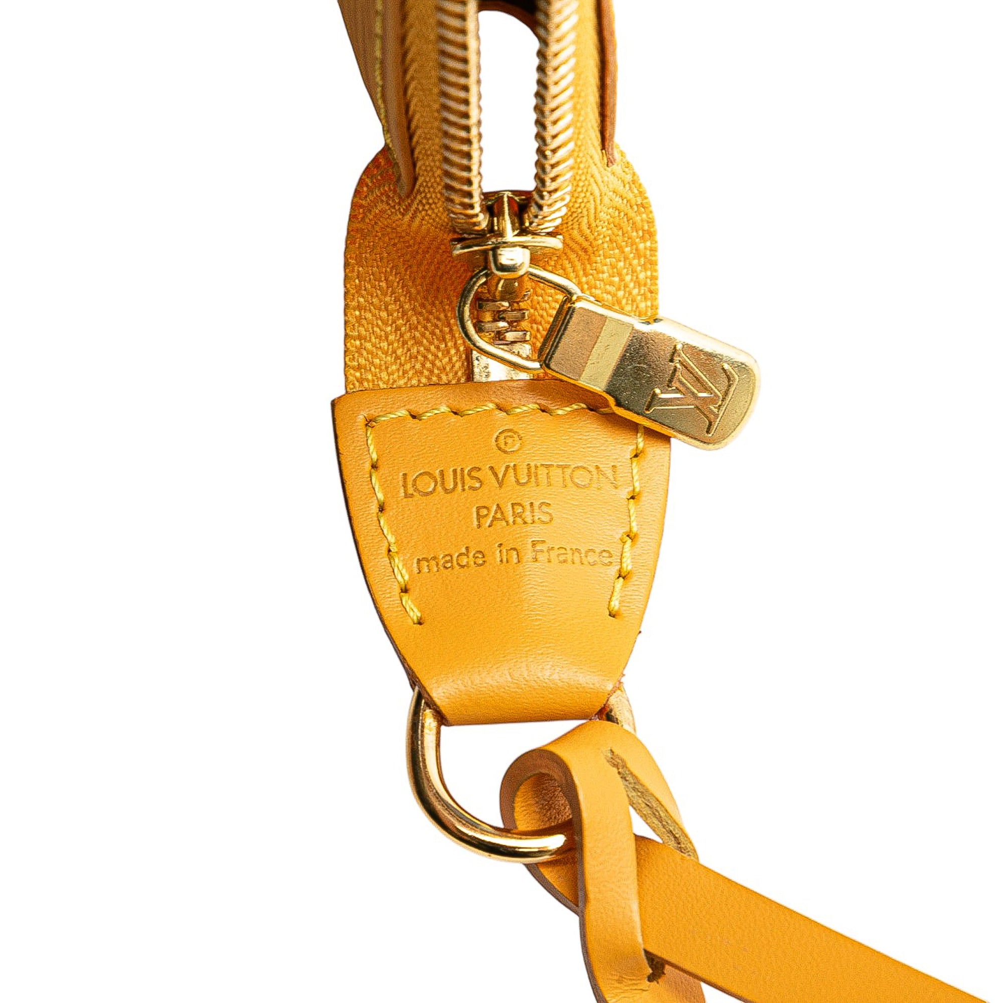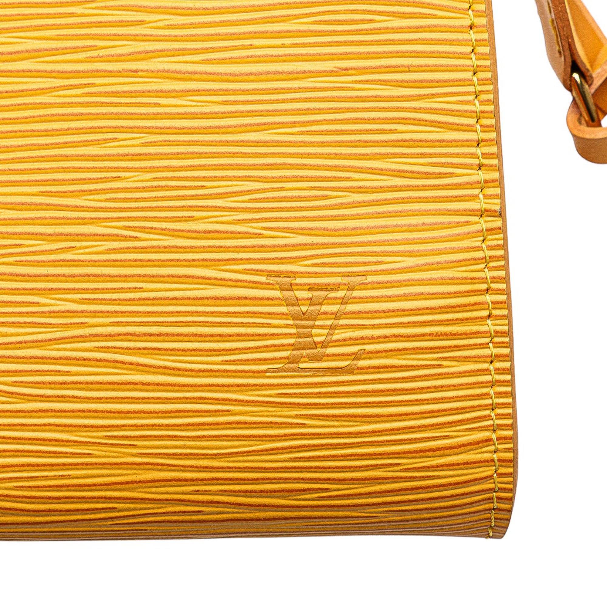 The Pochette Accessoires features an epi leather body, a flat shoulder strap, and a top zip closure. Retail Price: 820.00