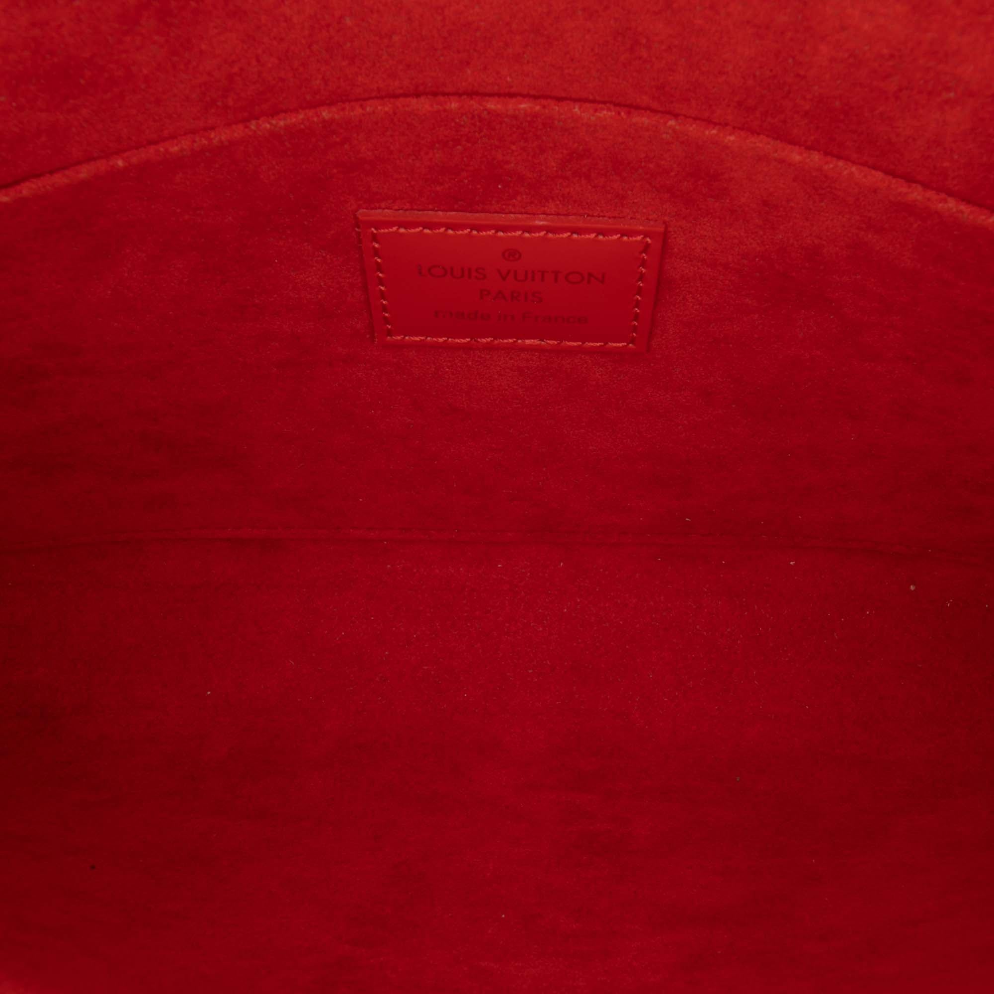 The Pochette Felicie features an epi leather body, a detachable chain strap, a flap with press stud closure, an interior slip pocket, and pouch inclusions. Retail Price: 1525.00