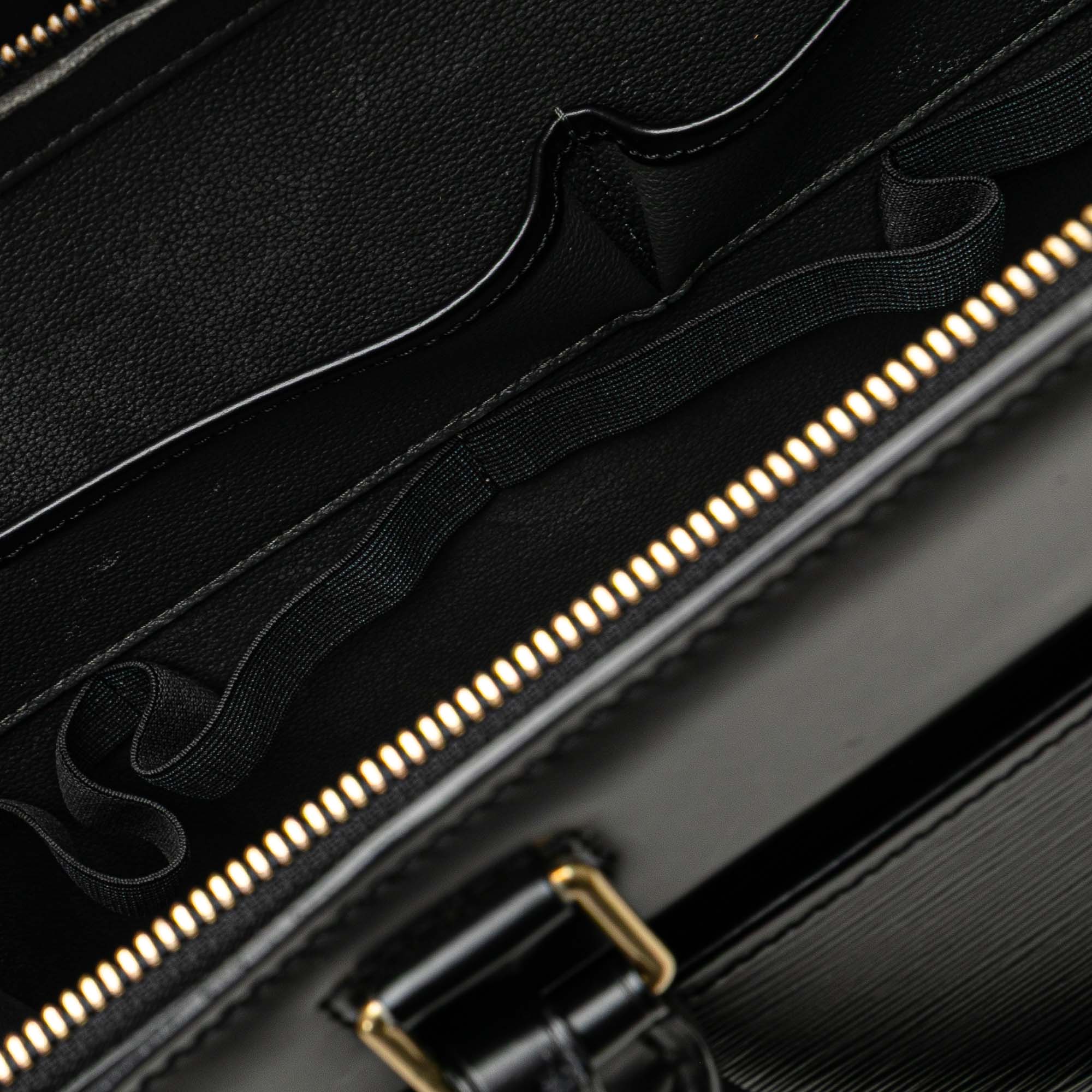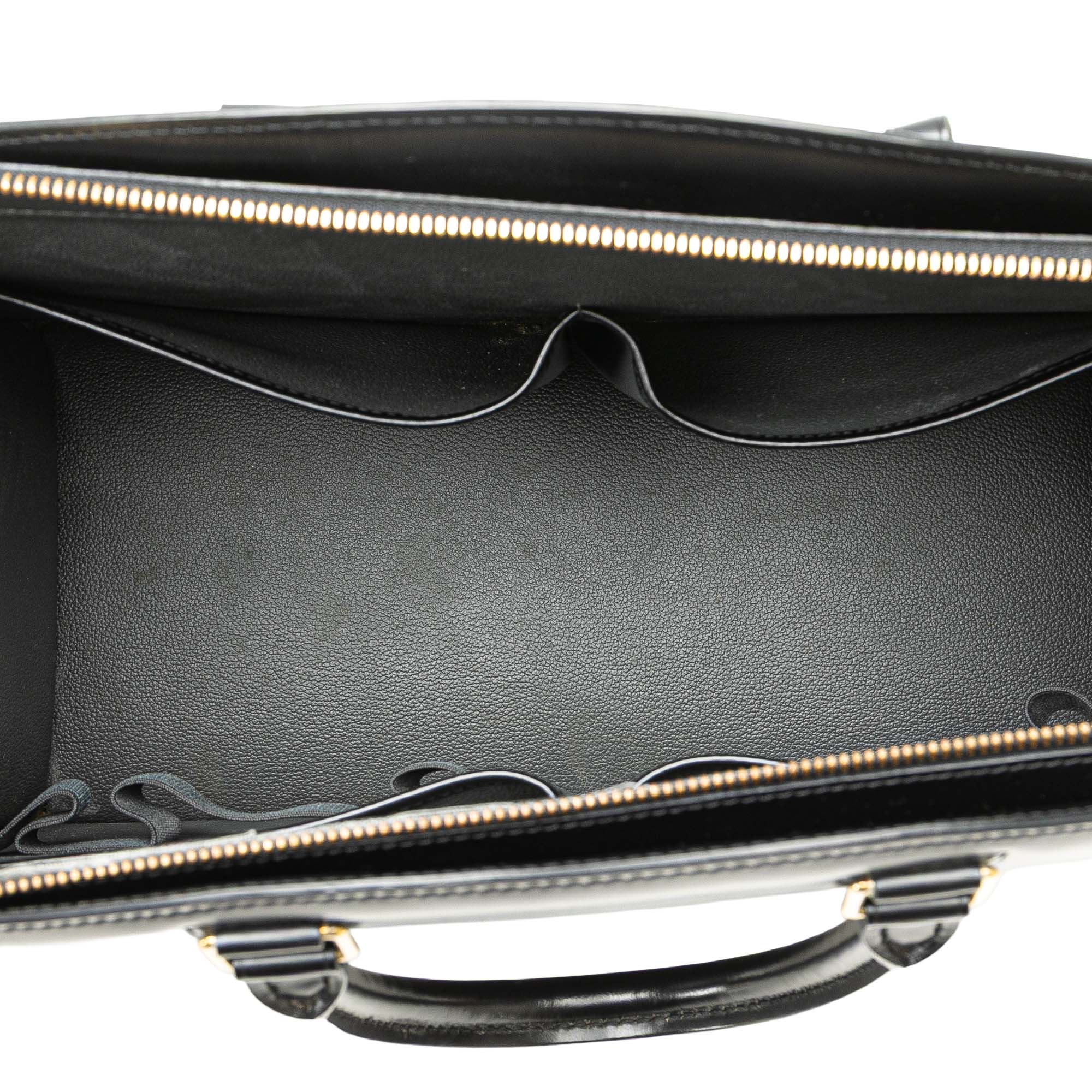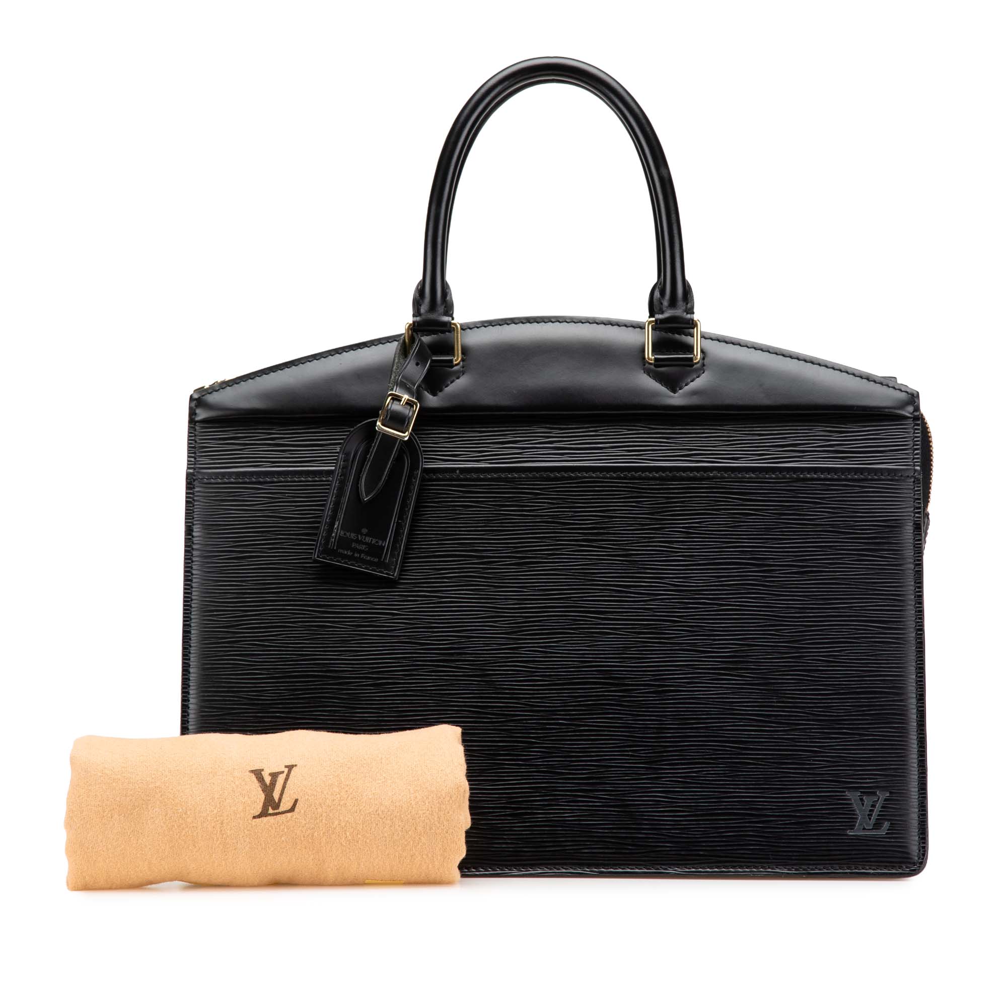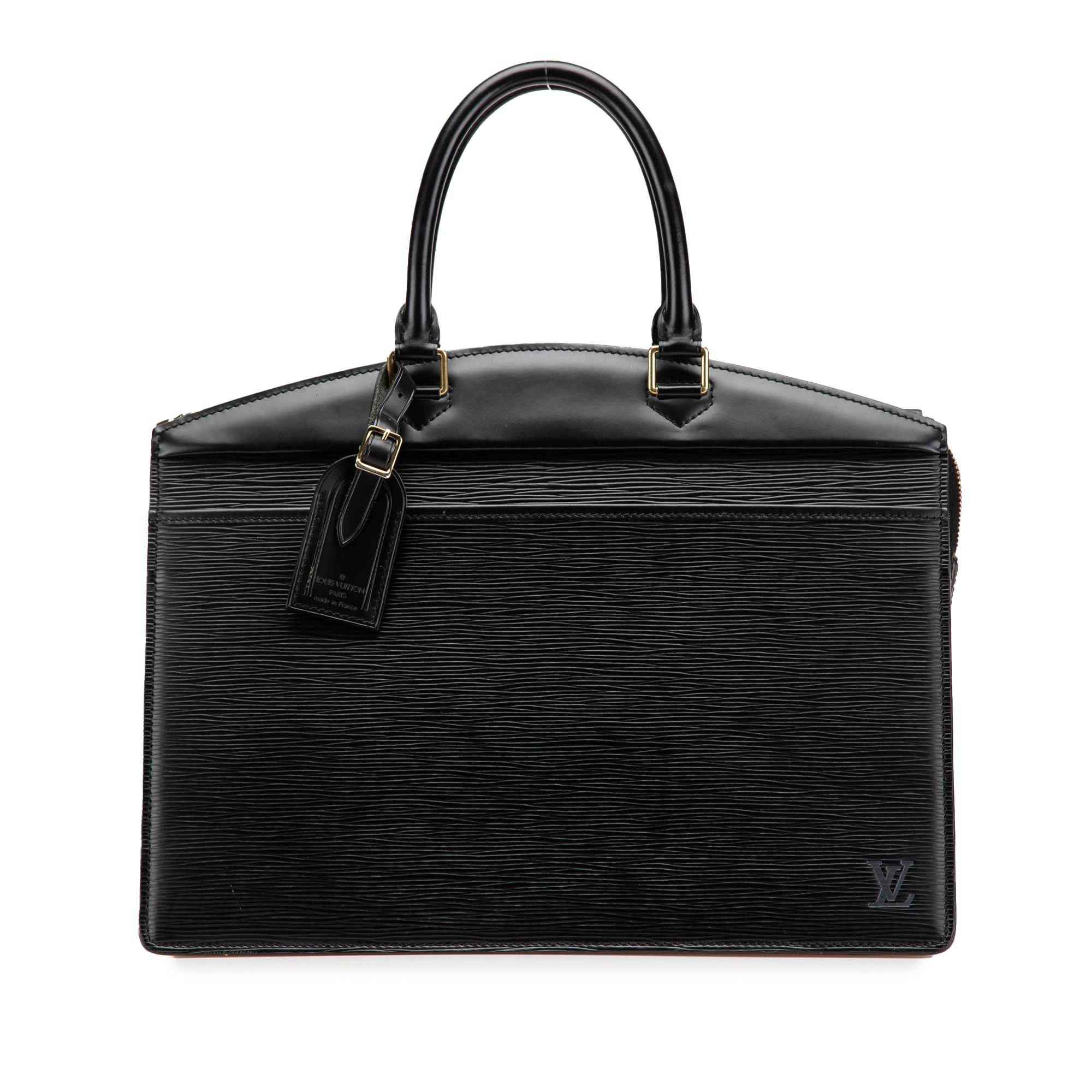 The Riviera features an epi leather body, rolled leather handles, a top zip closure, an exterior front slip pocket, and interior slip pockets. Inclusion: Dust bag. Retail Price: 1800.00