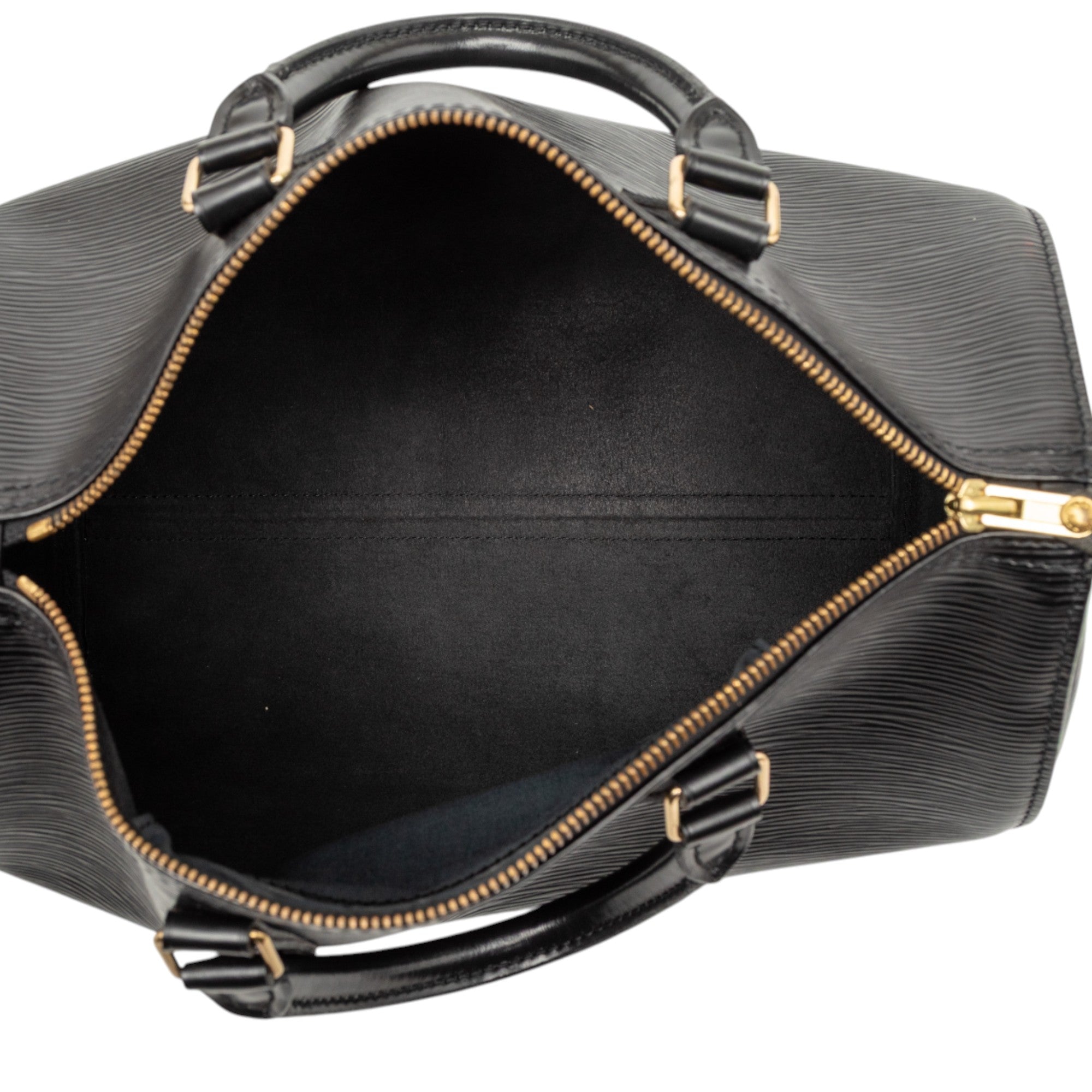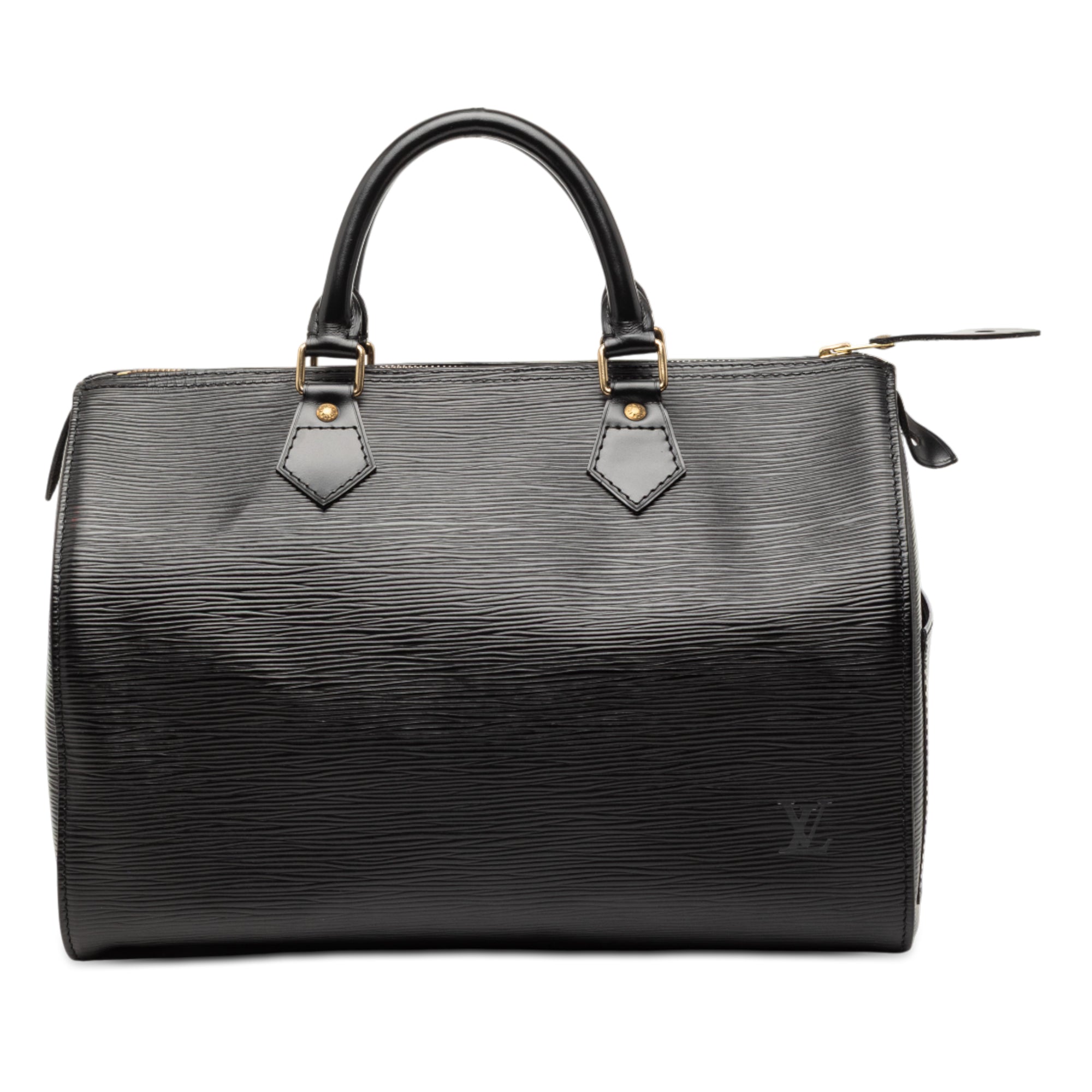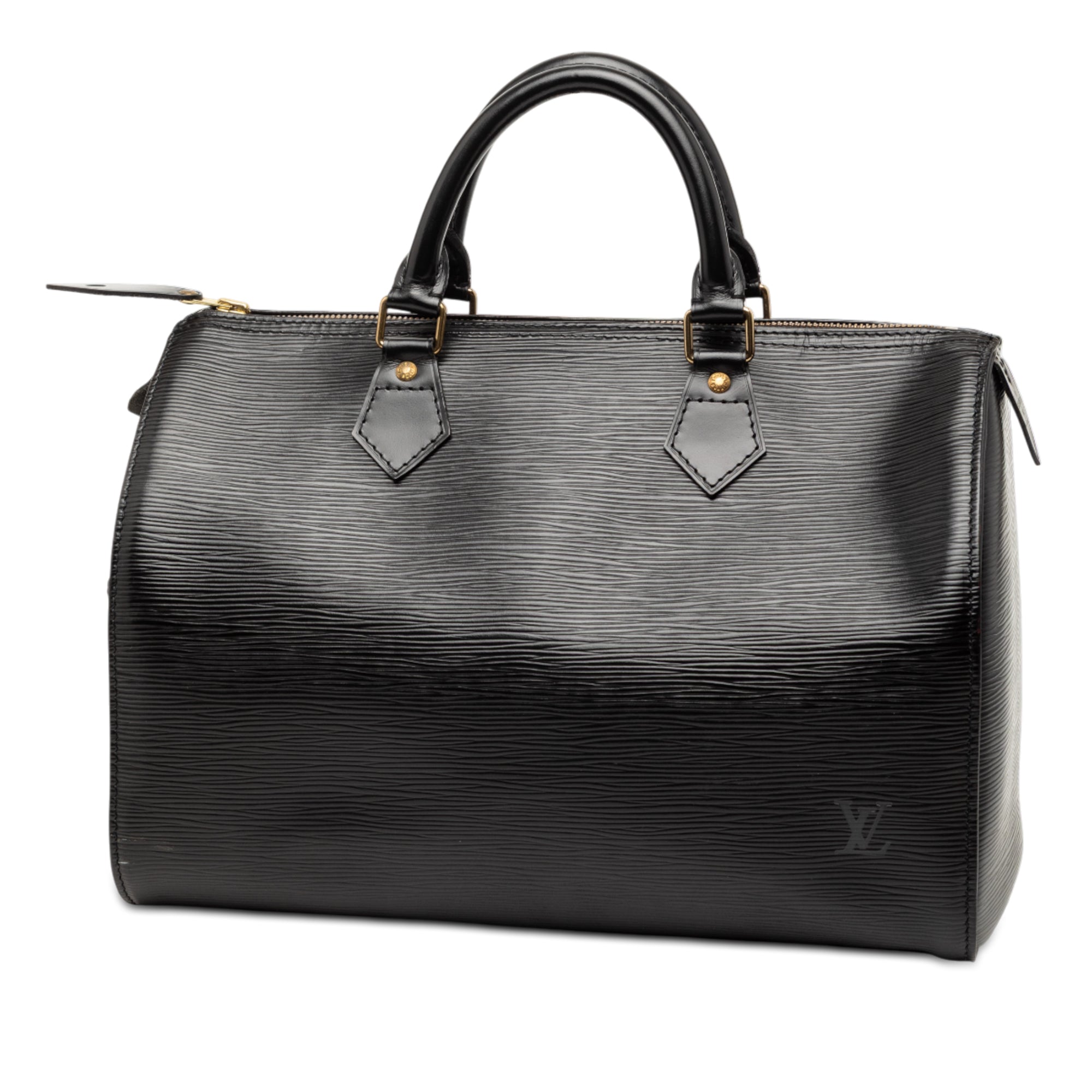 The Speedy 30 features an epi leather body, rolled leather handles, a top zip closure, and an interior slip pocket. Retail Price: 685.00