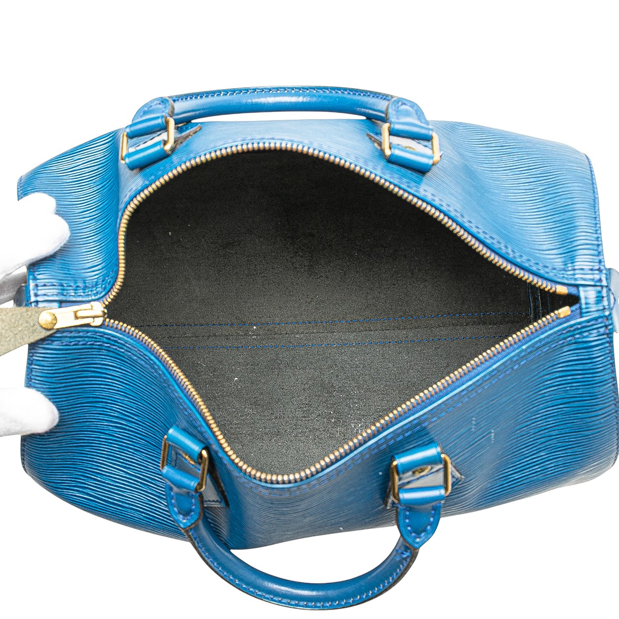 The Speedy 30 features an epi leather body, rolled leather handles, a top zip closure, and interior slip pockets. Retail Price: 1330.00