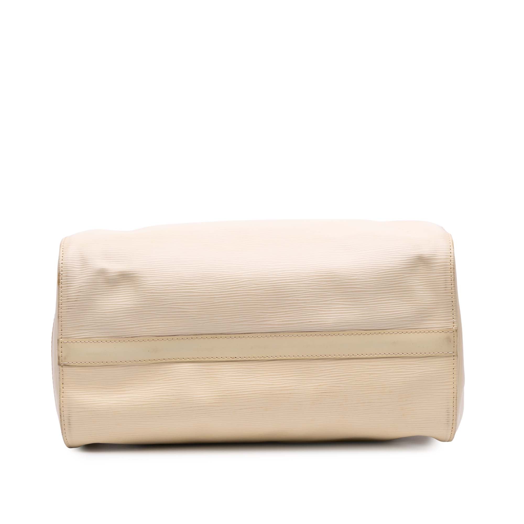 The Speedy 35 features an epi leather body, rolled handles, a top zip closure, an exterior side slip pocket, and interior slip pockets. Retail Price: 1360.00