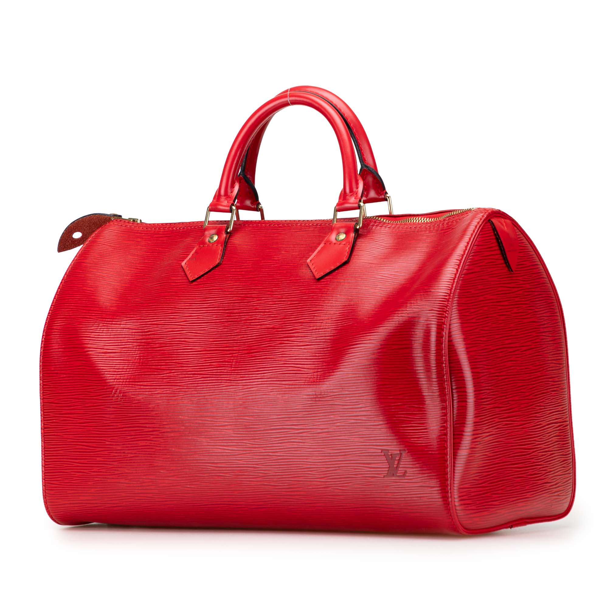 The Speedy 40 features an epi leather body, rolled leather handles, a top zip closure, and an interior pocket. Retail Price: 1360.00