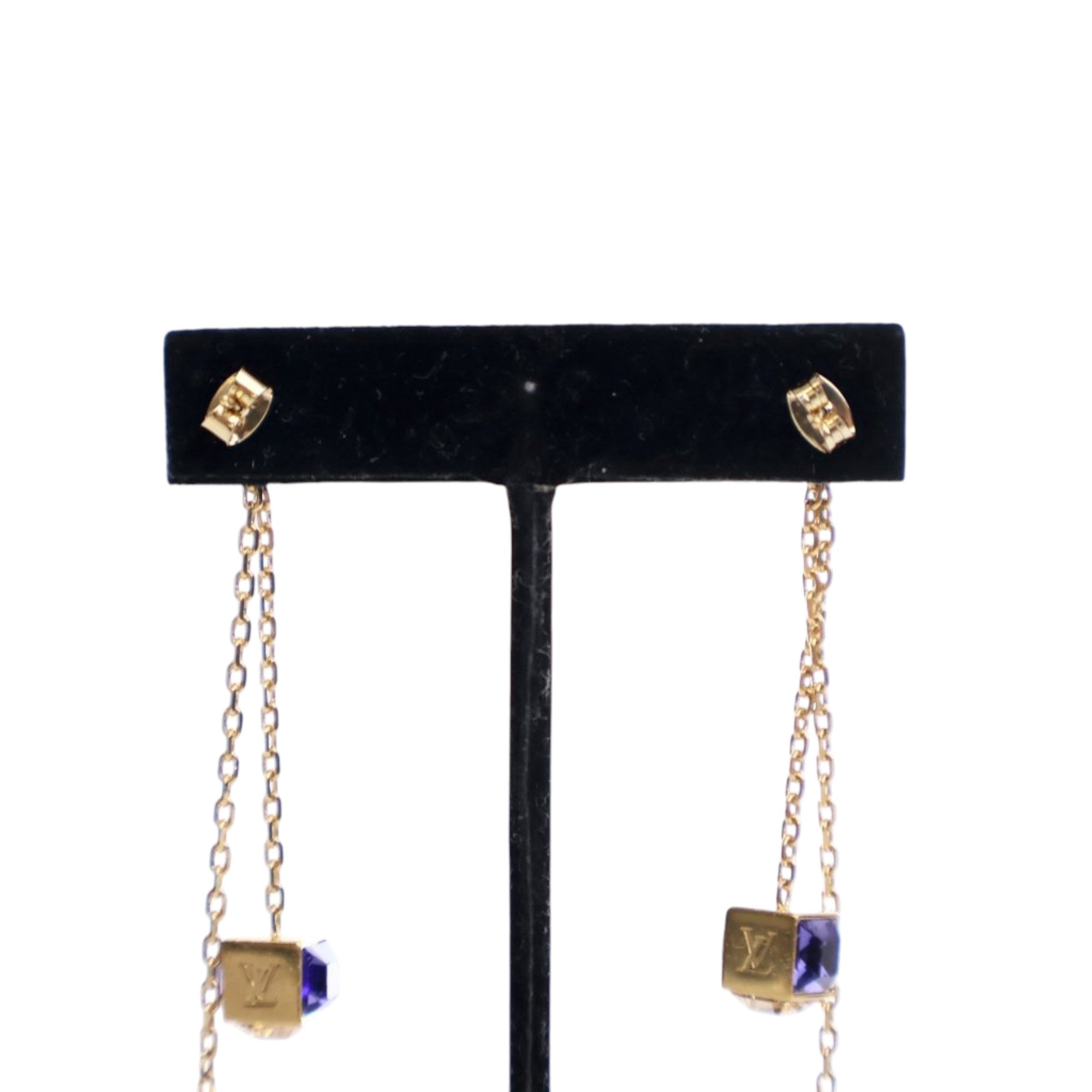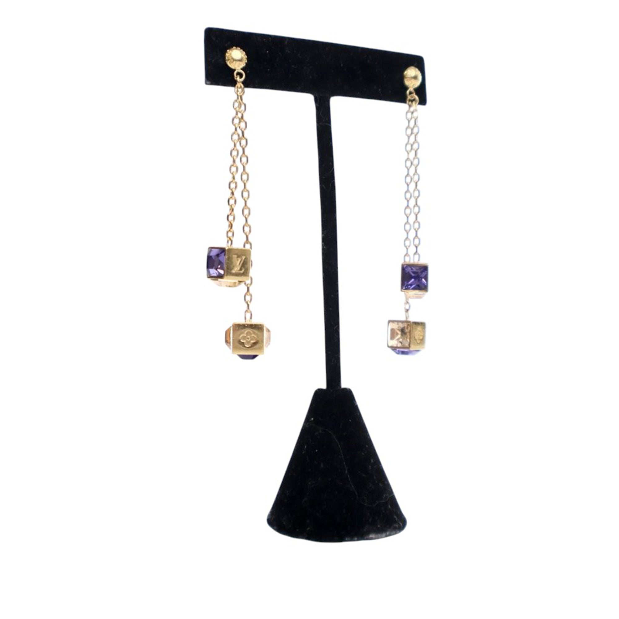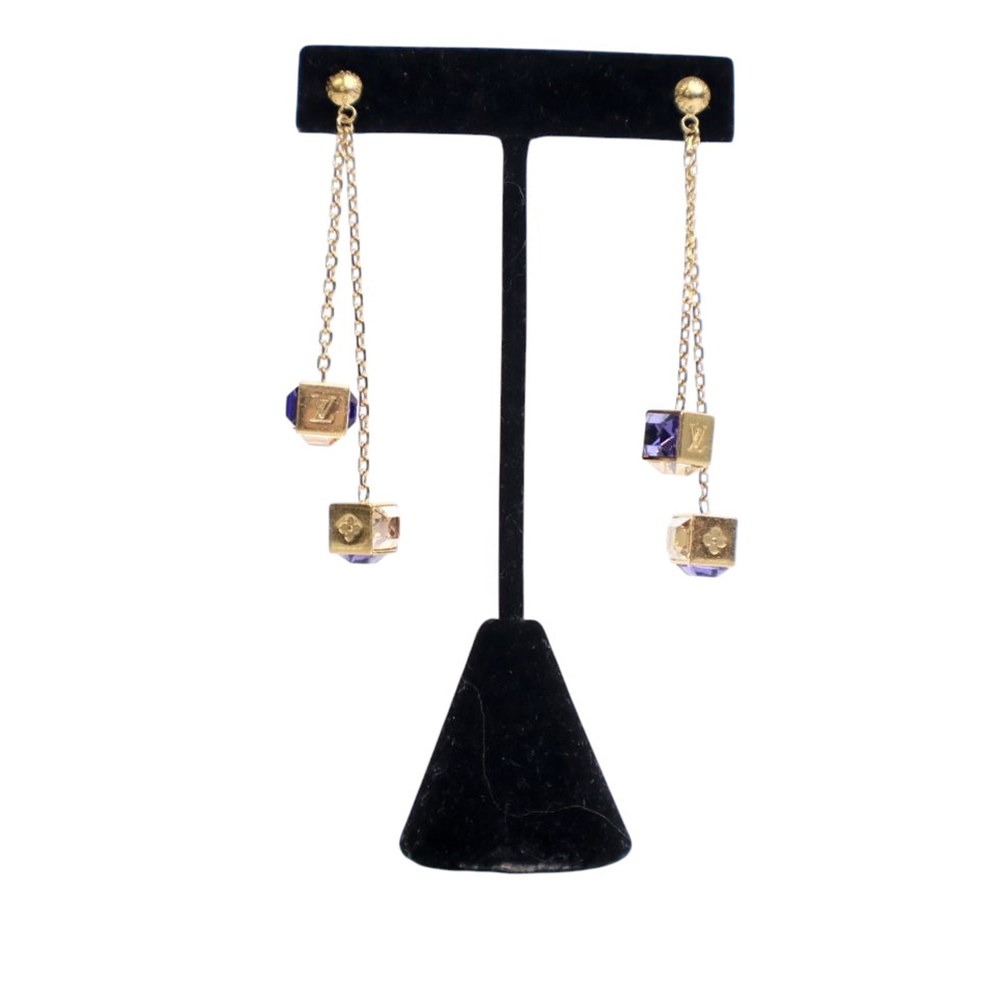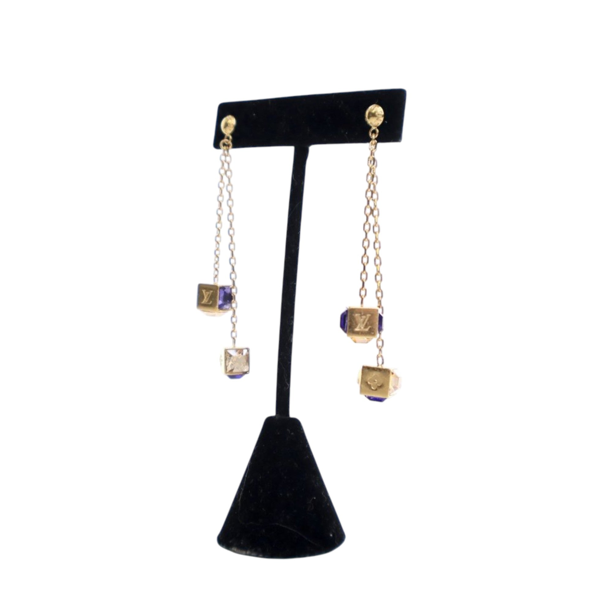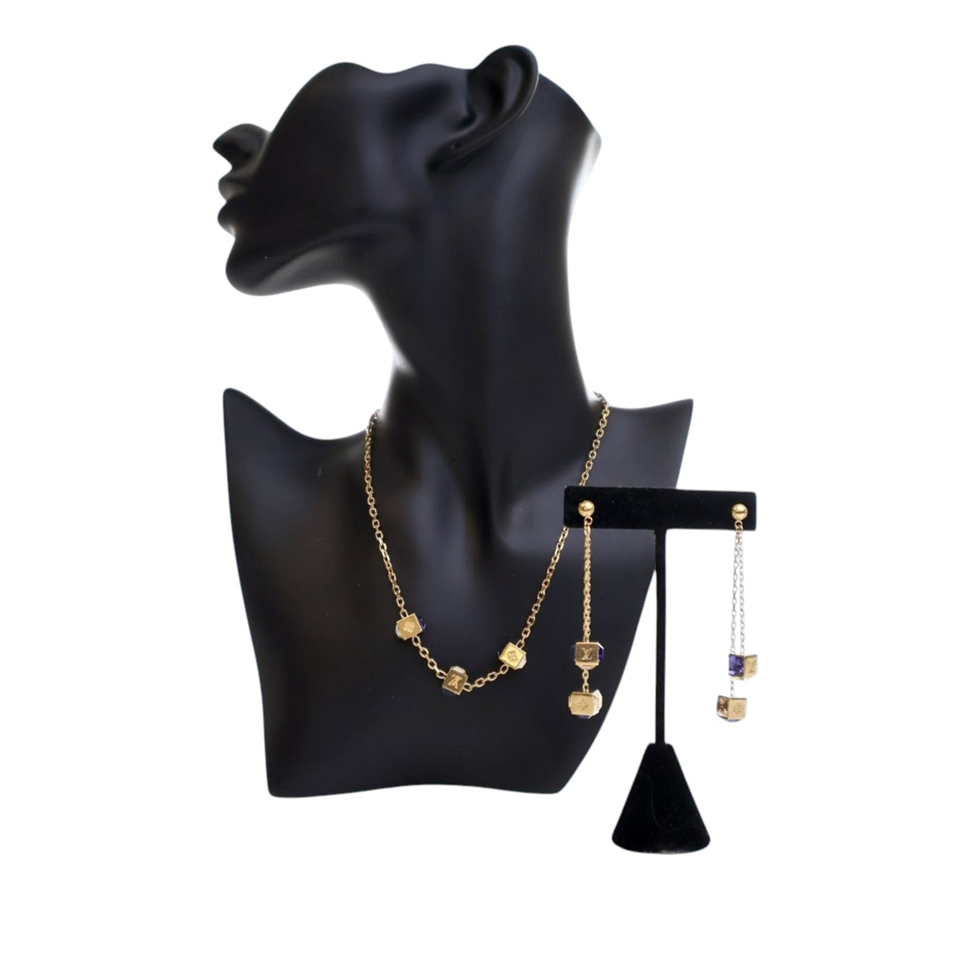 Louis Vuitton Gold Plated Crystal Gamble Drop Earrings And Necklace Set