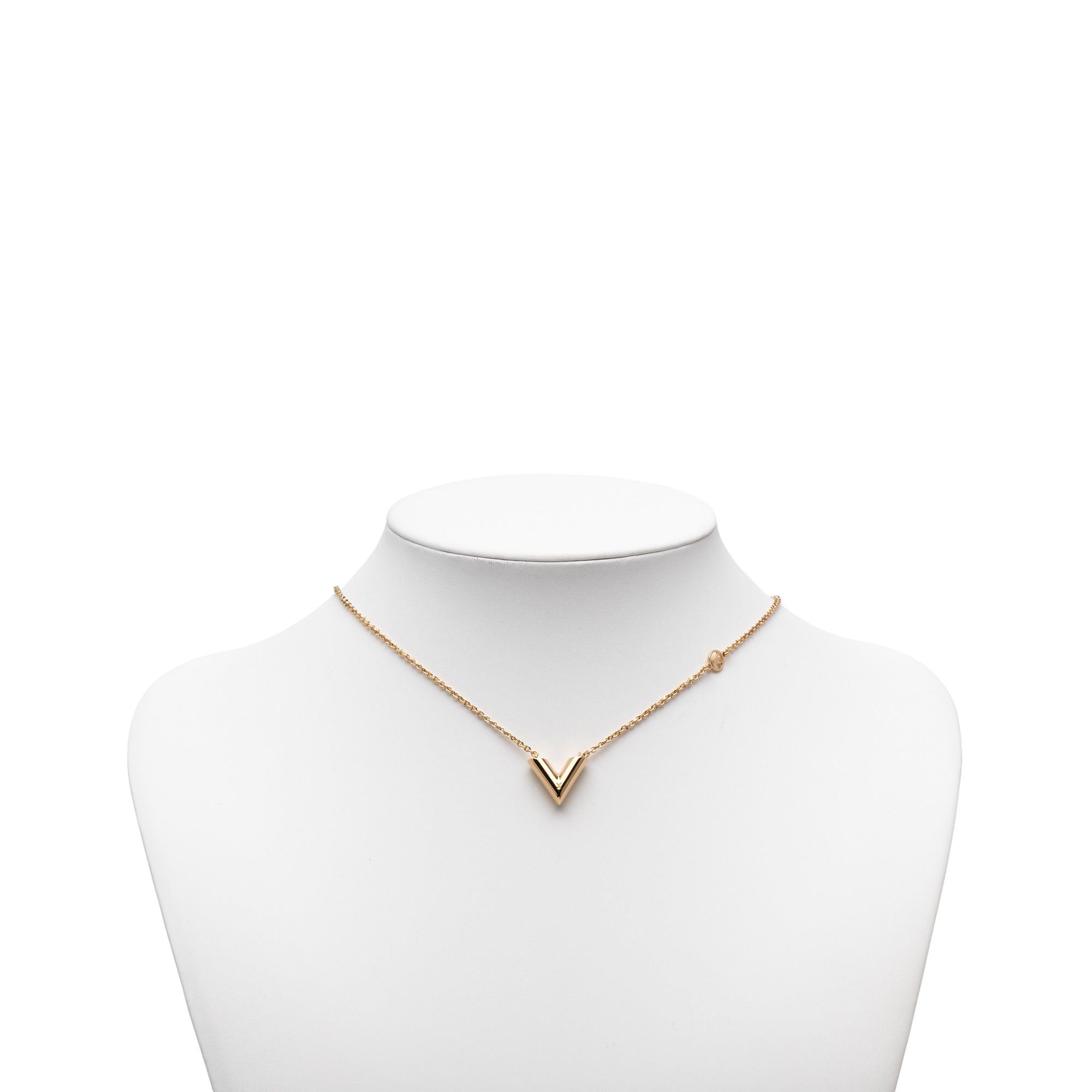 The Essential V Necklace features a gold-plated body, a gold-tone curb chain with V pendant signature and lobster clasp closure. Inclusion: Dust bag, box. Retail Price: 695.00