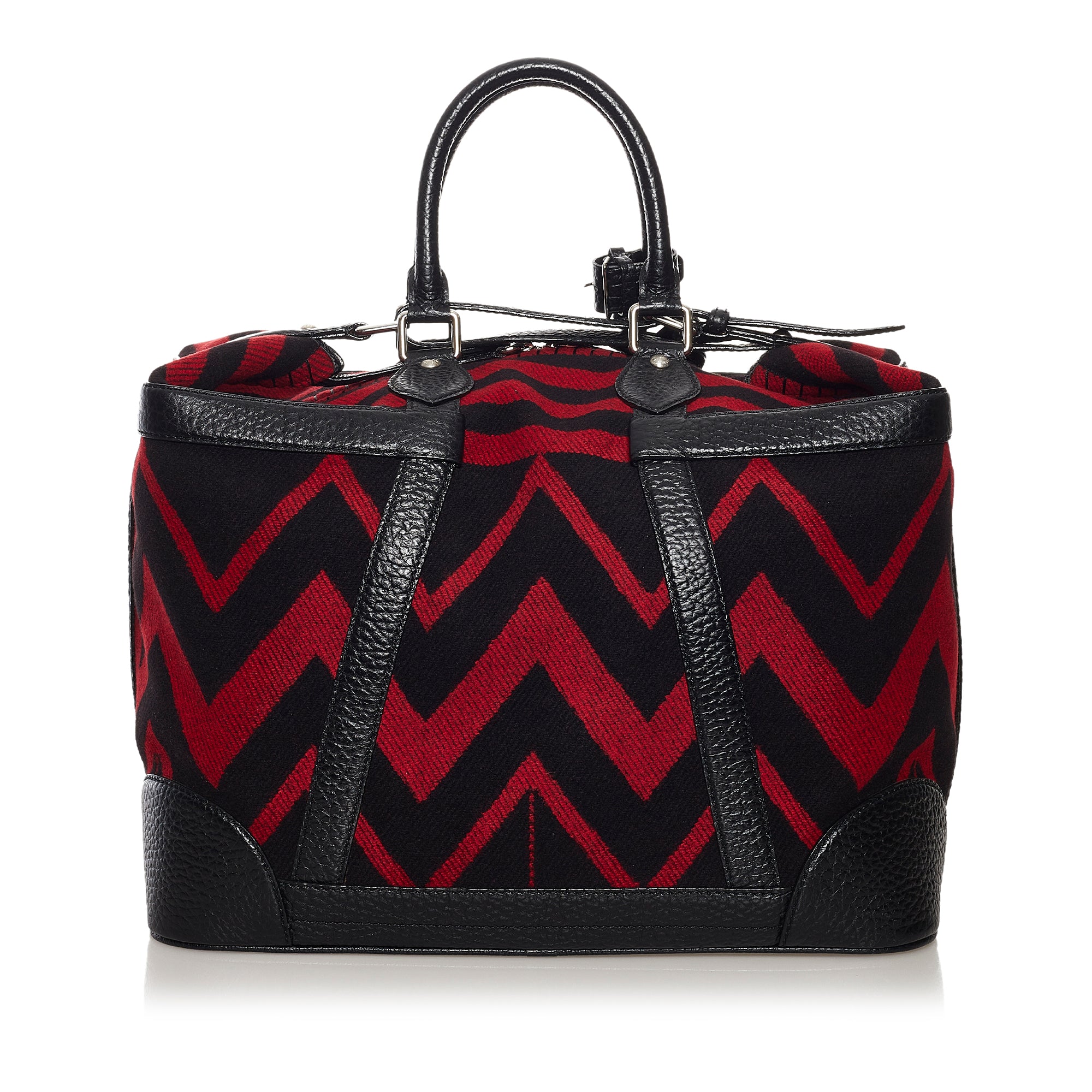 The Grimaud Vail Blanket bag features a wool body with leather trim, rolled handles, a top zip closure and intrerior slip pockets. Retail Price: 1947.00
