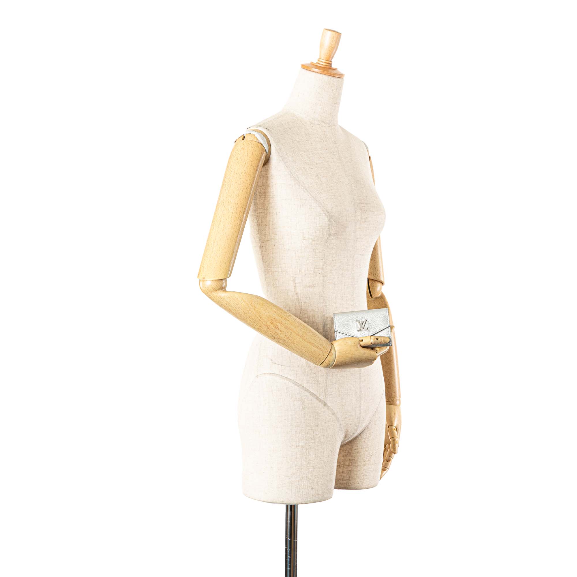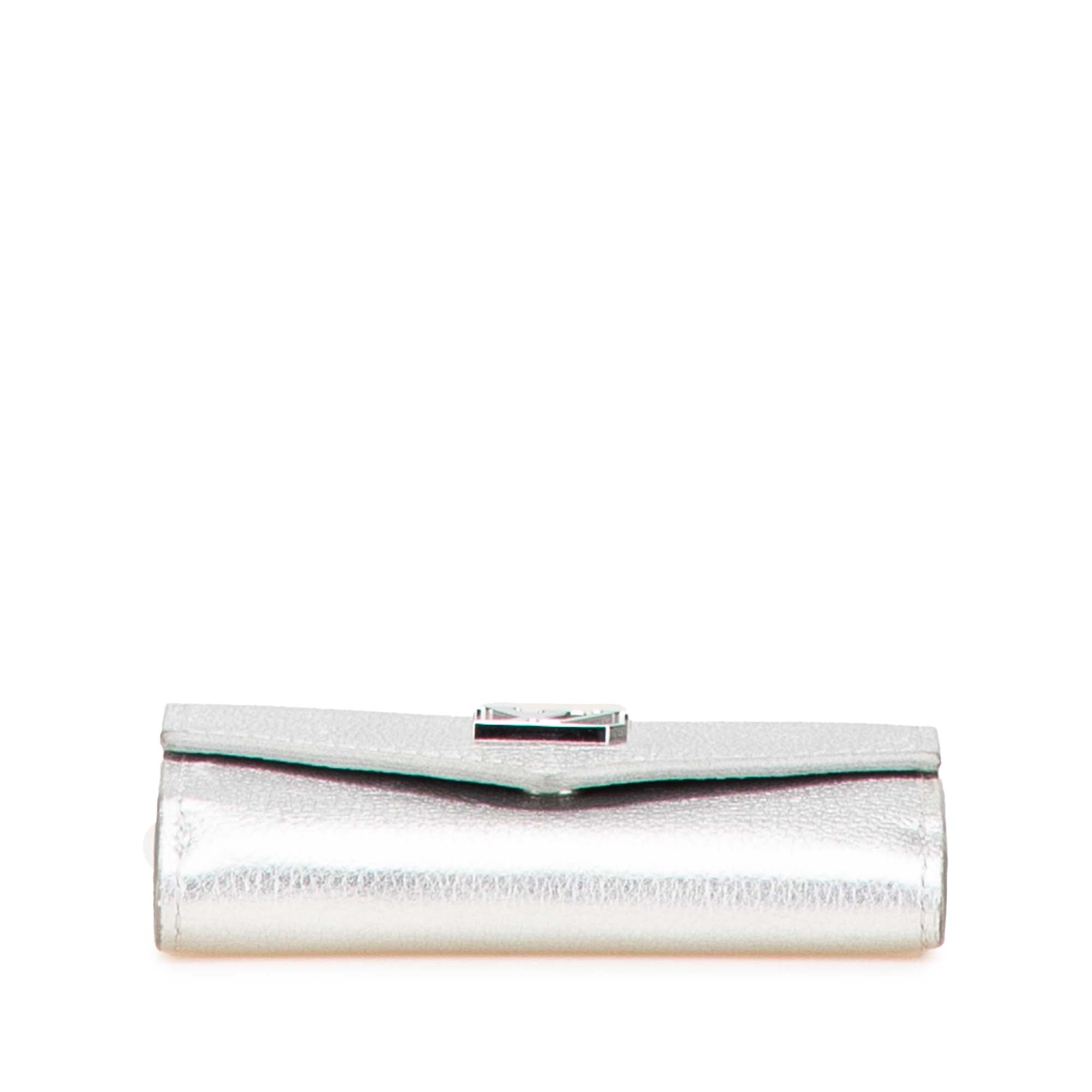 The Lockmini wallet features a leather body, a front flap with snap button closure, and interior slip pockets. Inclusion: Dust bag. Retail Price: 775.00