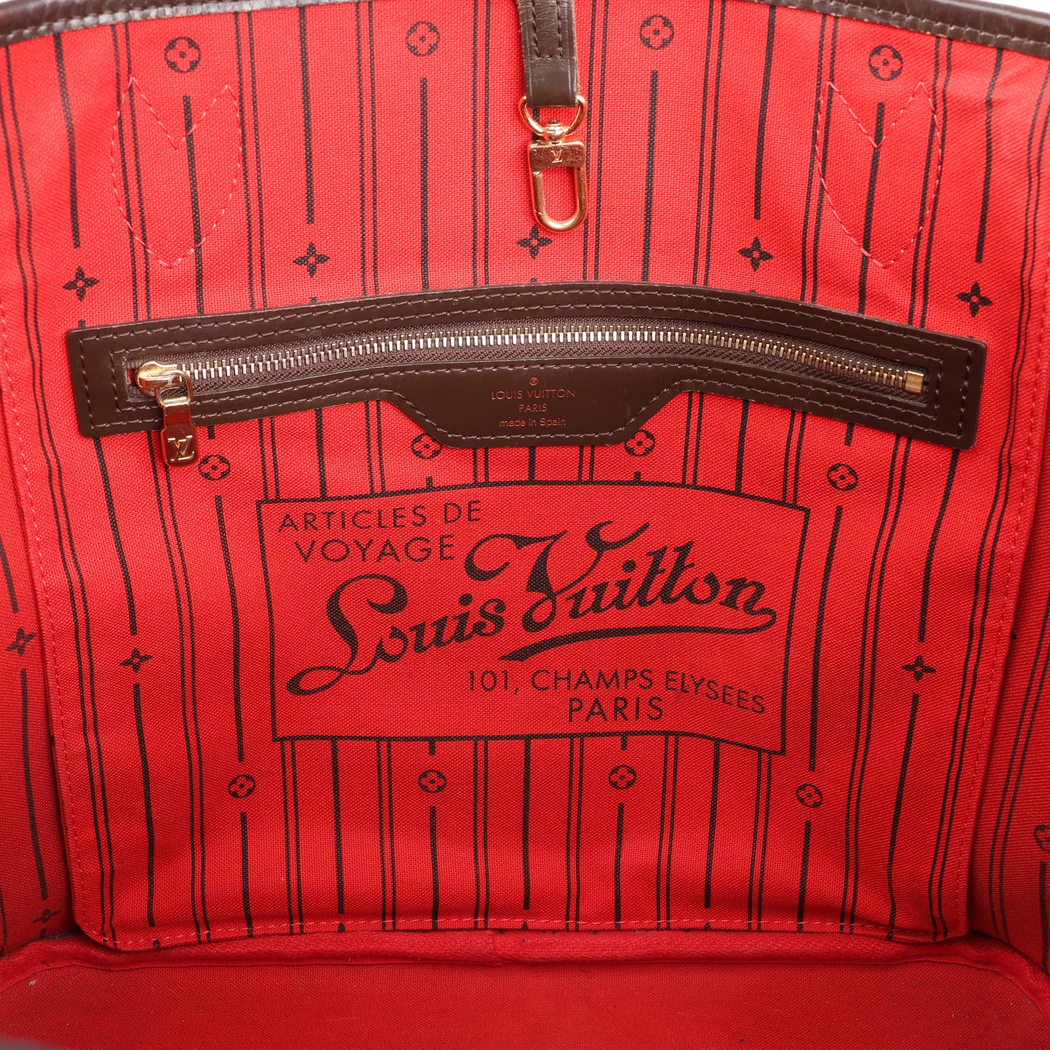 Crafted in iconic Damier Ebene canvas, the Louis Vuitton Neverfull MM N51105 blends elegance and functionality with a spacious interior and sleek silhouette—perfect for daily use or travel.Brand: Louis Vuitton Model: Neverfull Size: MMWidth: 30.5 cmHeight: 26 cmExterior Condition: ExcellentInterior Condition: ExcellentCondition Details: The exterior coated canvas is clean and beautiful with light signs of use as rubbings. The leather handles and upper trim are clean and in very good condition, but glazing has rubbings and cracks. The interior is in great condition, except some stains. Width at top - 45 cm. The date code is CA4161.Colour: BrownInterior Colour: RedHardware Colour: GoldMaterial: LeatherComes With: -