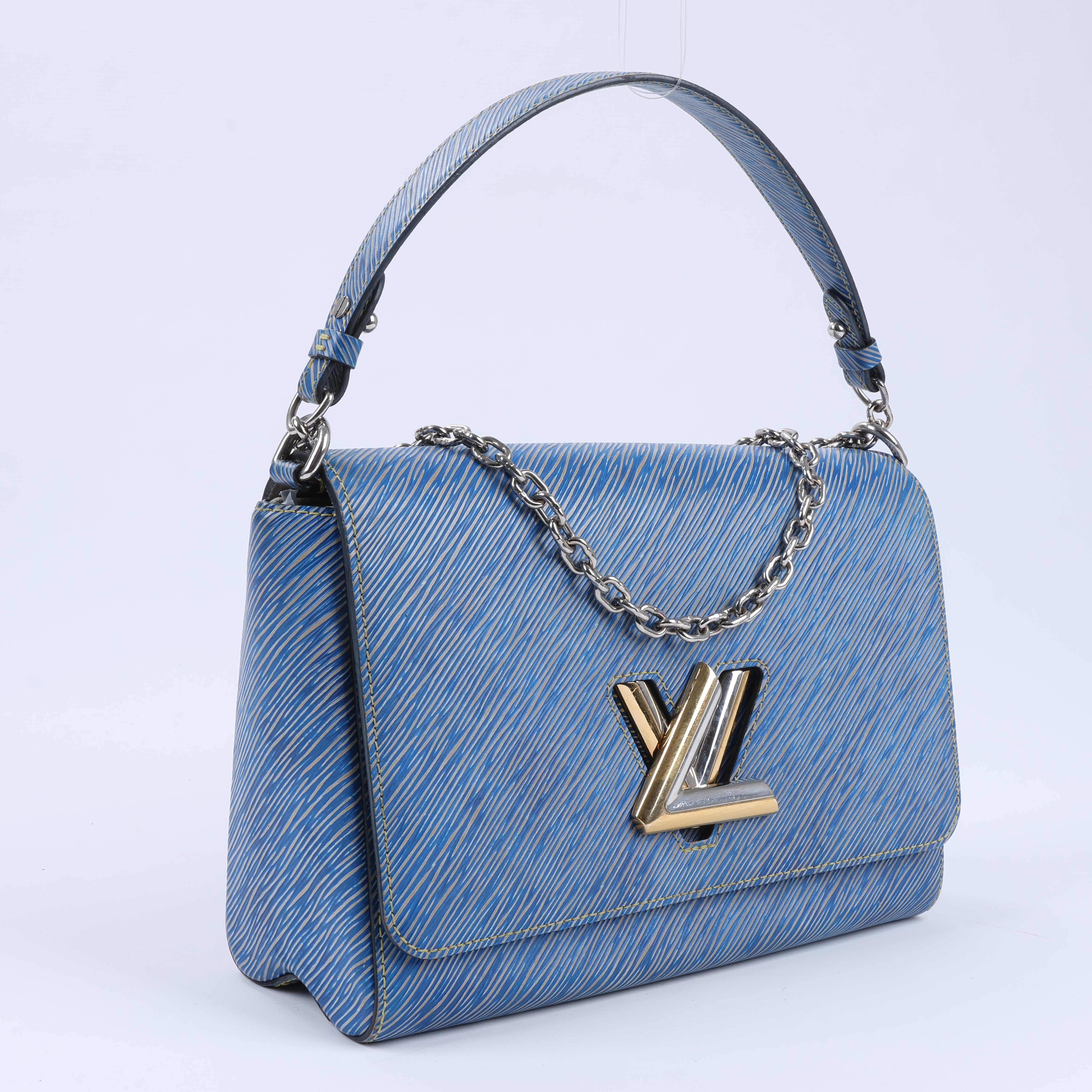 Brand: Louis VuittonModel: Twist Size: GM Width: 27 cmHeight: 18.5 cm Exterior Condition: ExcellentInterior Condition: ExcellentCondition Details: The exterior is in pristine condition with rubbings on edges The hardware is crisp and bright with hairline scratches. The strap is clean and firm. The interior is in great condition, but has usage rubbings. Date code: FL4185Colour: BlueInterior Colour: BeigeHardware Colour: Silver and goldMaterial: LeatherComes With: -