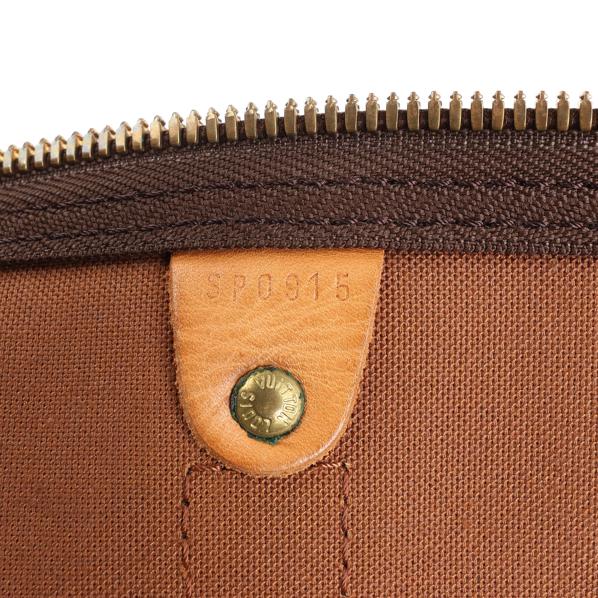 Brand: Louis VuittonModel: KeepallSize: 55Width: 56 cmHeight: 30.5 cmExterior Condition: ExcellentInterior Condition: ExcellentCondition Details: The exterior canvas is clean and beautiful, in excellent condition. The cowhide leather trim and handles are in great condition developed honey patina and has some rubbings. The gold hardware is bright and crisp, but some parts has darkened. The interior is in excellent condition. Date code: SP0915.Colour: BrownInterior Colour: BrownHardware Colour: GoldMaterial: LeatherComes With: Luggage tag