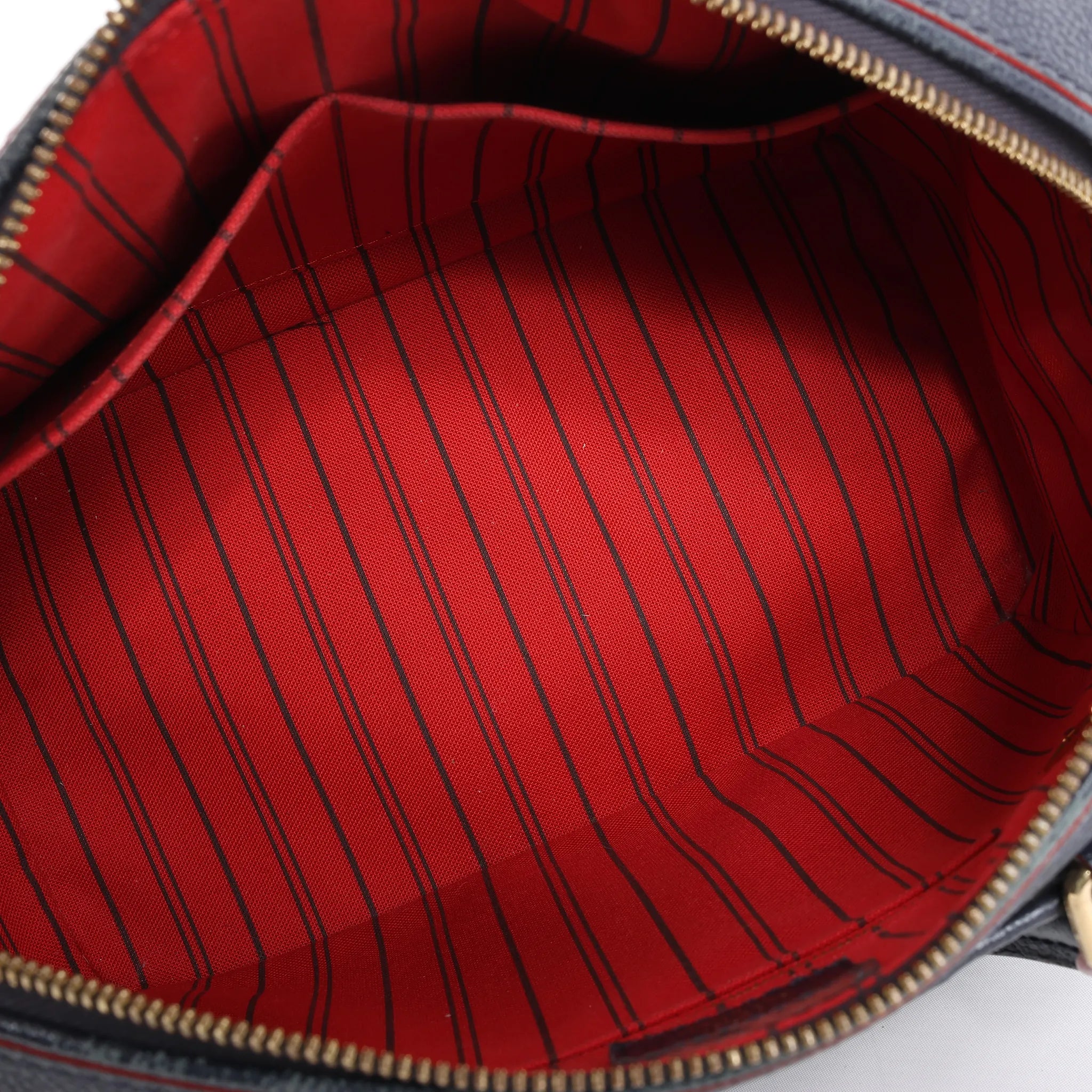 Refined and versatile, the Louis Vuitton Monogram Empreinte Speedy 25 Bandoulière M43501 in navy blue embossed leather features luxurious texture, gold-tone hardware, and red edge piping—offering timeless elegance with a modern edge.