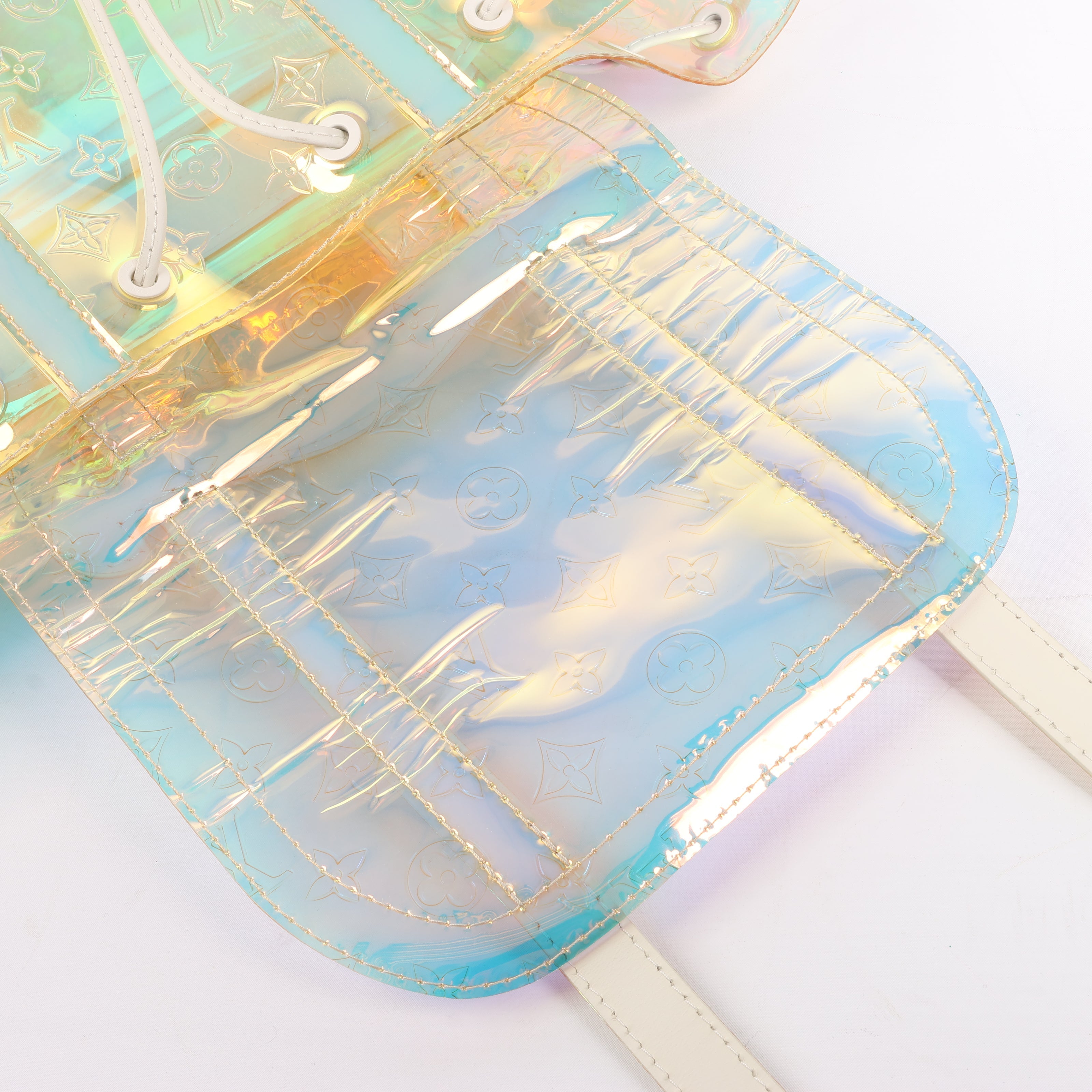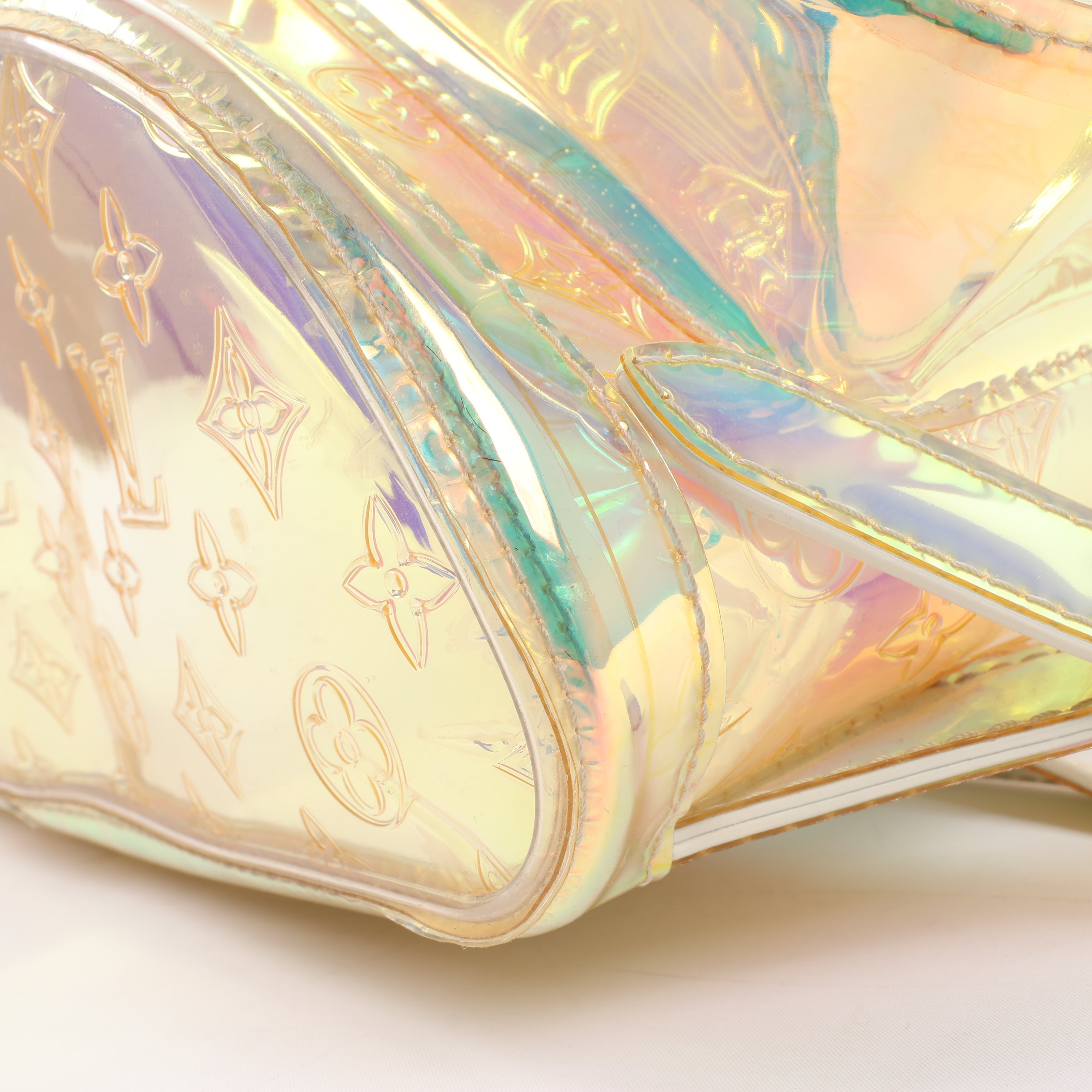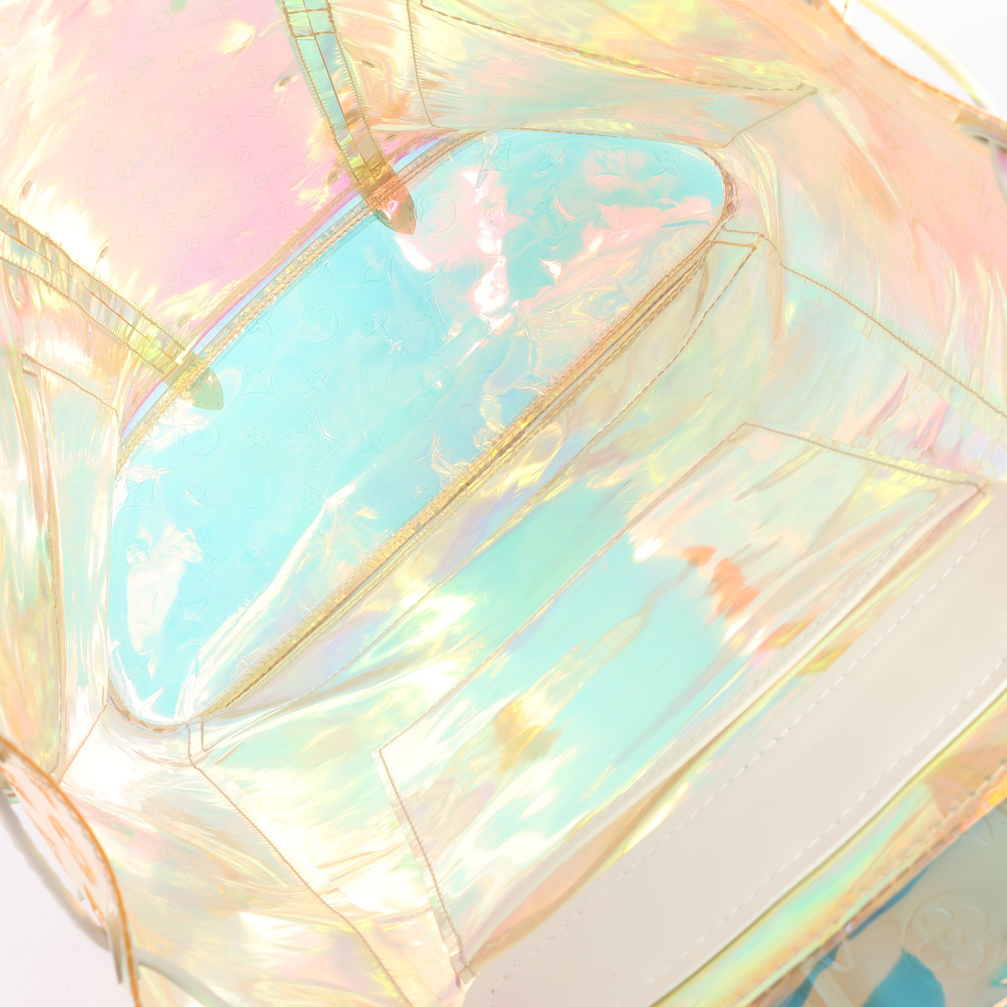 Louis Vuitton Monogram Prism Christopher GM Backpack in iridescent PVC with iconic monogram embossing. A futuristic, statement-making design combining luxury and innovation with spacious, functional style. Model M44766.