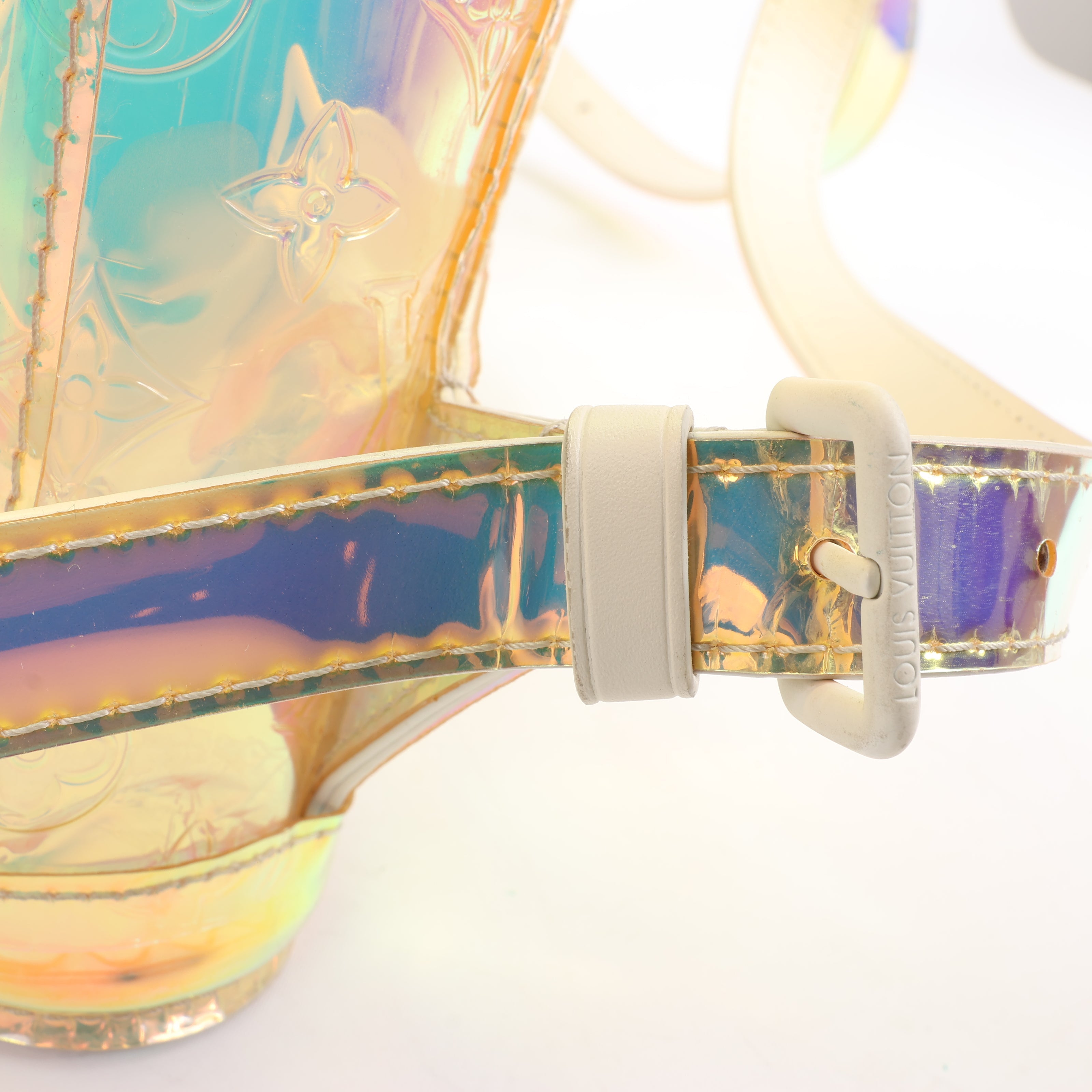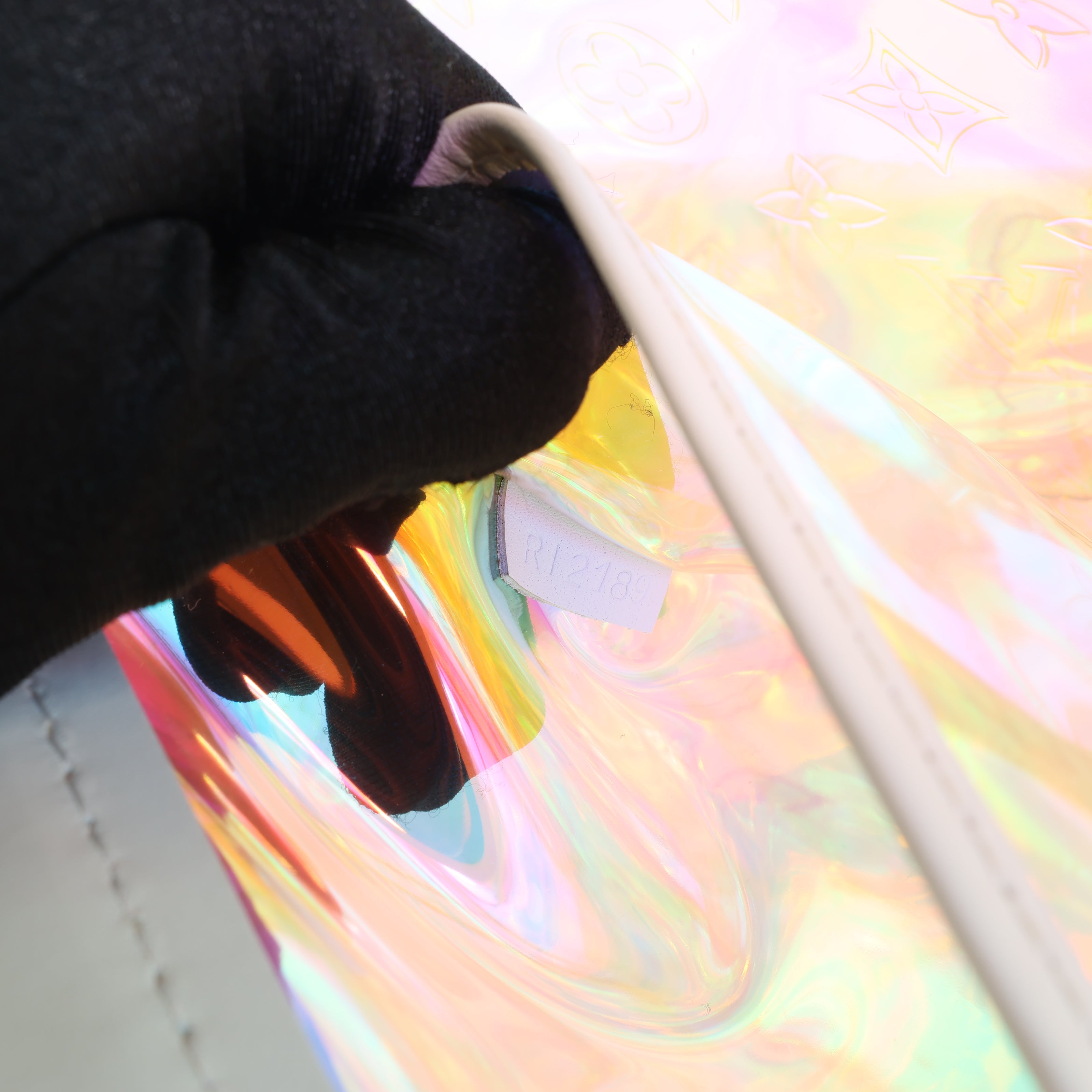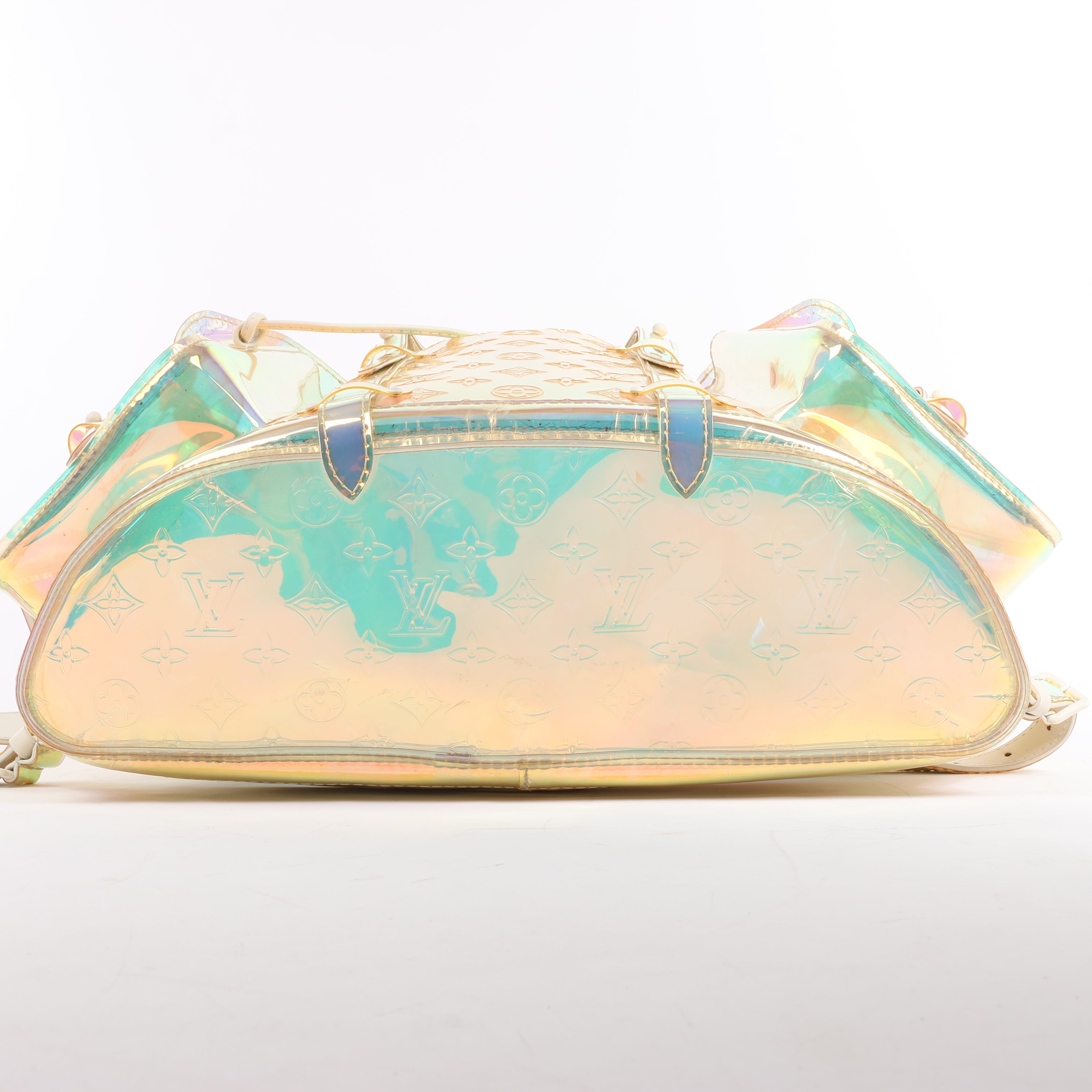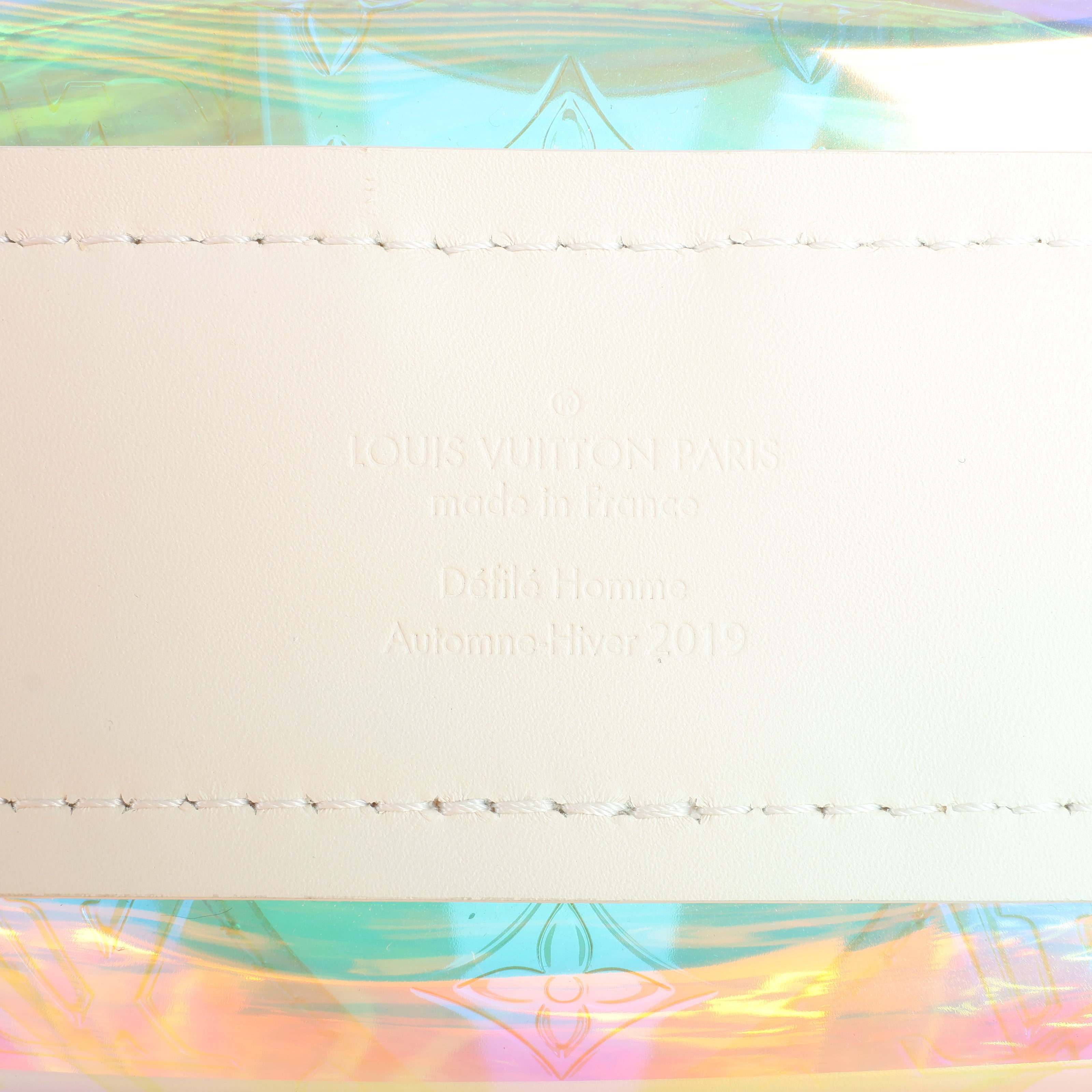 Louis Vuitton Monogram Prism Christopher GM Backpack in iridescent PVC with iconic monogram embossing. A futuristic, statement-making design combining luxury and innovation with spacious, functional style. Model M44766.