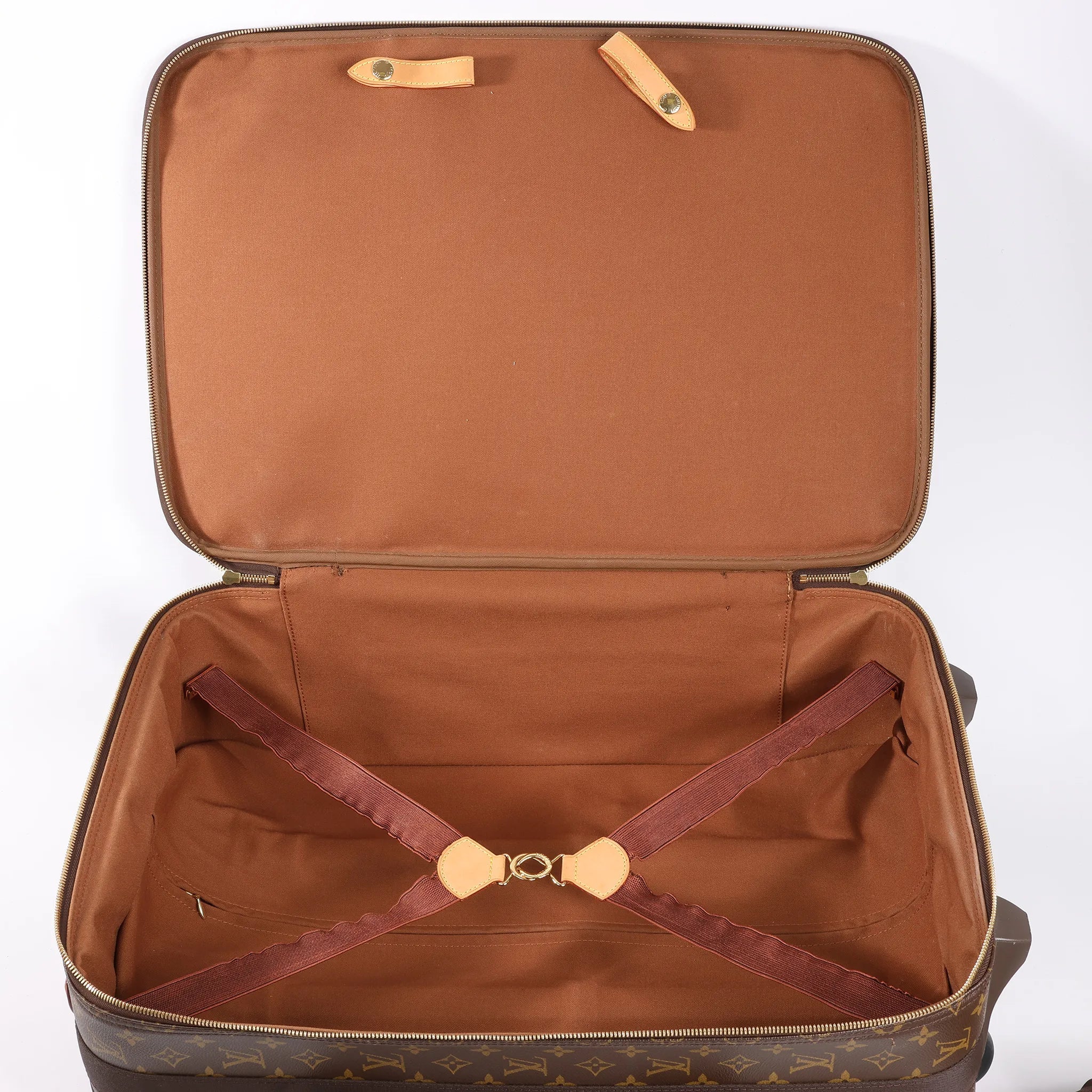 Brand: Louis Vuitton Model: PegaseSize: 55Width: 36 cmHeight: 52 cmDepth: 18 cmExterior Condition: ExcellentInterior Condition: ExcellentCondition Details: The exterior canvas is clean and beautiful, in excellent condition. The cowhide leather is in good condition with water marks and rubbings. Note: The side part brown leather is fully changed. The plastic parts has scratches. The gold hardware some sports has darkened. The interior is clean and in very good condition. Date code: SR1024Colour: BrownInterior Colour: BrownHardware Colour: GoldMaterial: Leather, CanvasComes With: Garment with cover