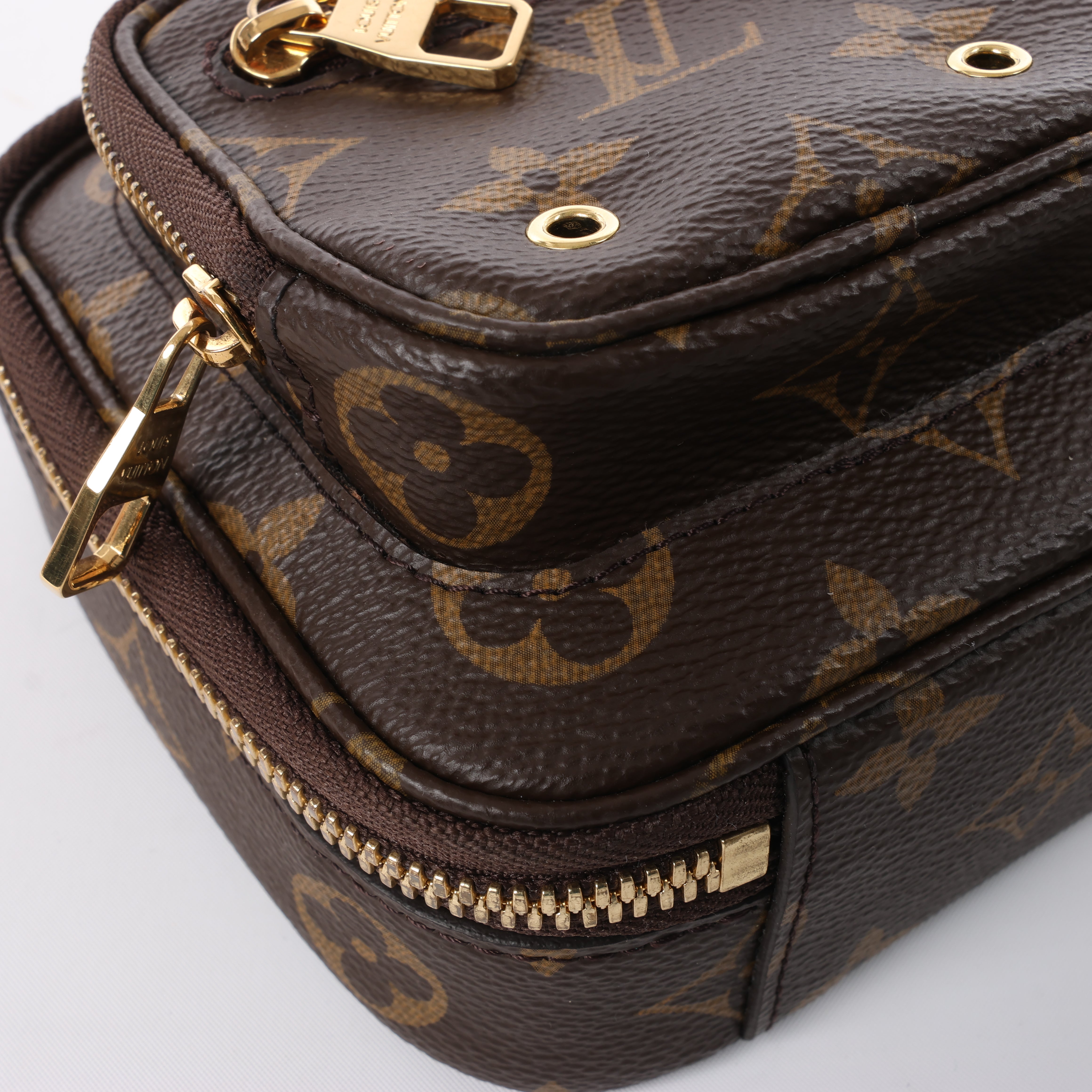 Louis Vuitton Utility Crossbody Bag M80446 in monogram canvas with gold-tone hardware and detachable mini pouch. A bold, functional design with multiple pockets and wide logo strap—modern luxury meets everyday utility.