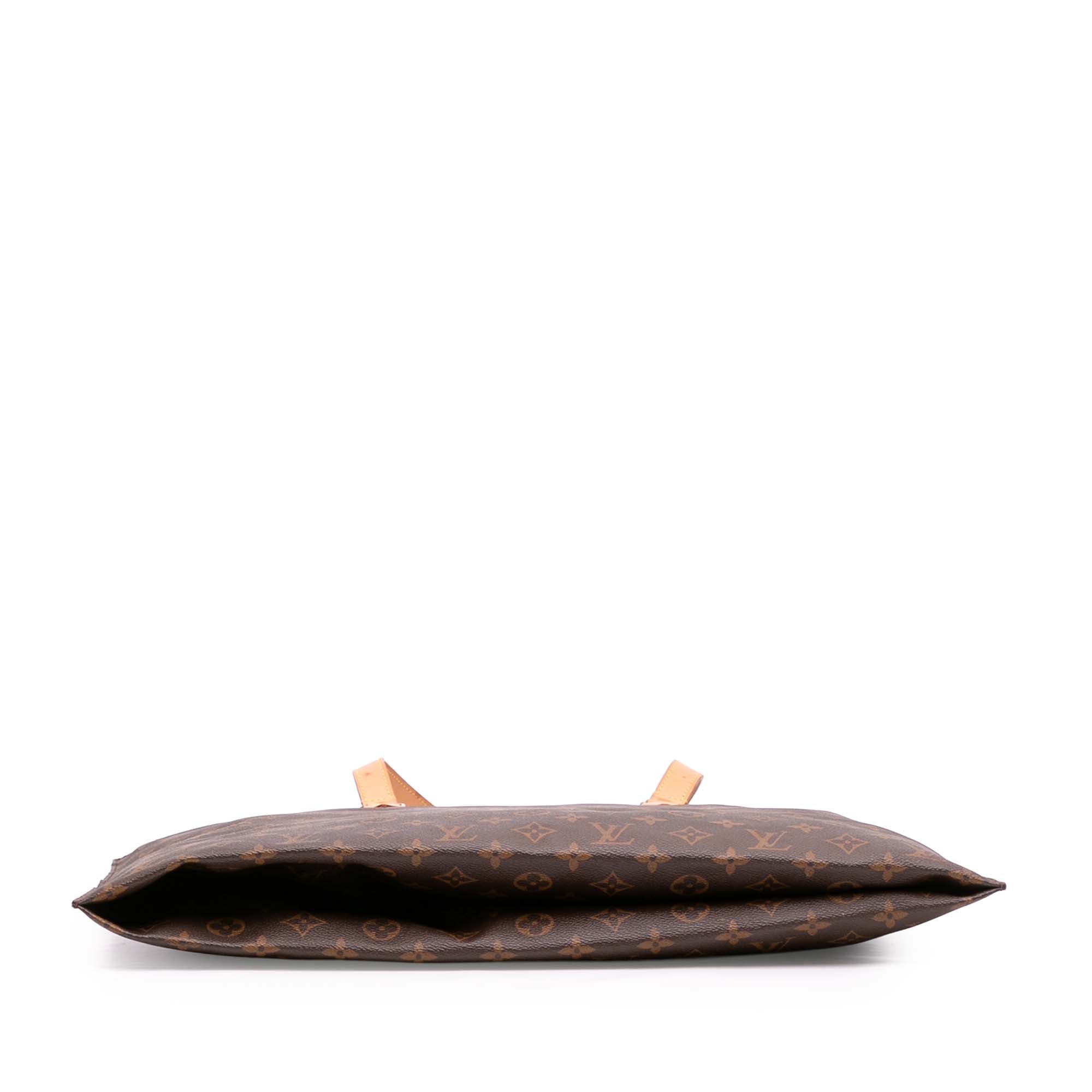 The All-In PM features a monogram canvas body, flat vachetta leather straps, a top zip closure, and an interior zip pocket. Retail Price: 1830.00