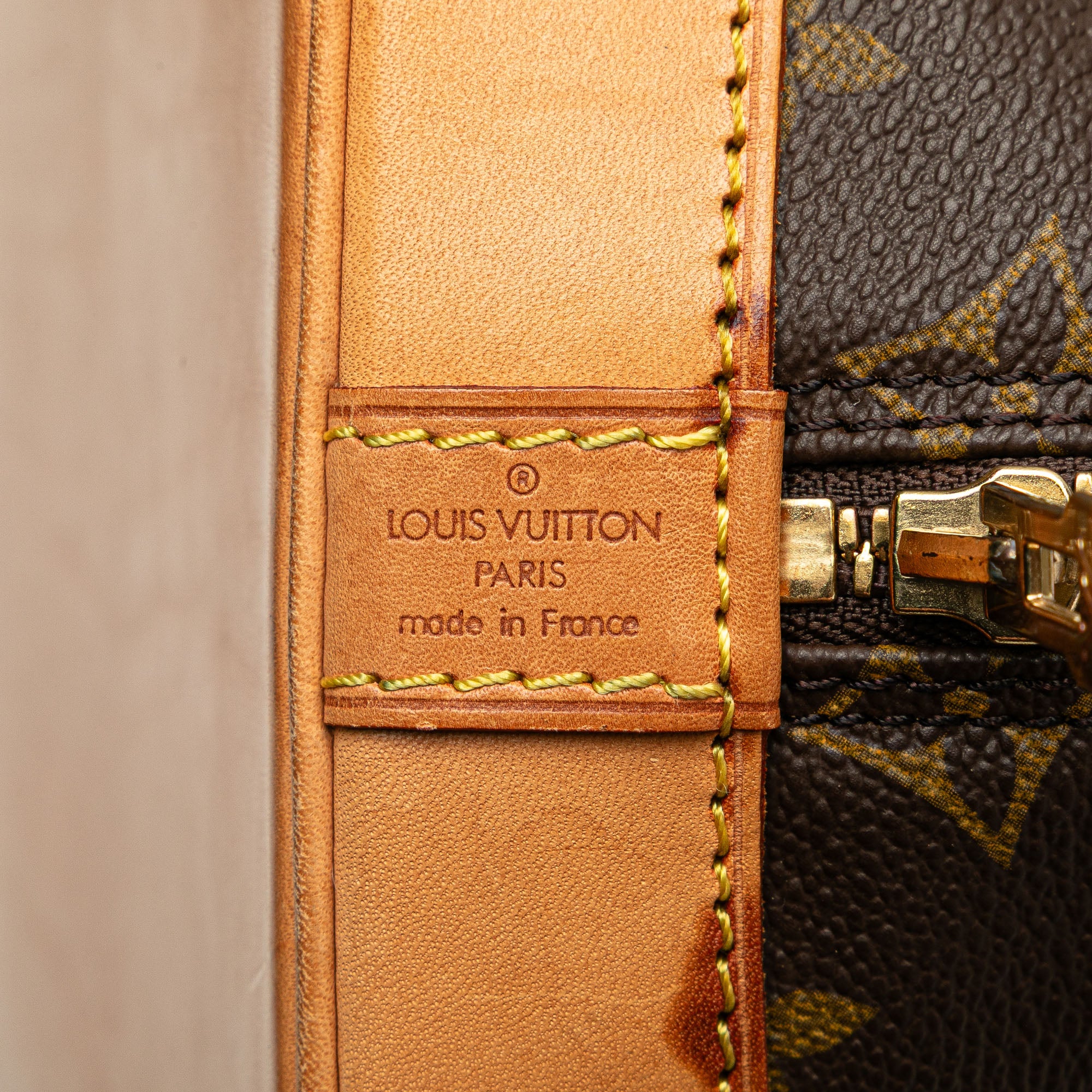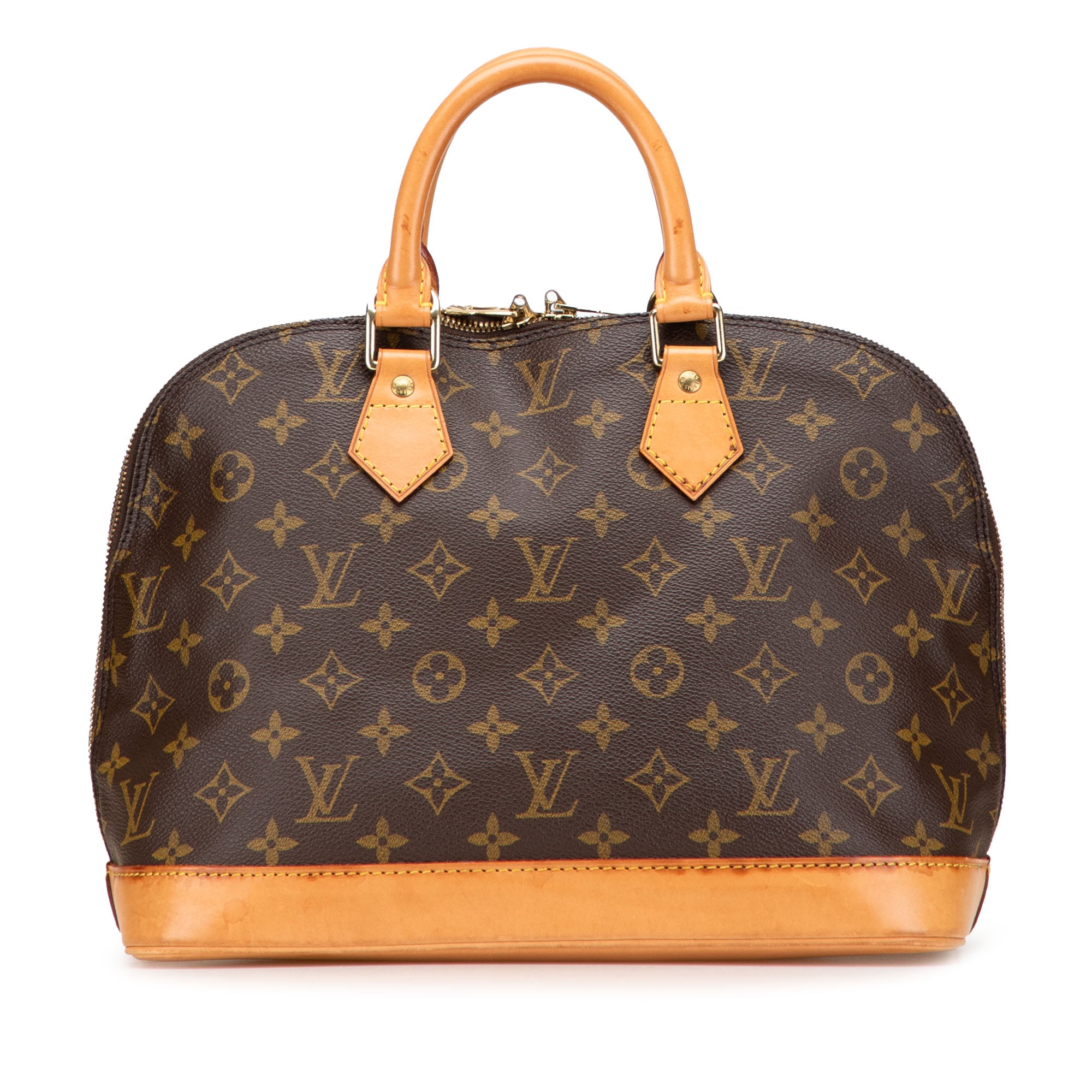 The Alma PM features a monogram canvas body with vachetta leather trim, rolled vachetta leather handles, a top zip closure, and an interior slip pocket. Inclusion: Dust bag. Retail Price: 1579.00
