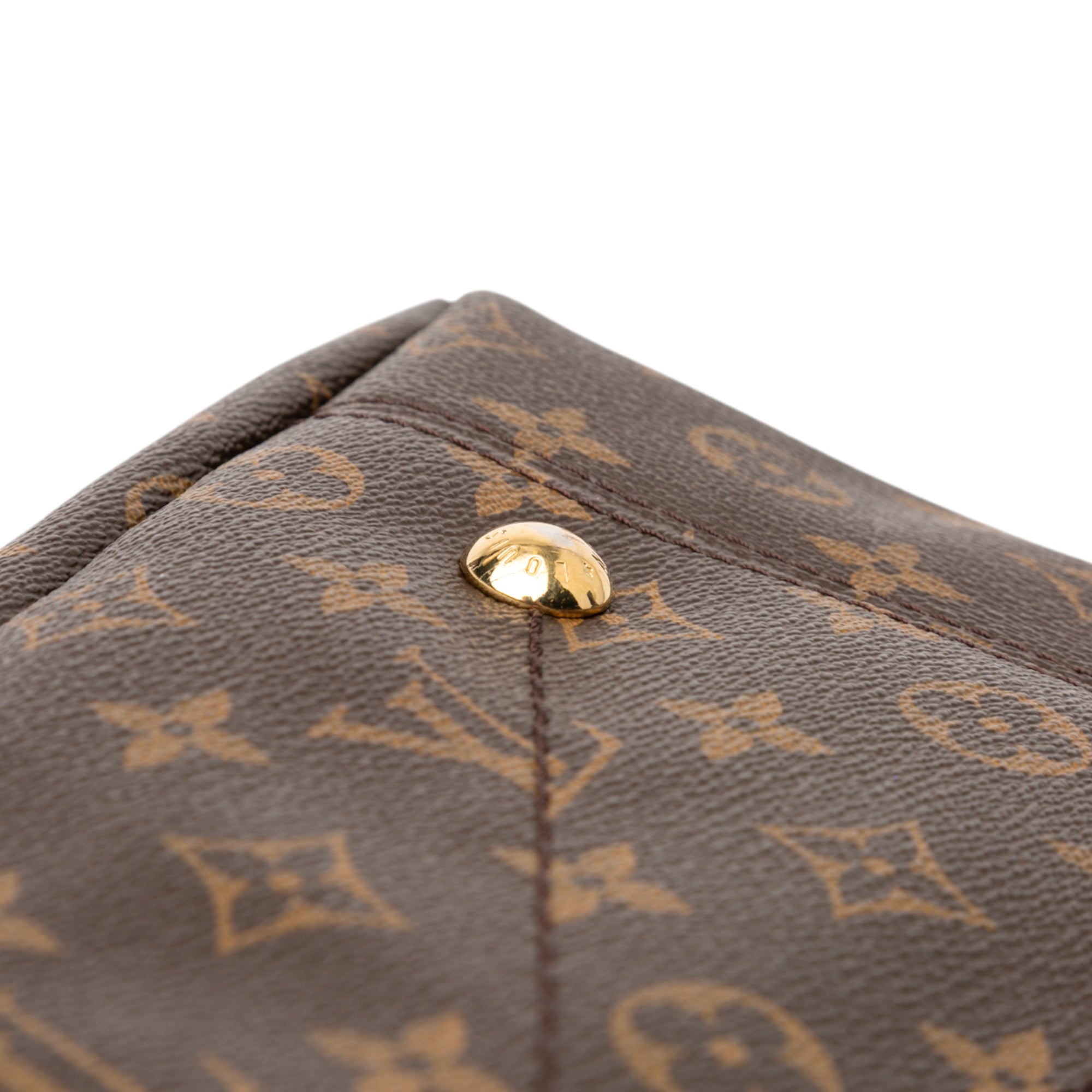 The Artsy MM features an monogram canvas body, a rolled vachetta leather strap, an open top, and interior zip and slip pockets. Retail Price: 2405.00