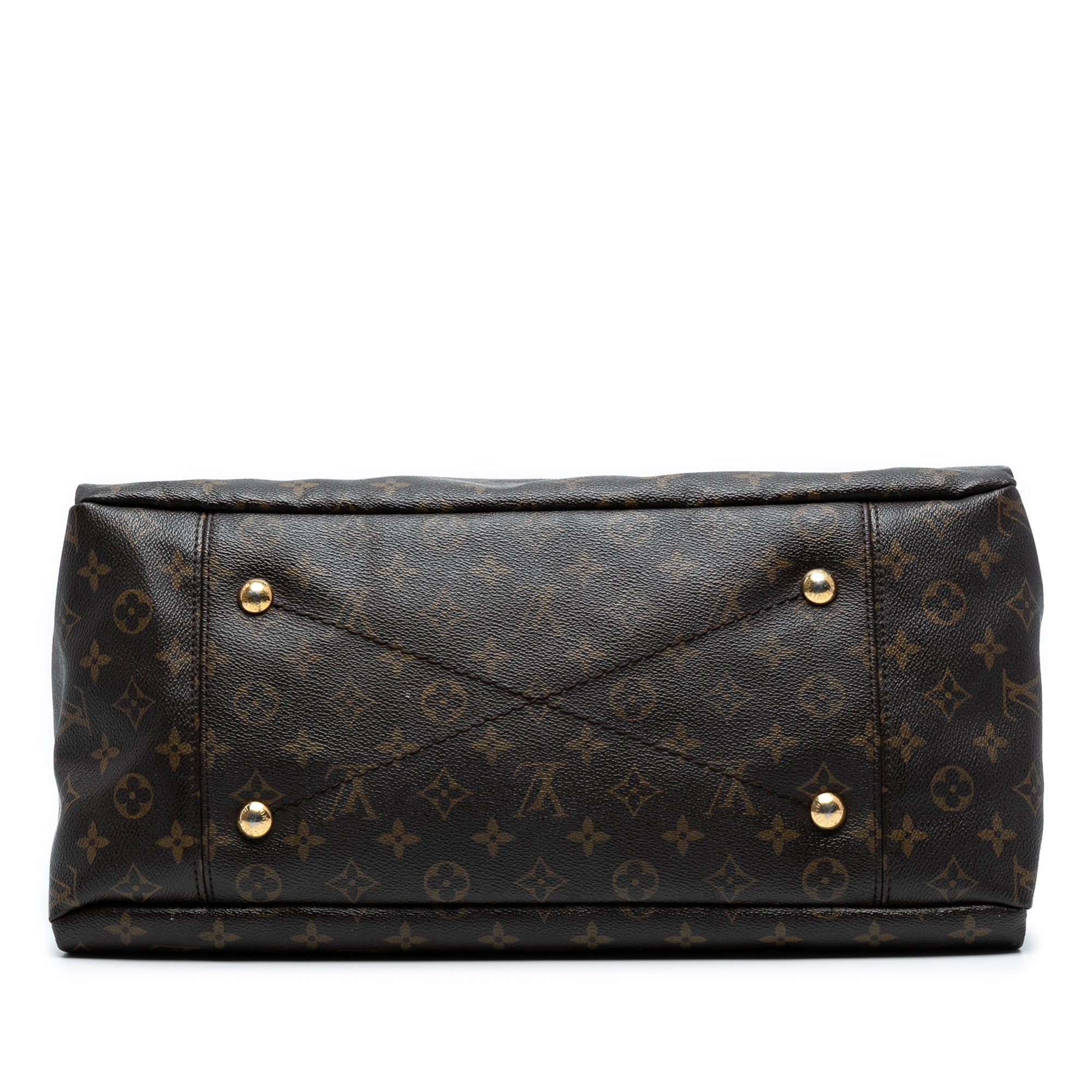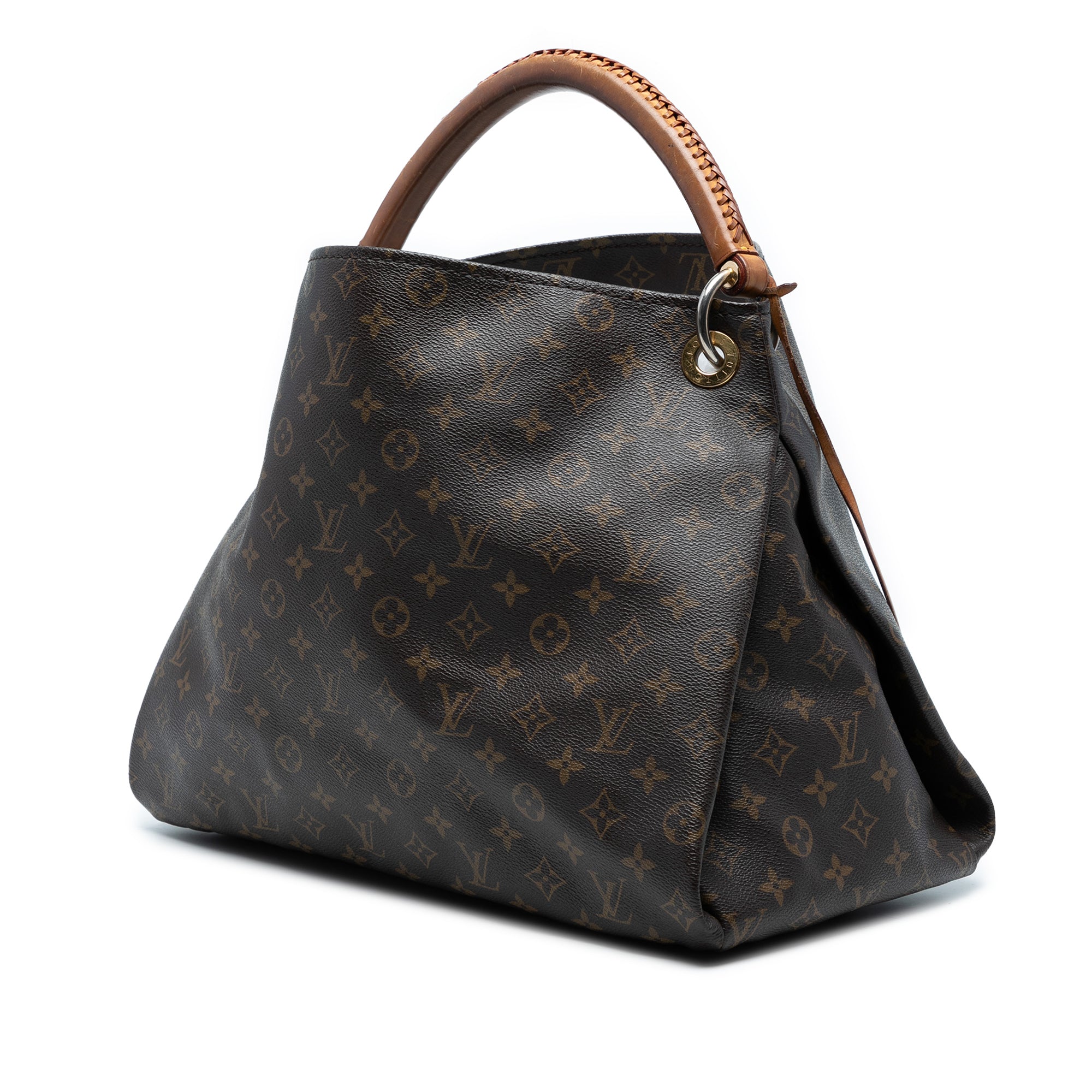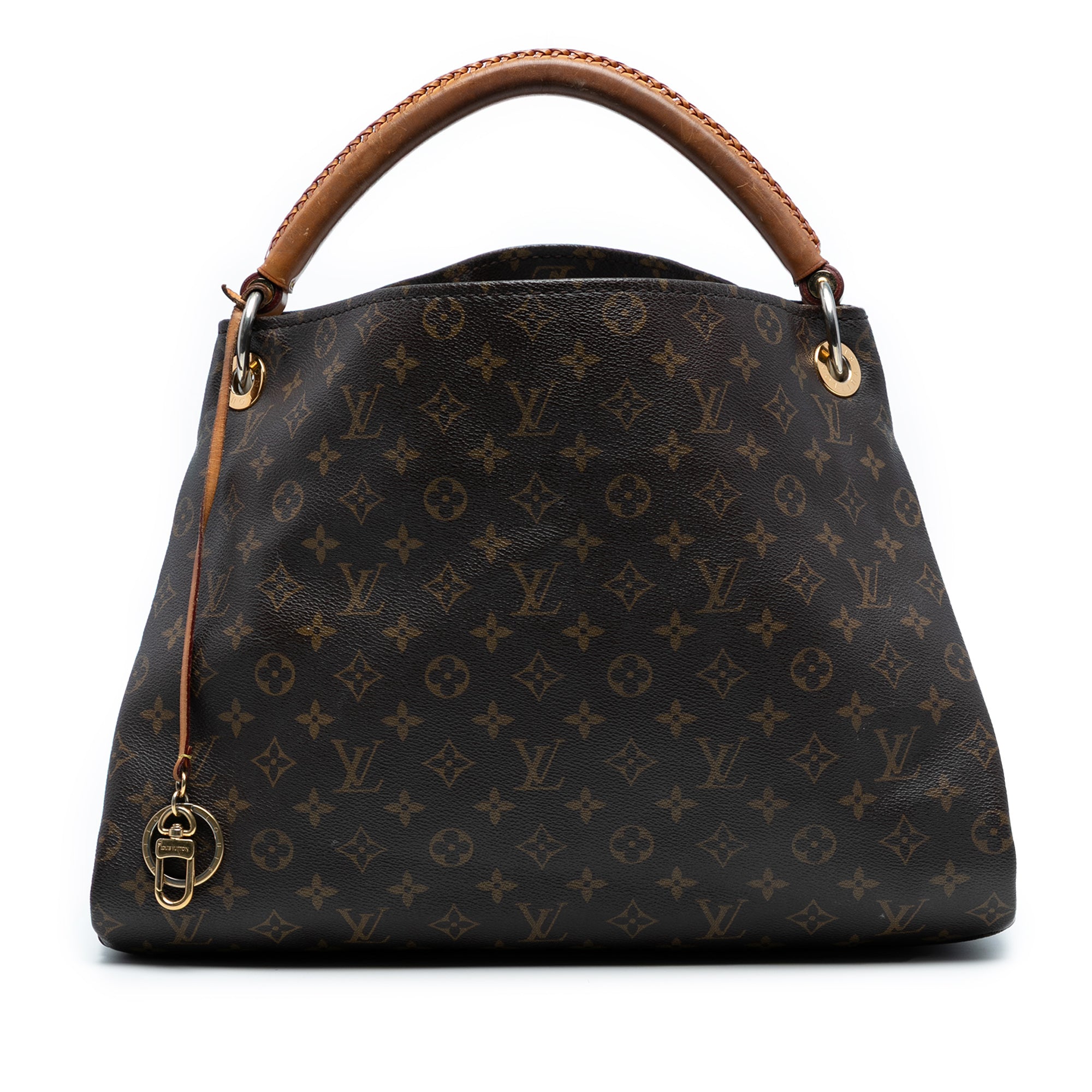 The Artsy MM features an monogram canvas body, a rolled vachetta leather strap, an open top, and interior zip and slip pockets. Retail Price: 2417.00