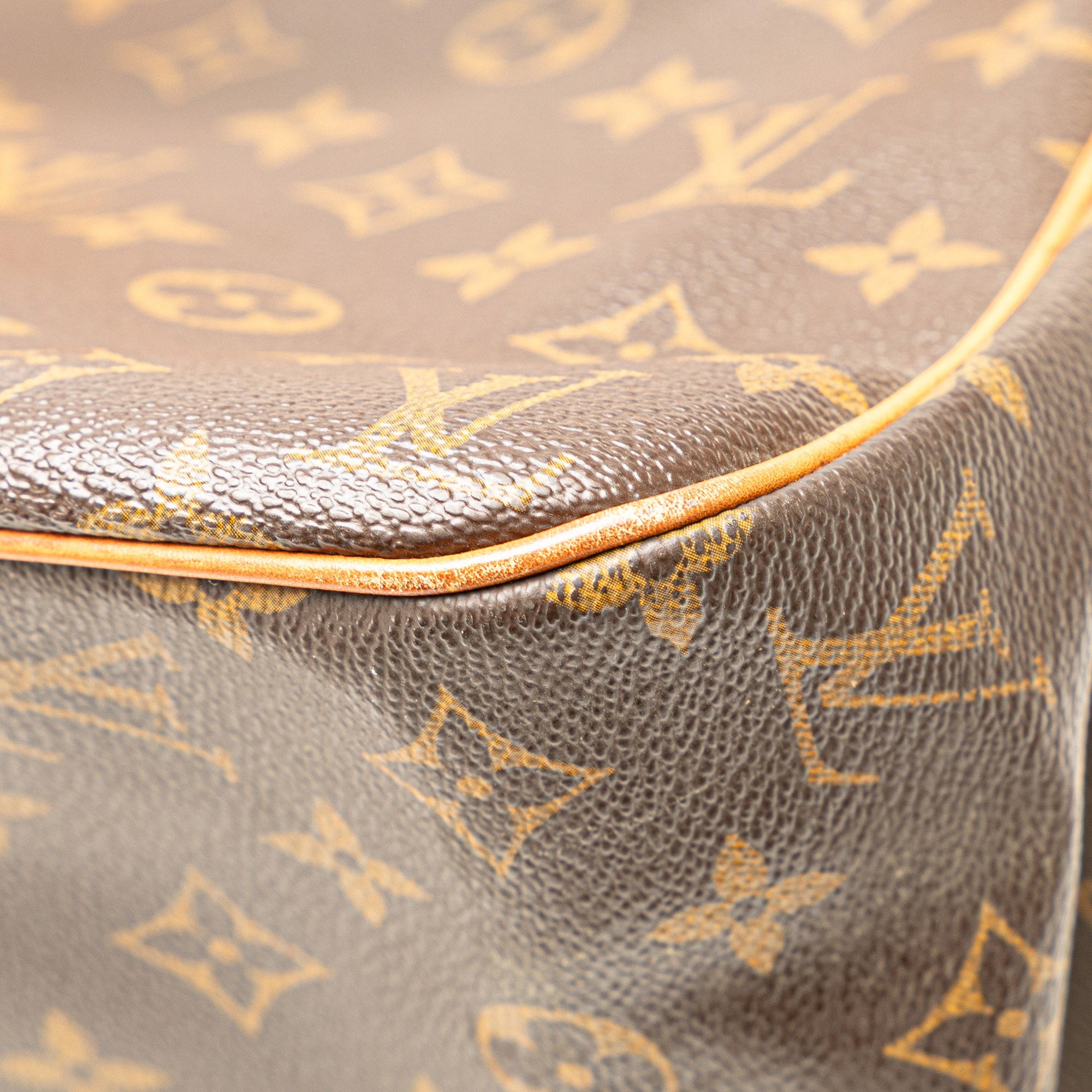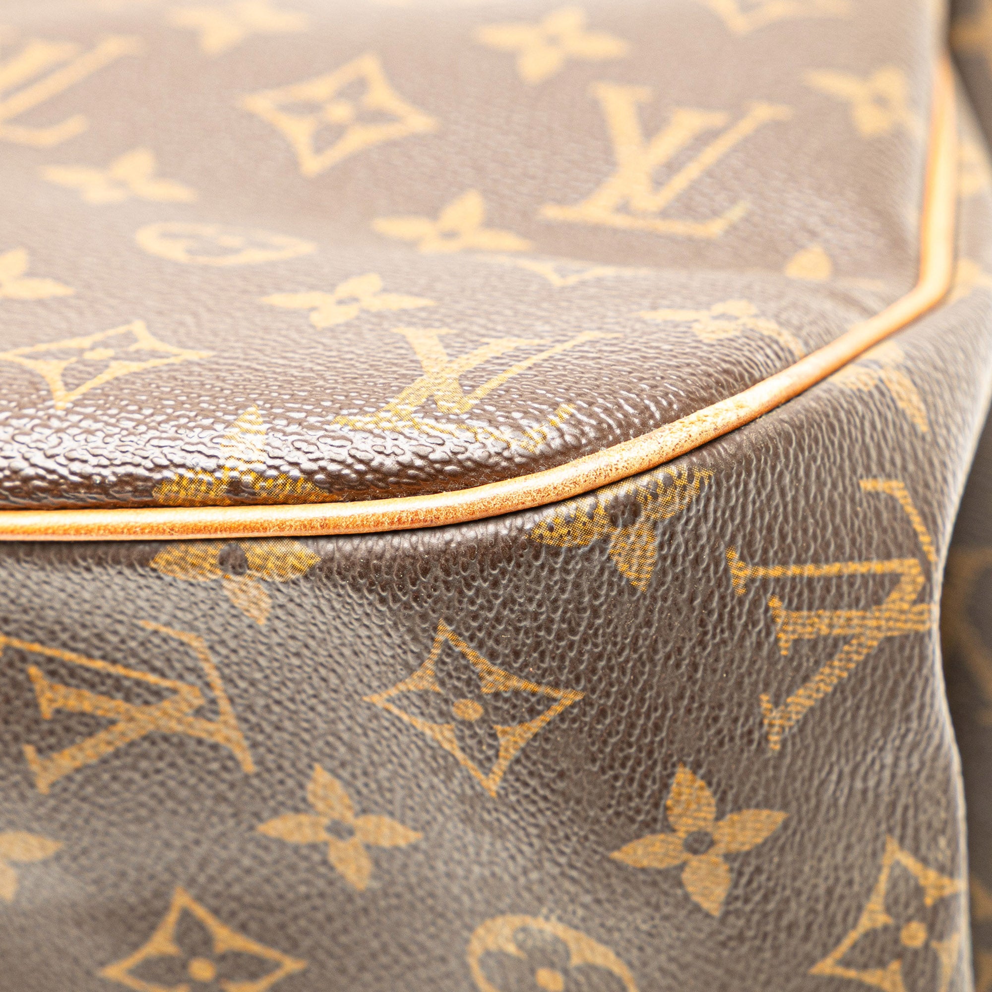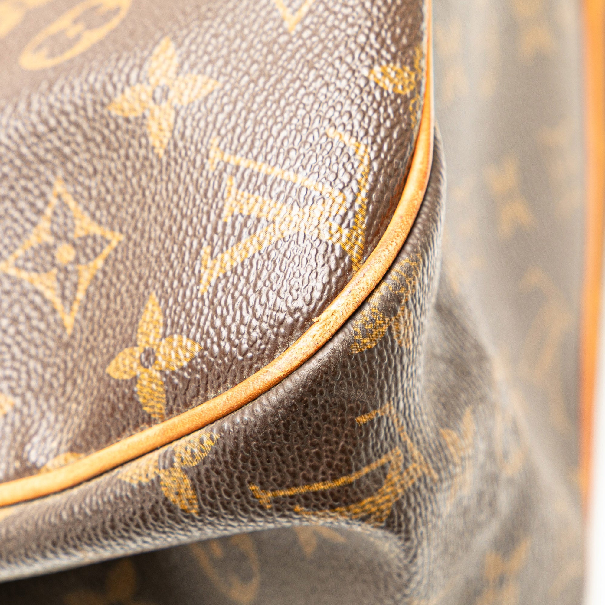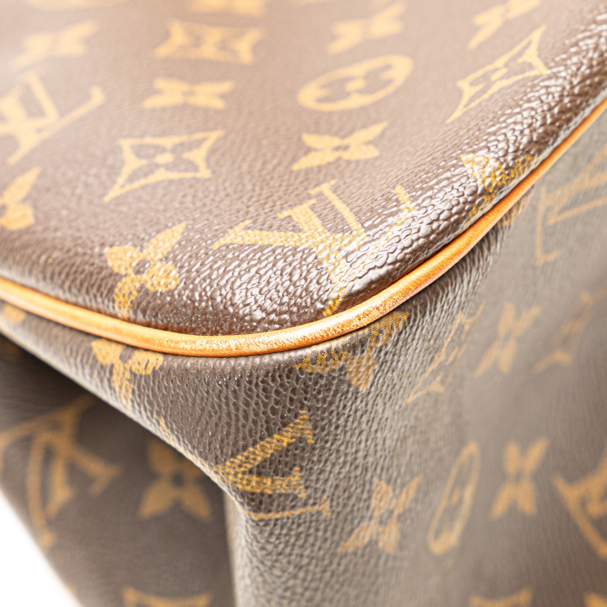 The Batignolles Horizontal features a monogram canvas body with vachetta leather trim, flat vachetta leather shoulder straps, an open top with a lobster claw clasp closure, and interior zip and slip pockets. Retail Price: 1159.00