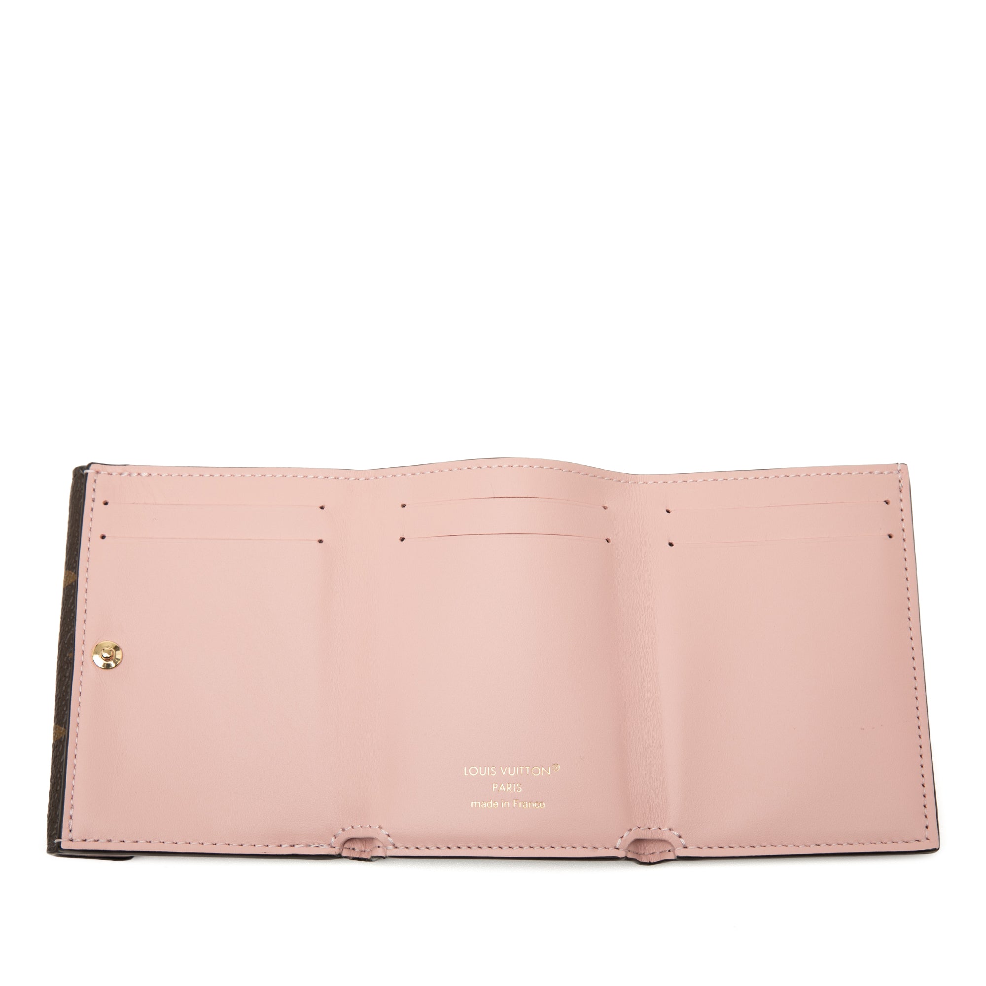 The Celeste Wallet features a monogram canvas body, a front flap with a snap button closure, an exterior back flap pocket, and interior slip pockets. Inclusion: Dust bag, box. Retail Price: 695.00