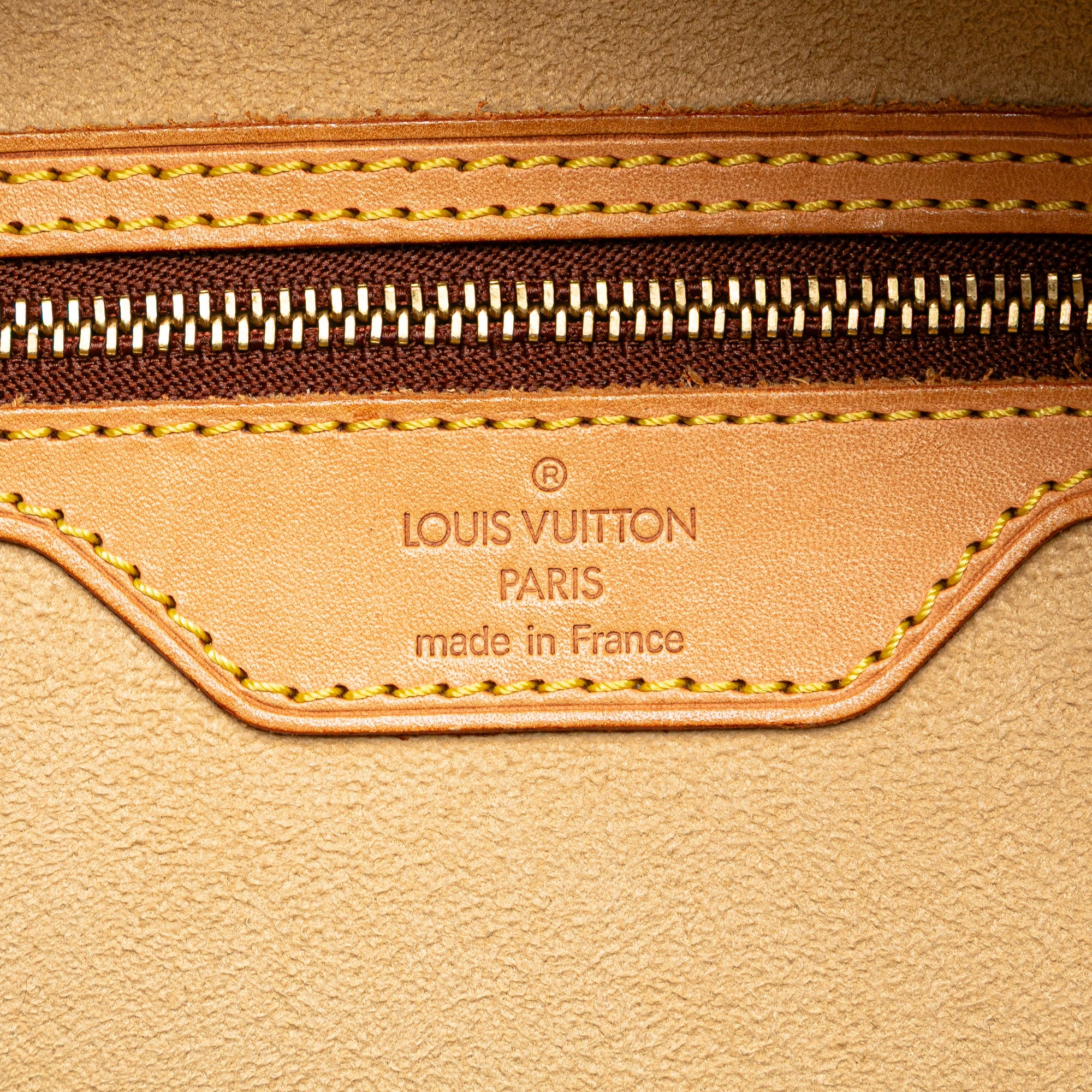 The Cite GM features a monogram canvas body with vachetta leather trim, flat vachetta leather shoulder straps, a top zip closure, an exterior front zip pocket, and interior zip and slip pockets. Retail Price: 1145.00