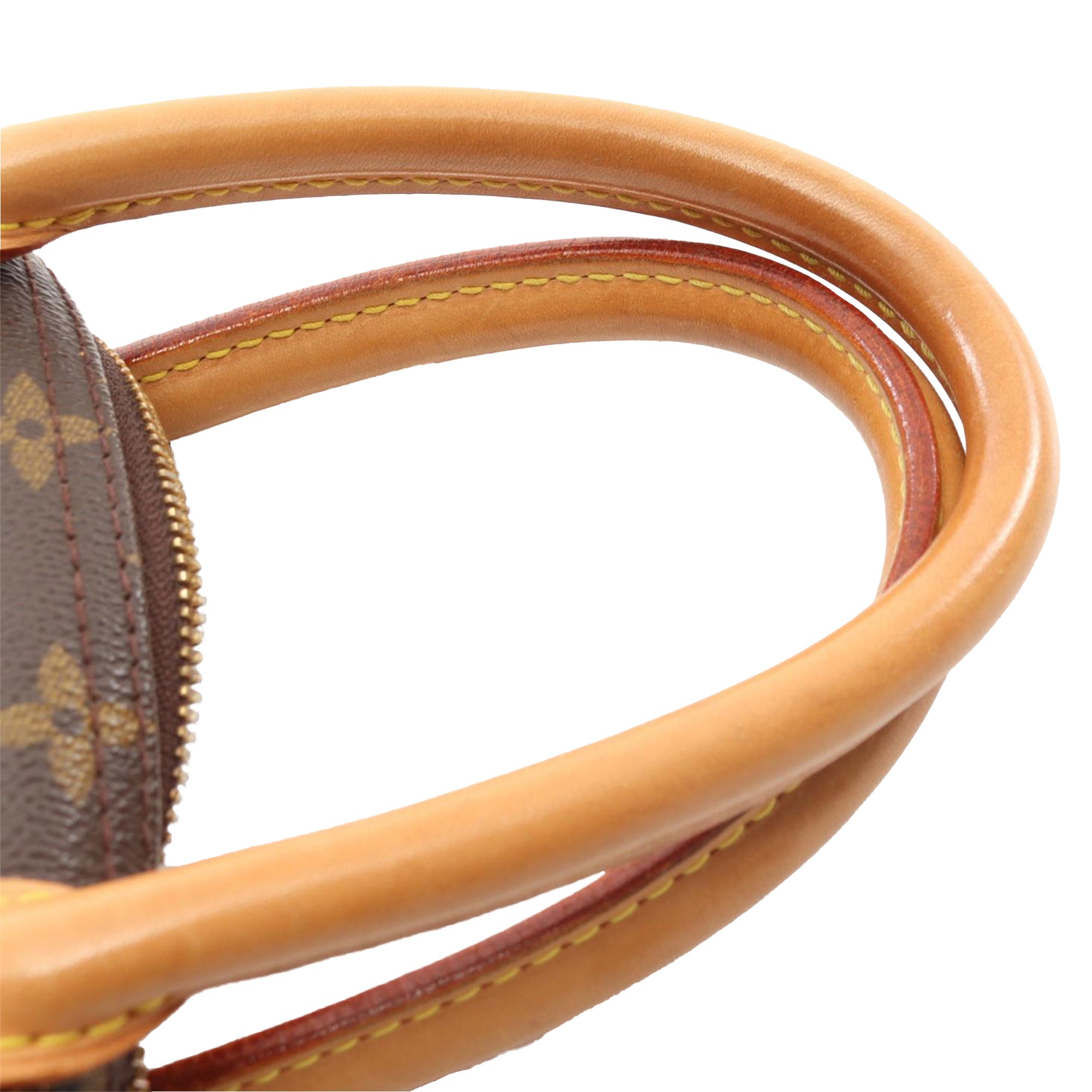 The Deauville features a monogram canvas body with vachetta leather trim, rolled vachetta leather handles, an exterior slip pocket, a top zip closure, and interior open pockets. Retail Price: 968.00