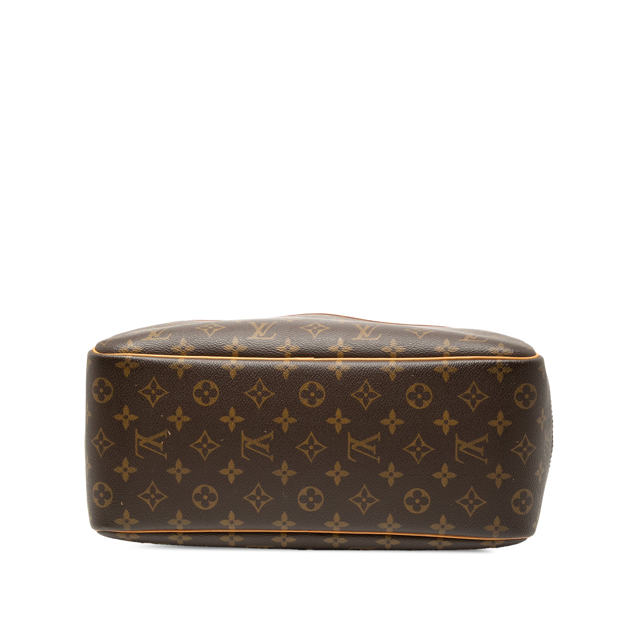 The Deauville features a monogram canvas body with vachetta leather trim, rolled vachetta leather handles, an exterior slip pocket, a top zip closure, and interior open pockets. Inclusion: Dust bag. Retail Price: 968.00