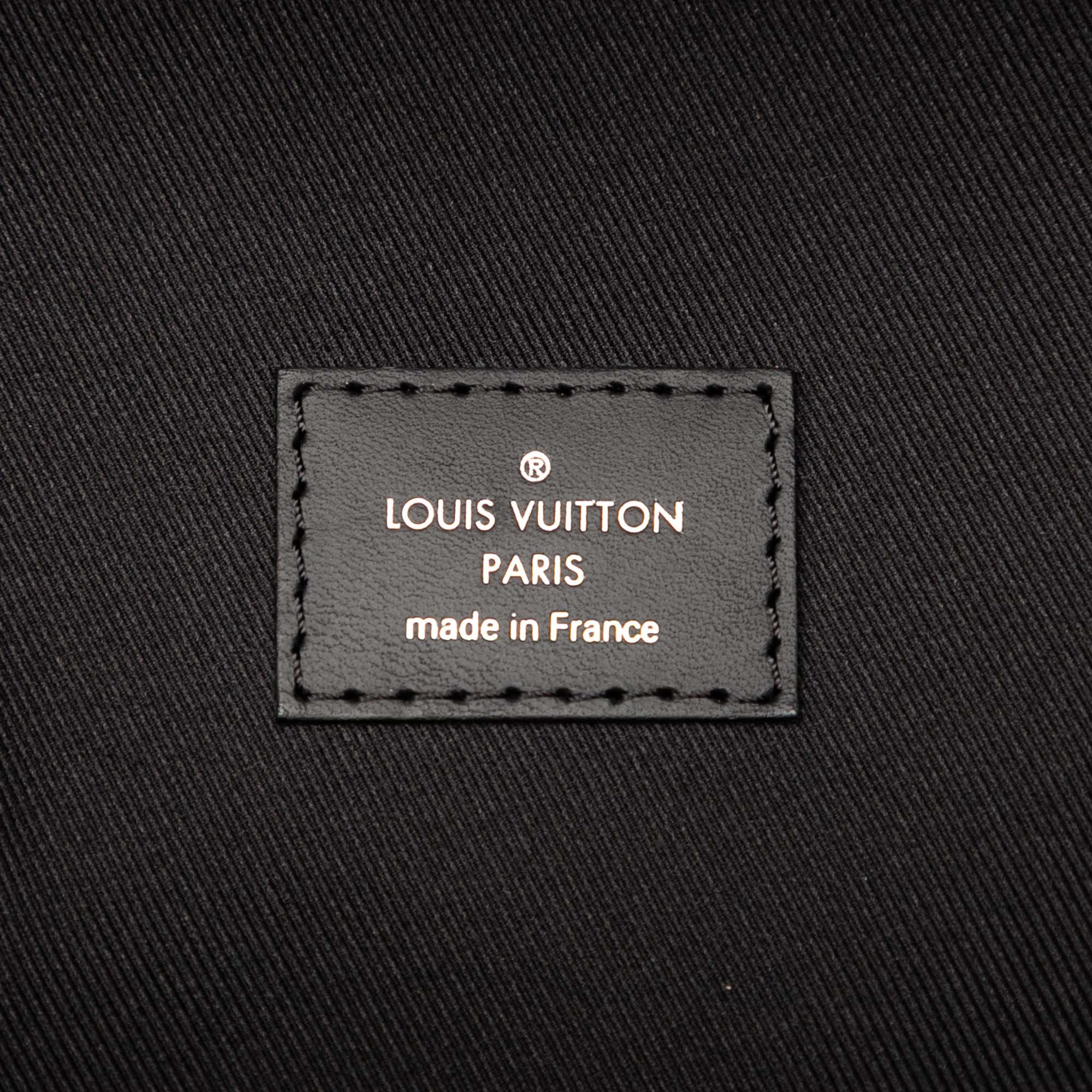 The Discovery backpack features a monogram eclipse canvas body, a top handle, adjustable leather back straps, a zip around closure, an exterior front zip and slip pockets, and interior slip pockets. Retail Price: 2500.00