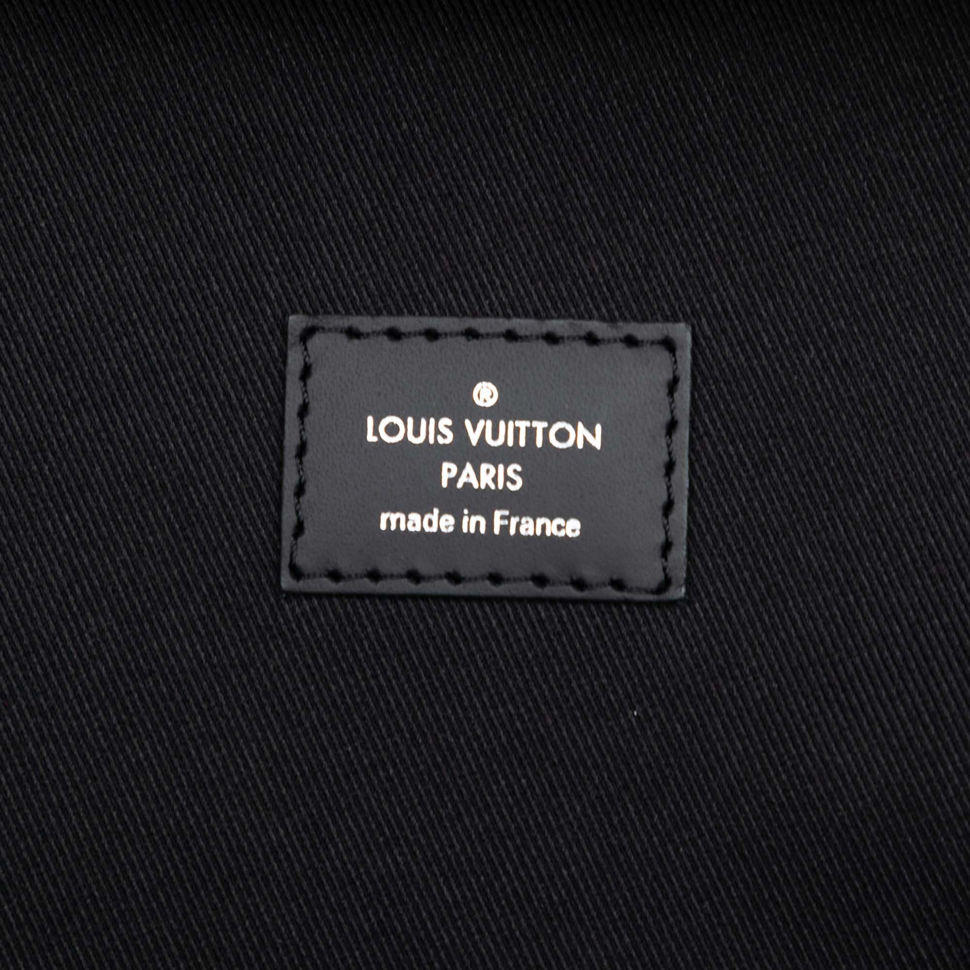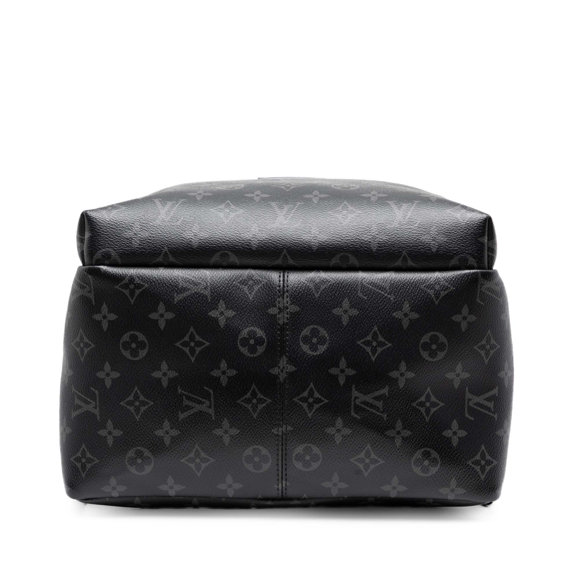 The Discovery backpack features a monogram eclipse canvas body, a top handle, adjustable leather back straps, a zip around closure, front exterior zip and slip pockets, and interior slip pockets. Retail Price: 2500.00