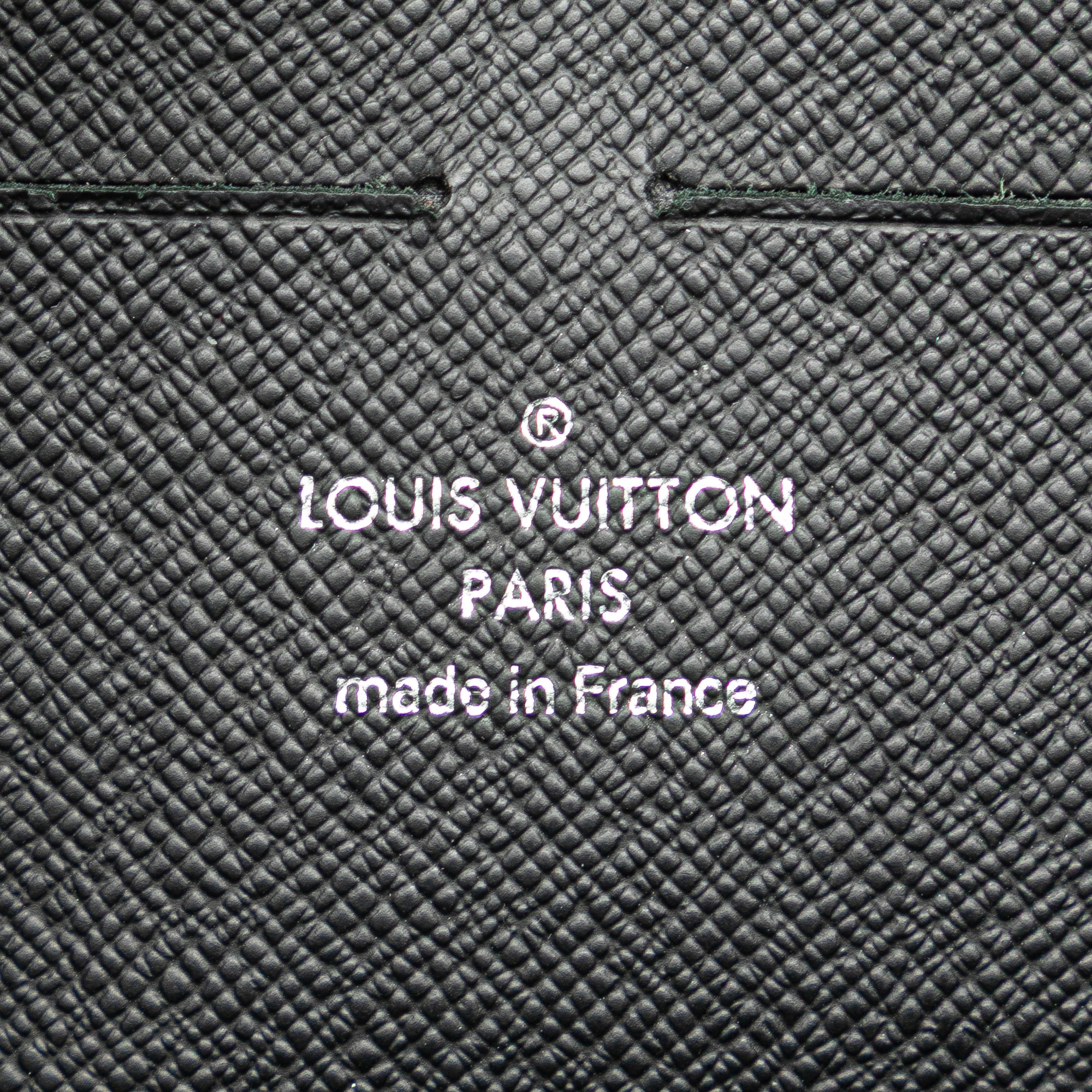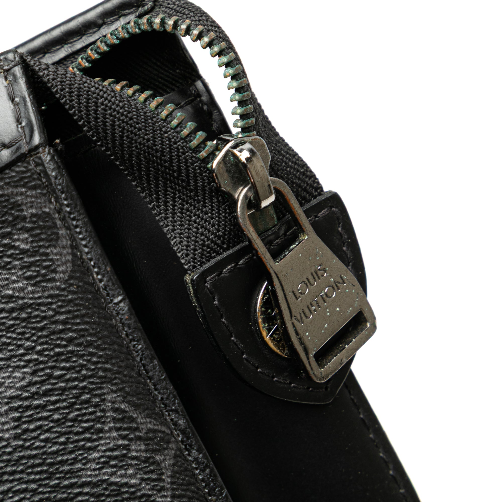 This clutch bag features a monogram eclipse canvas body with leather trim, a top zip closure, and interior card slots. Retail Price: 1150.00