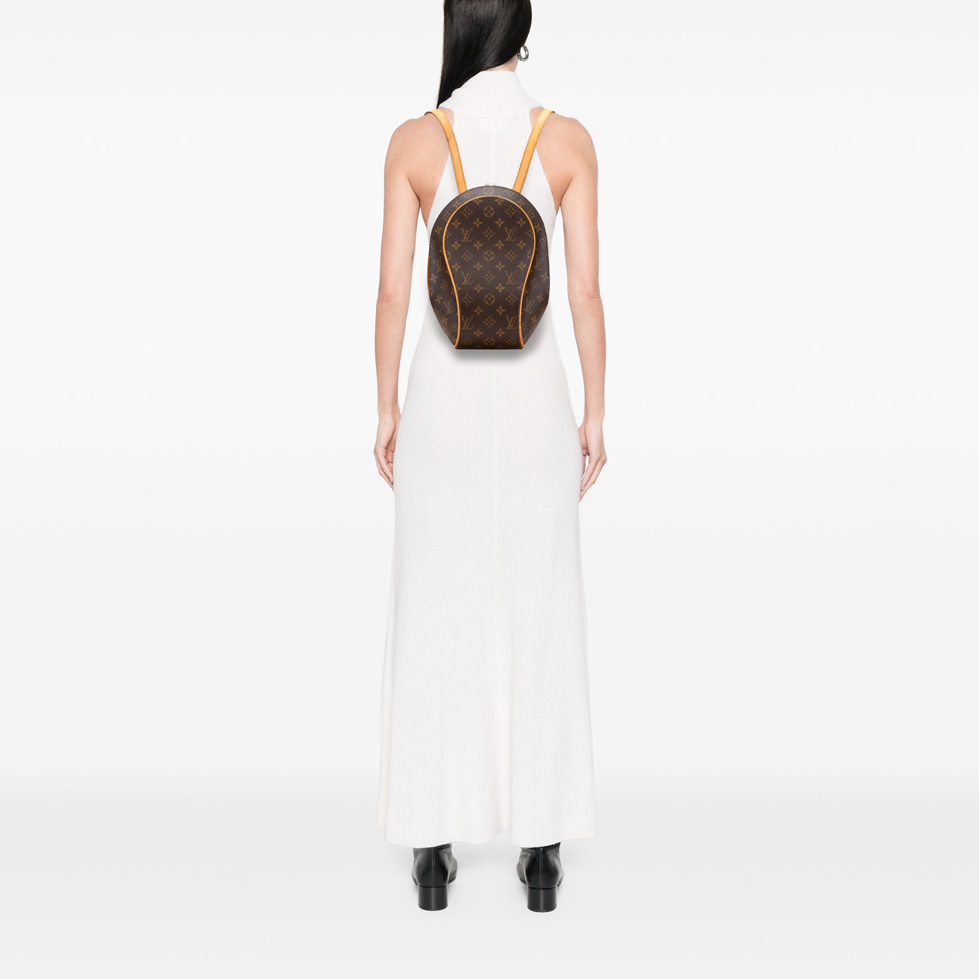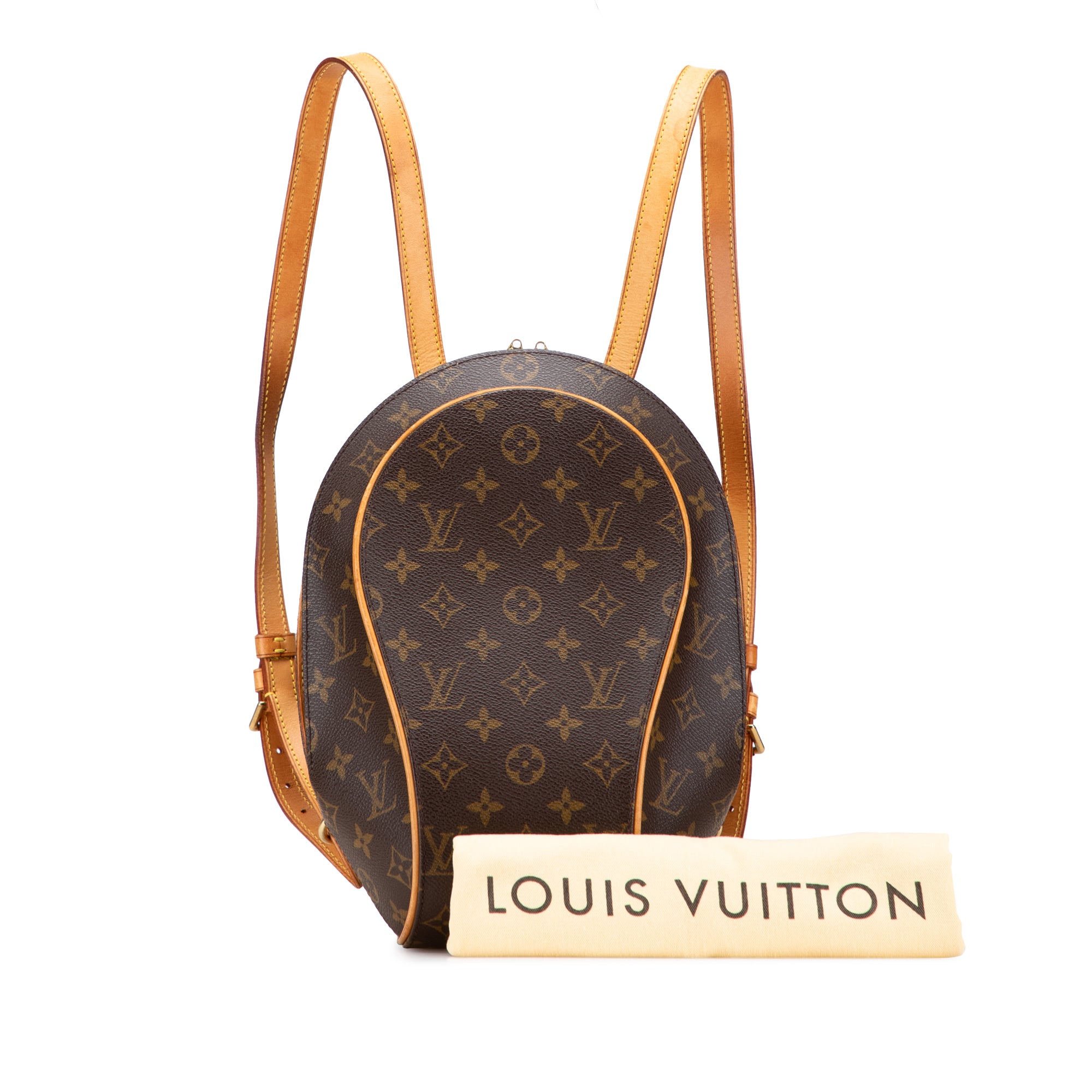 The Ellipse backpack features a monogram canvas body with vachetta leather trim, adjustable flat vachetta leather back straps, a top zip closure, and an interior slip pocket. Inclusion: Dust bag. Retail Price: 1225.00