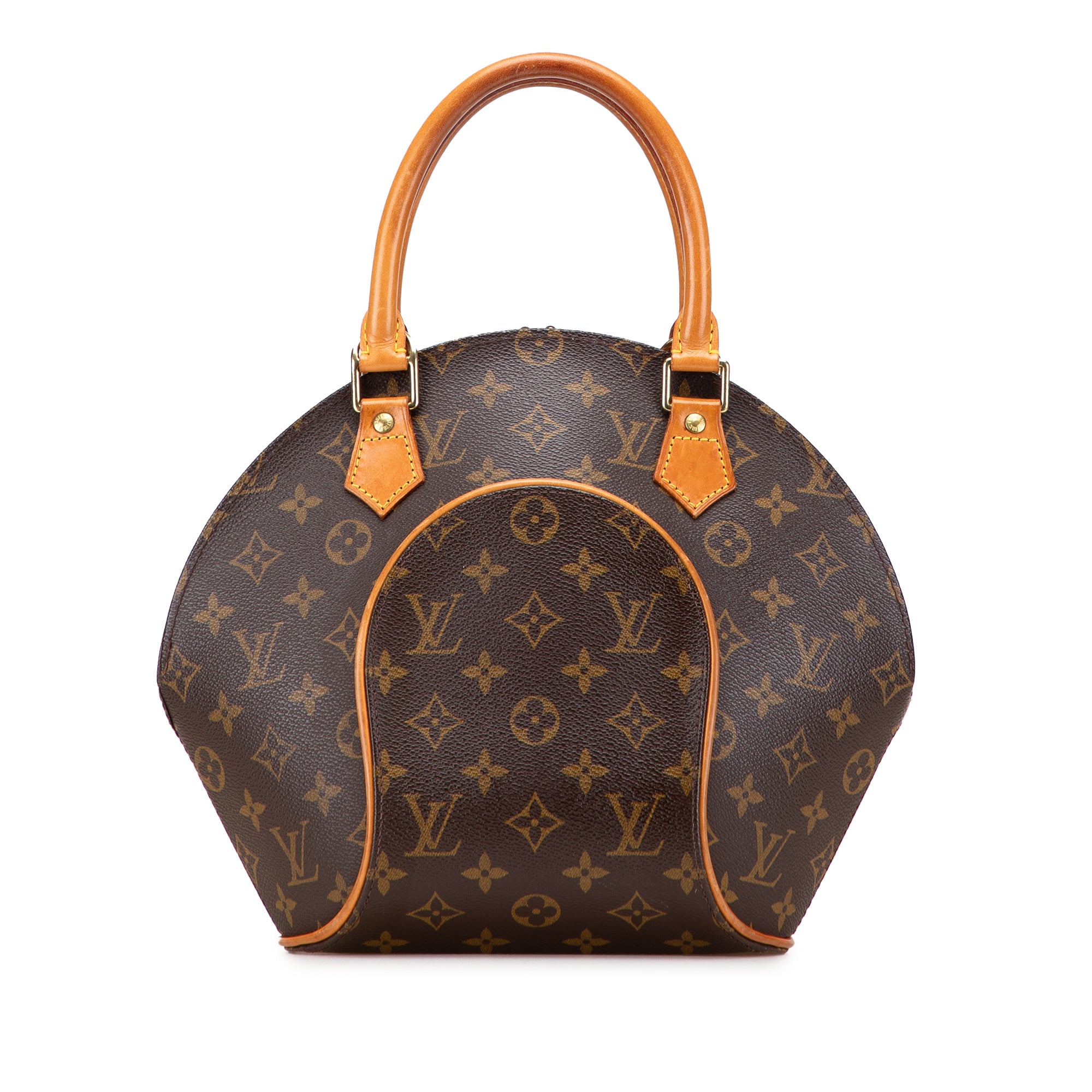 The Ellipse features a monogram canvas body with vachetta leather trim, rolled vachetta leather handles, a top zip closure and an interior slip pocket. Retail Price: 1120.00