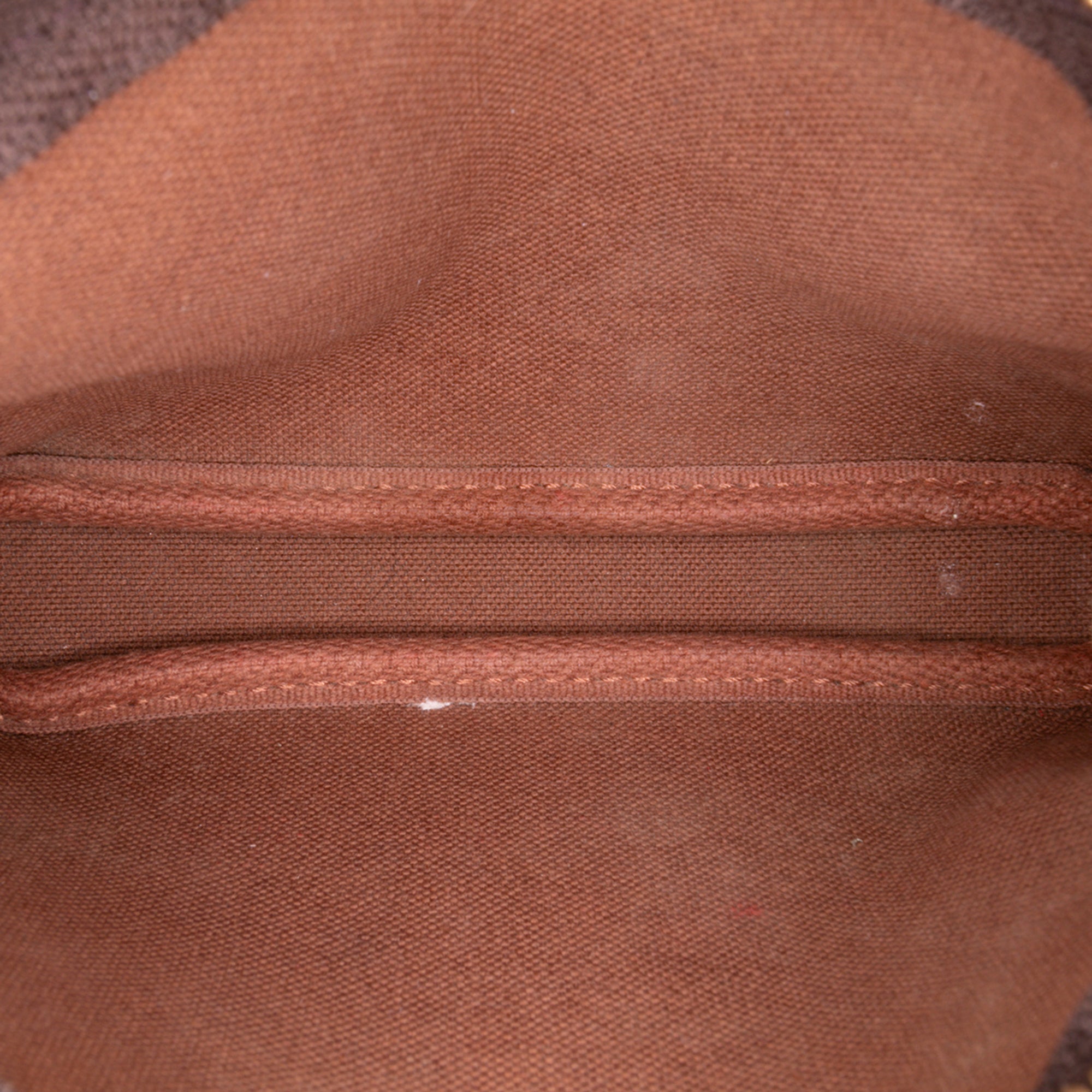 The Mini Pochette Accessoires features a printed monogram canvas body, a chain link handle, and a top zip closure. Retail Price: 630.00
