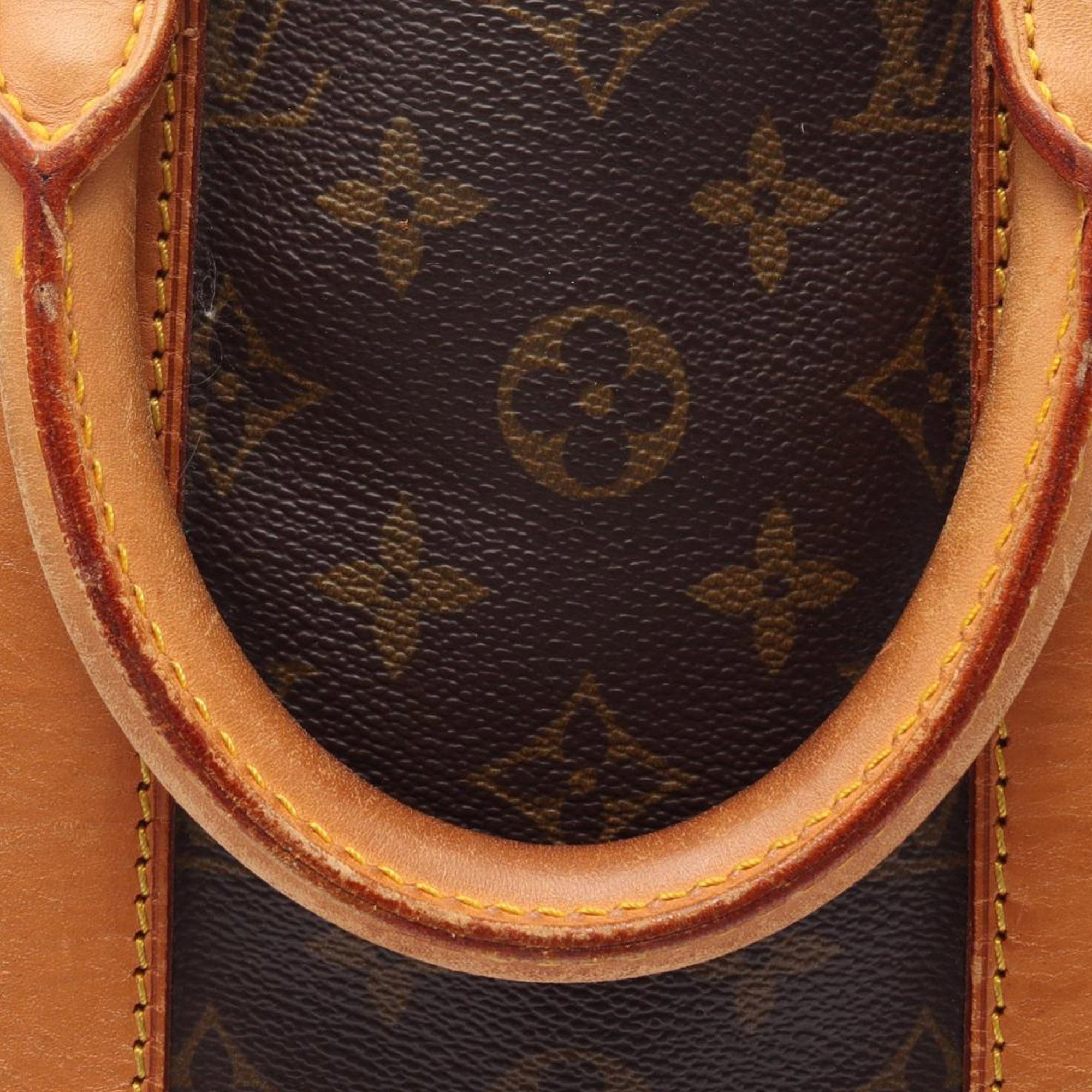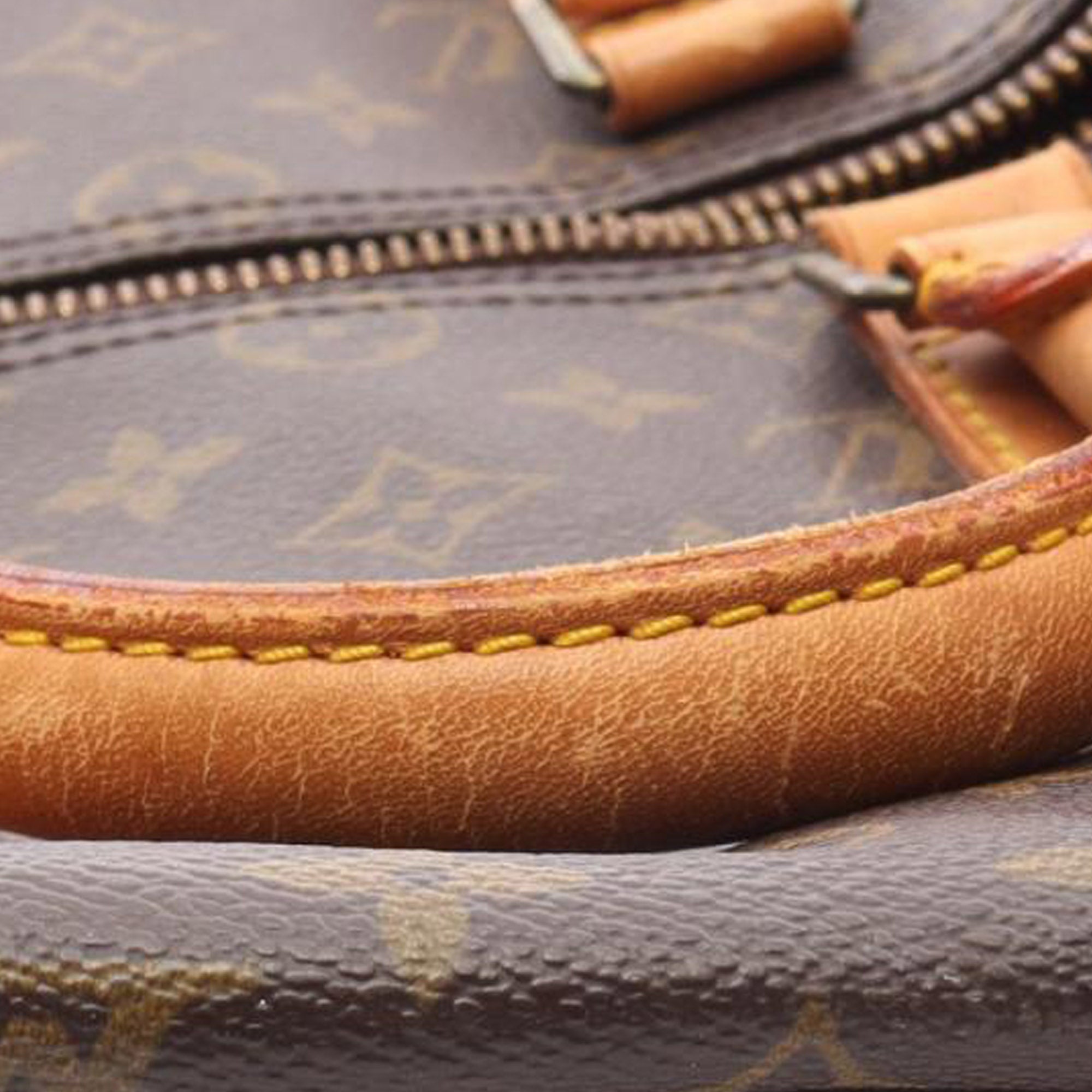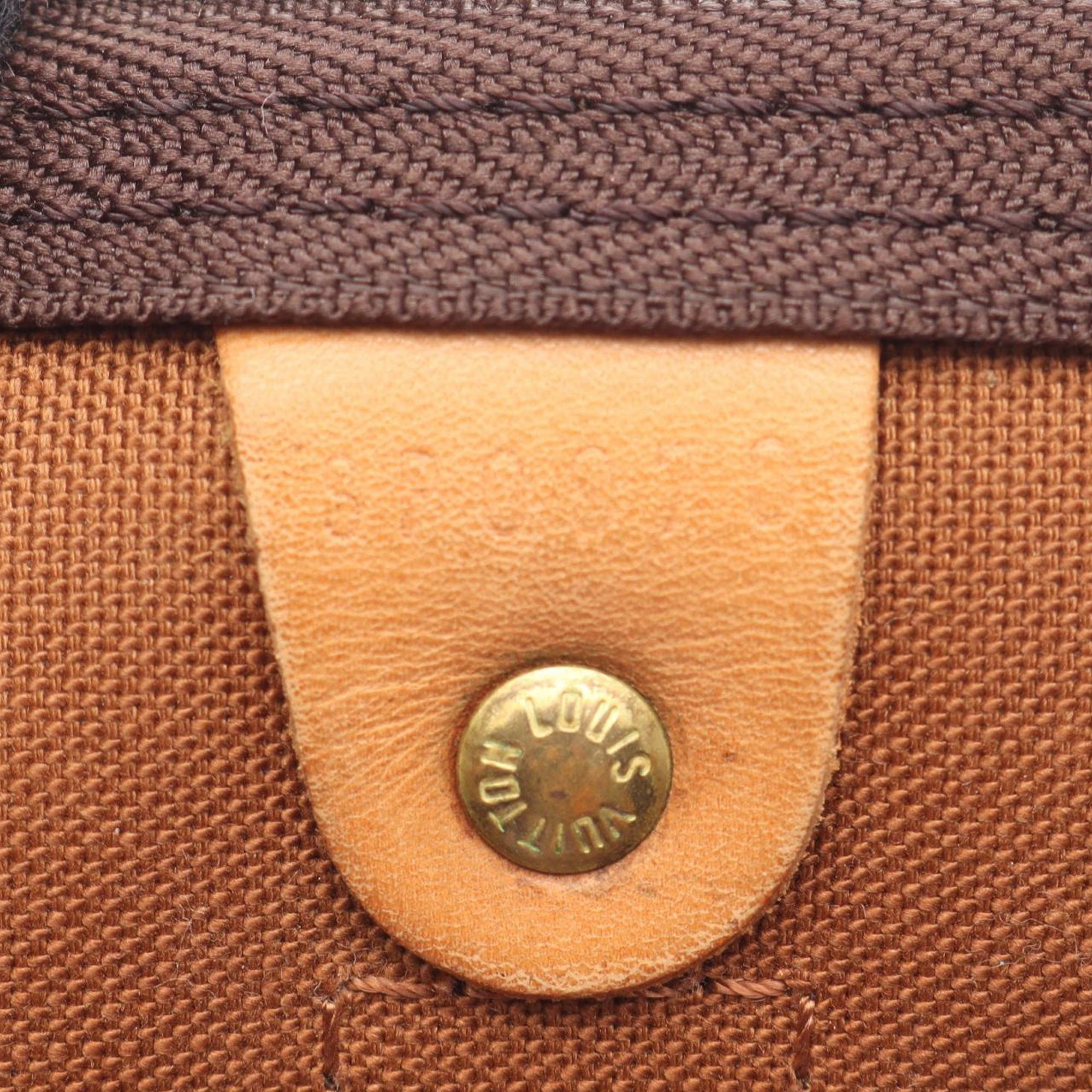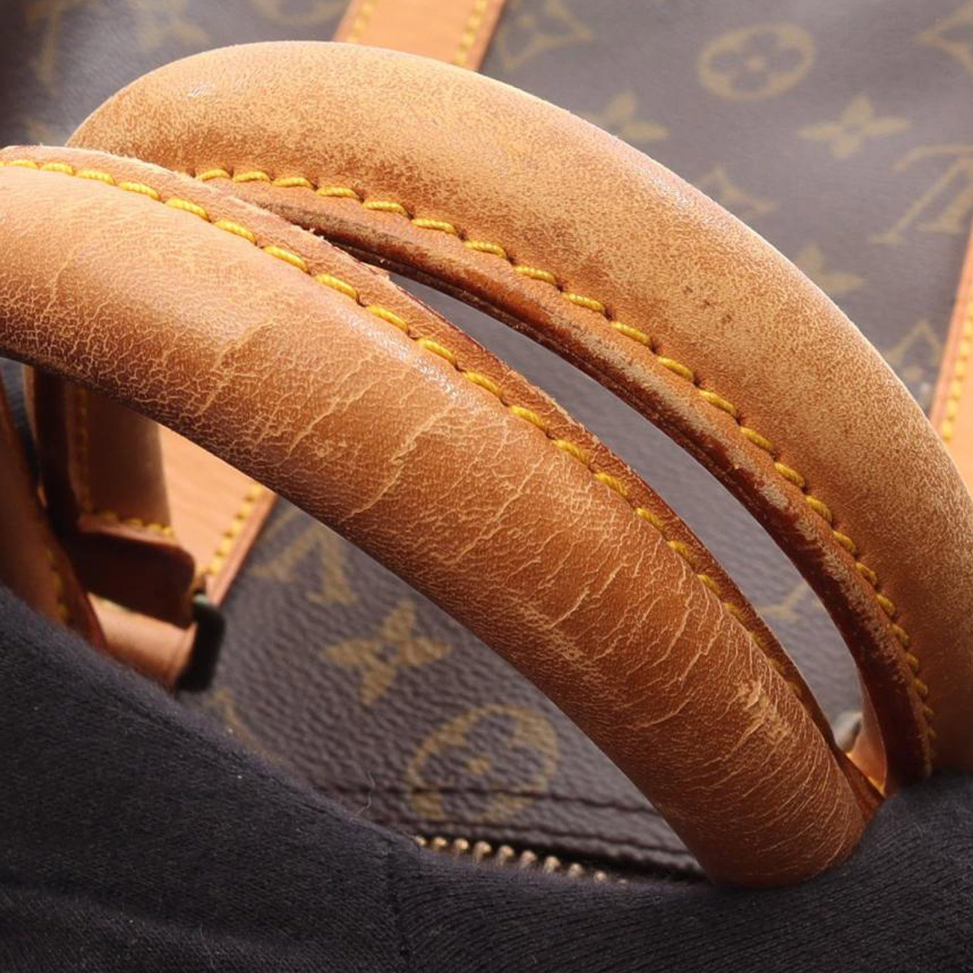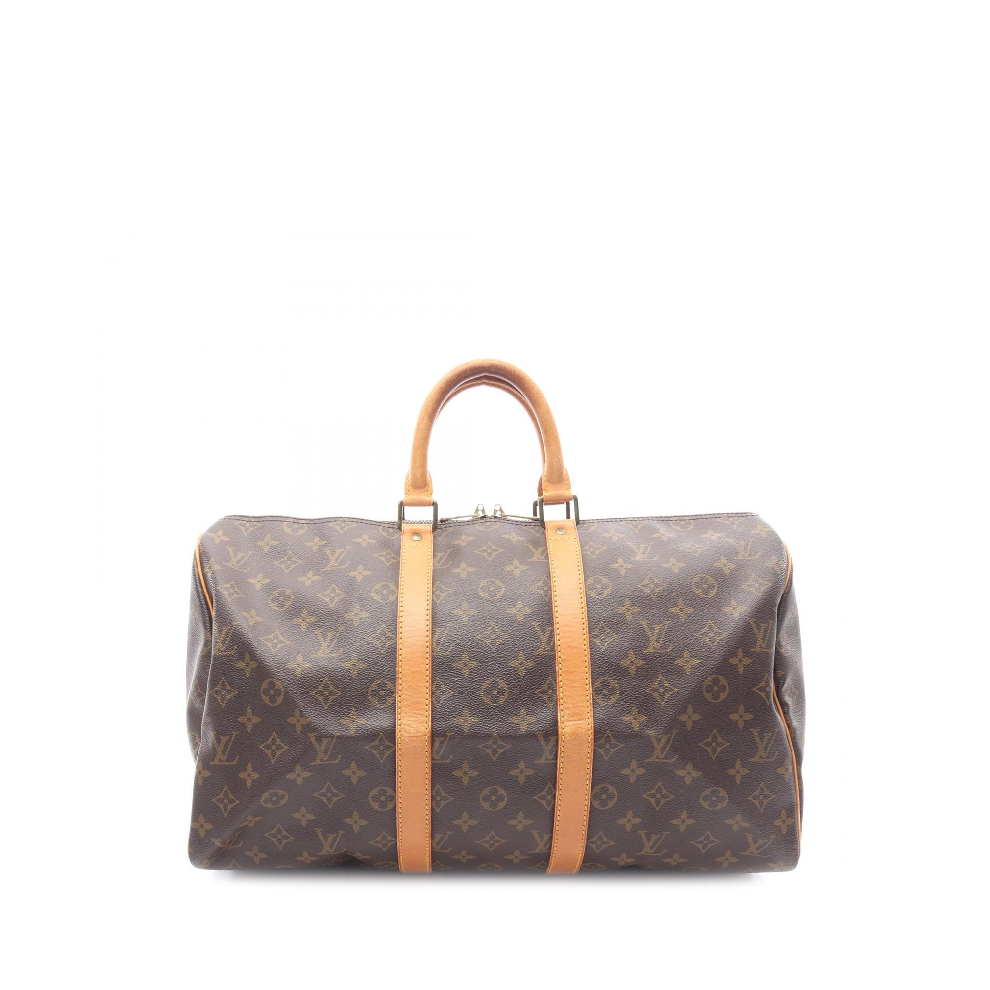 The Keepall 45 features a monogram canvas body with vachetta leather trim, rolled vachetta leather handles, and a top zip closure. Retail Price: 2020.00