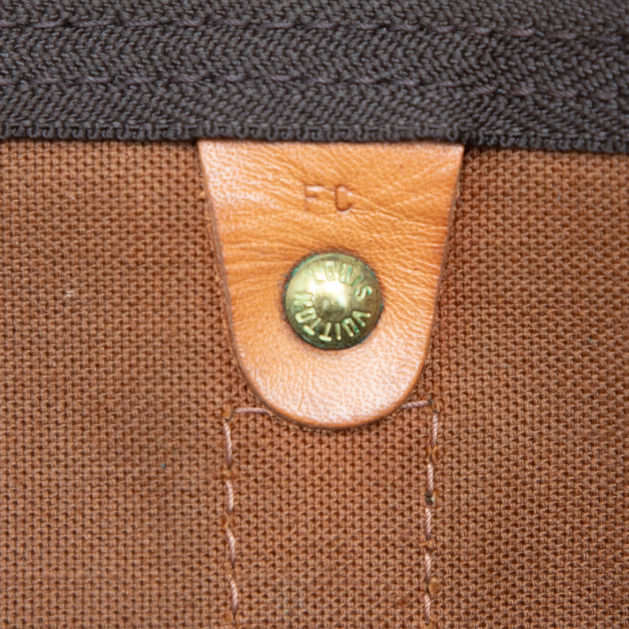 The Keepall 60 features a monogram canvas body with vachetta leather trim, rolled vachetta leather handles, and a top zip closure. Retail Price: 1968.00