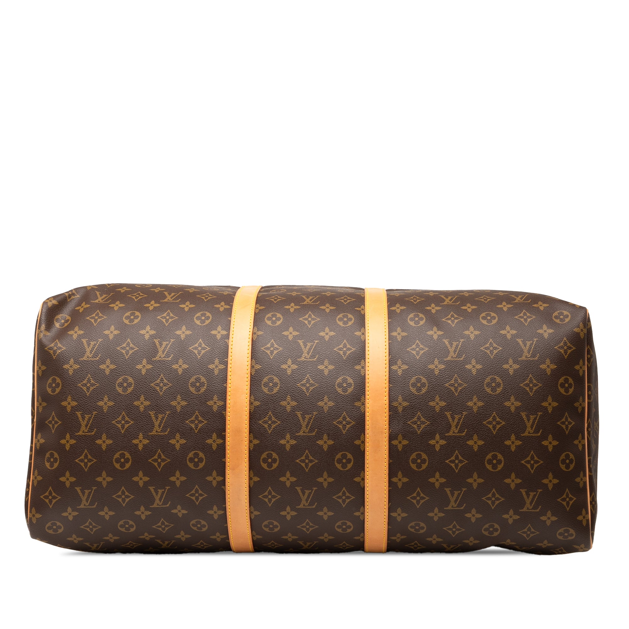 The Keepall 60 features a monogram canvas body with vachetta leather trim, rolled vachetta leather handles, and a top zip closure. Retail Price: 1968.00