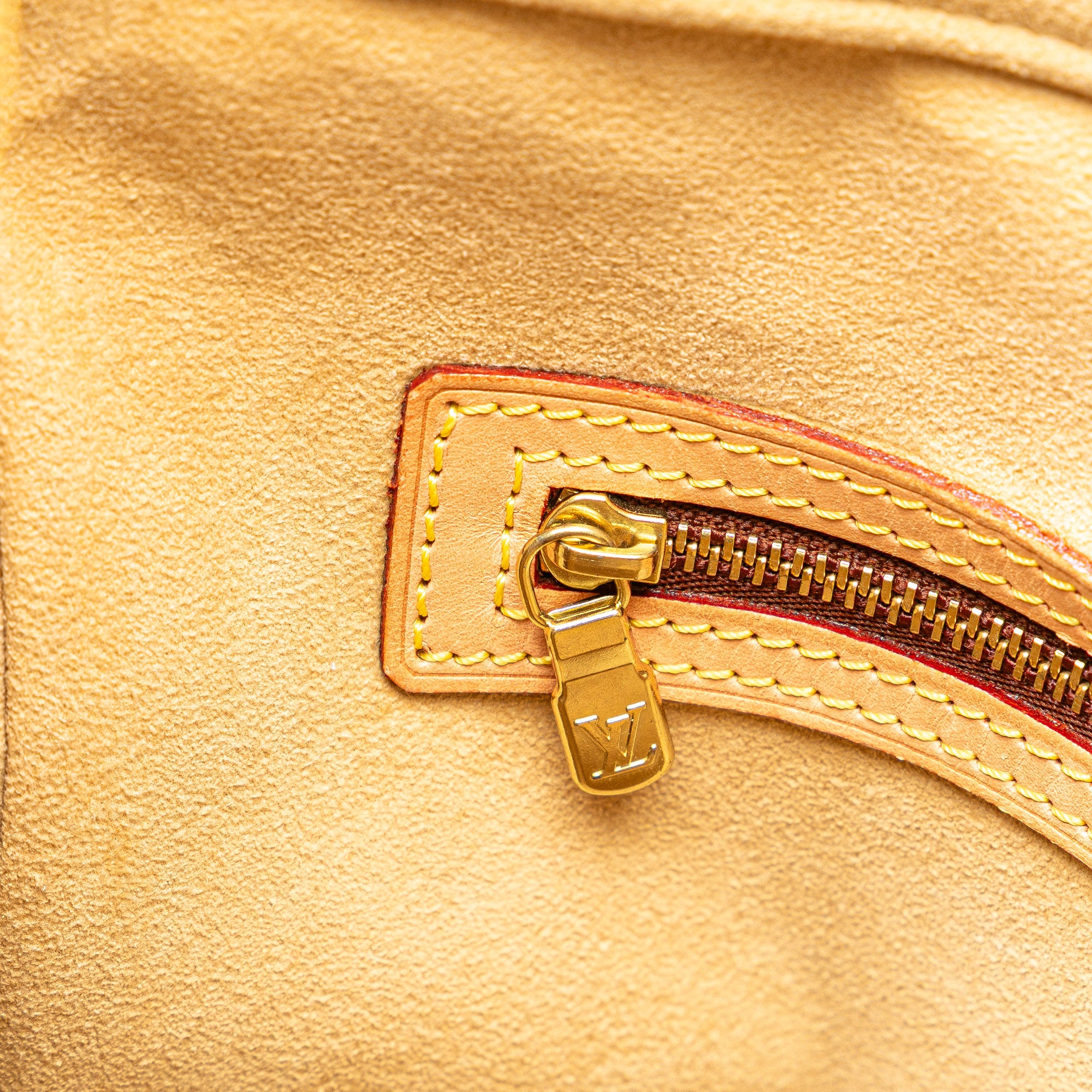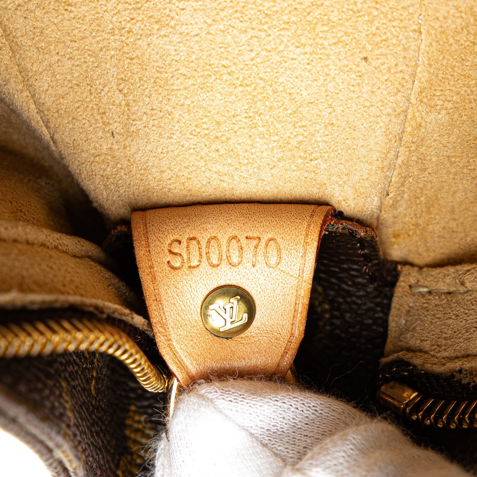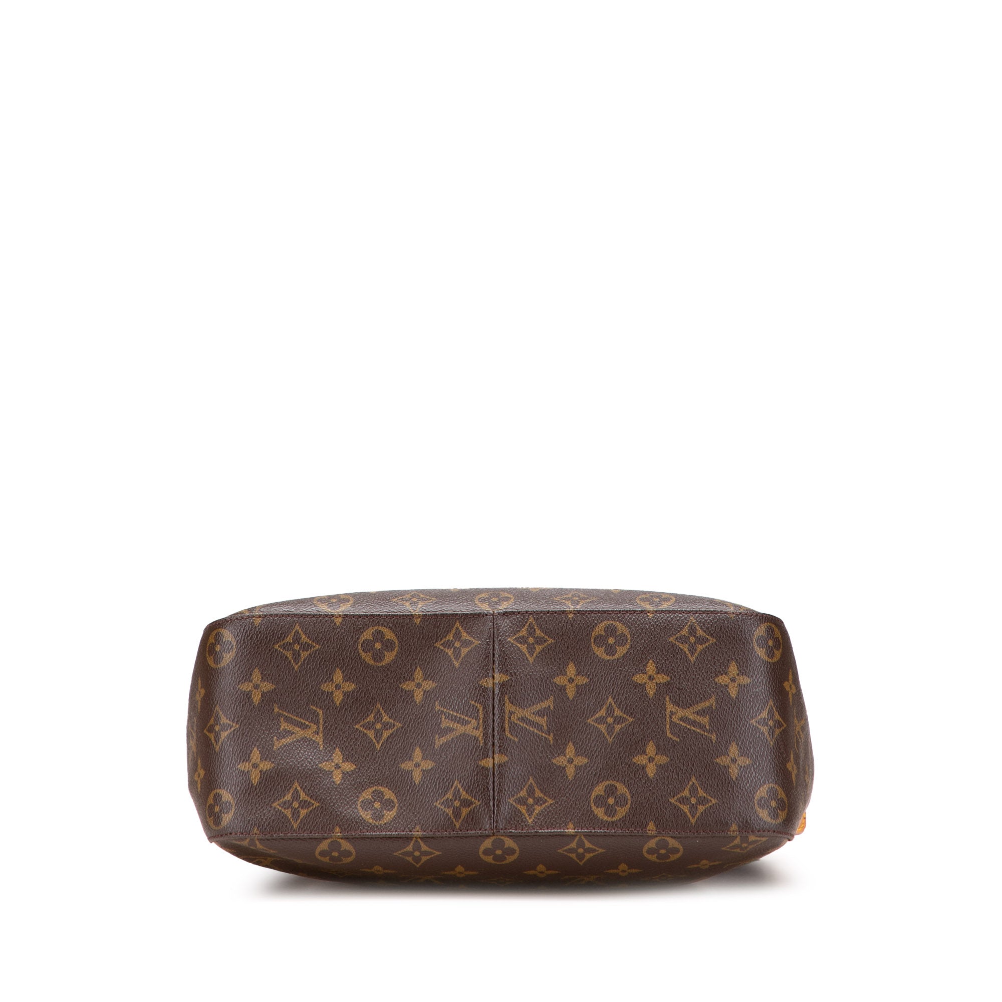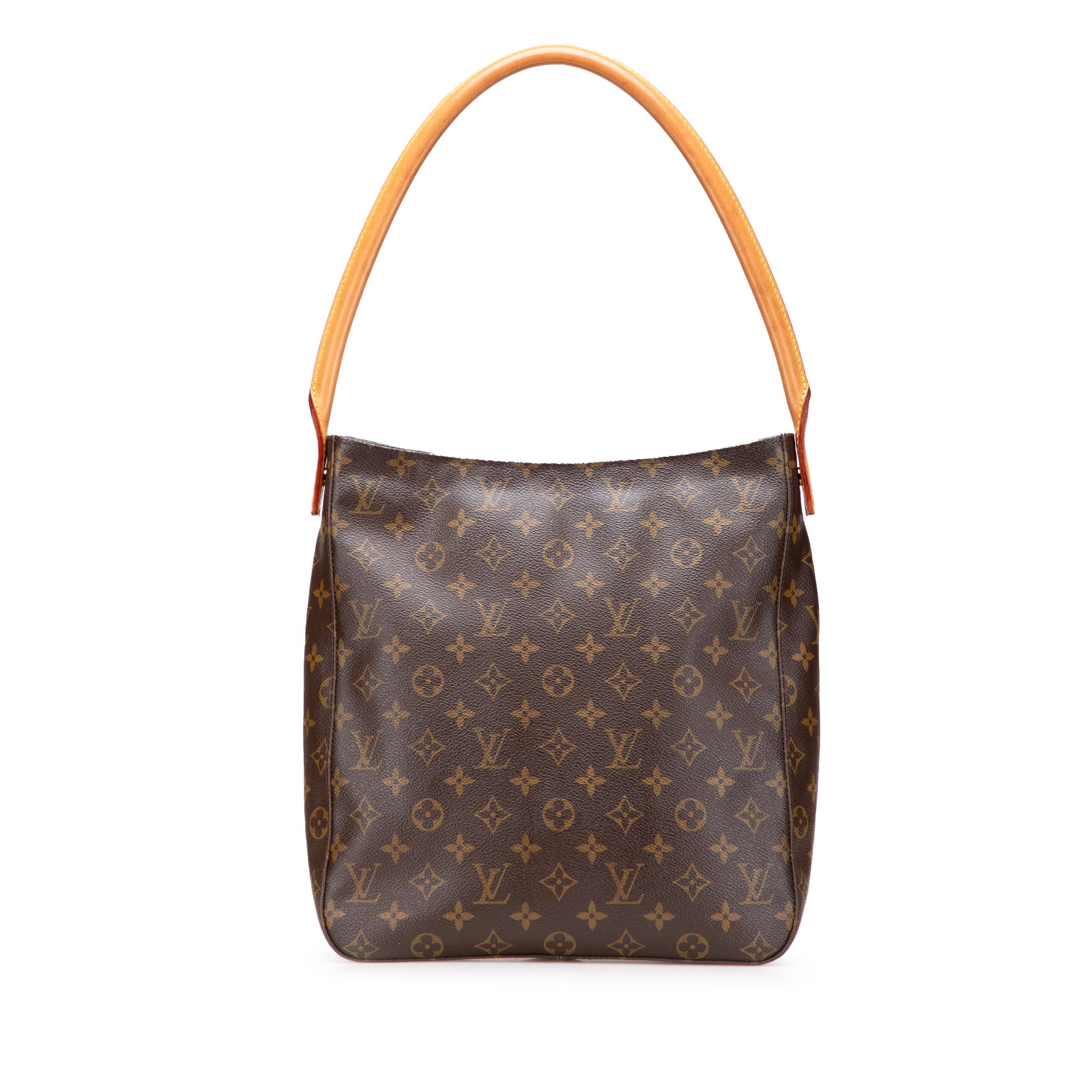 The Looping GM features a monogram canvas body, a rolled vachetta leather shoulder strap, a top zip closure, and interior zip and slip pockets. Retail Price: 1273.00
